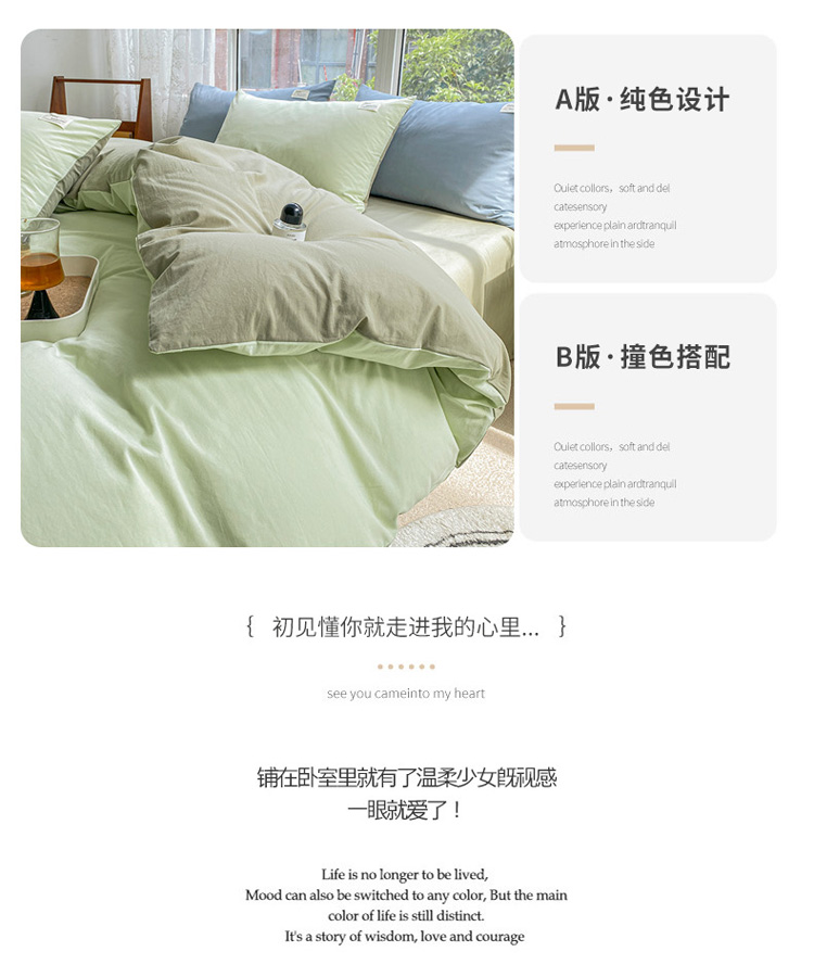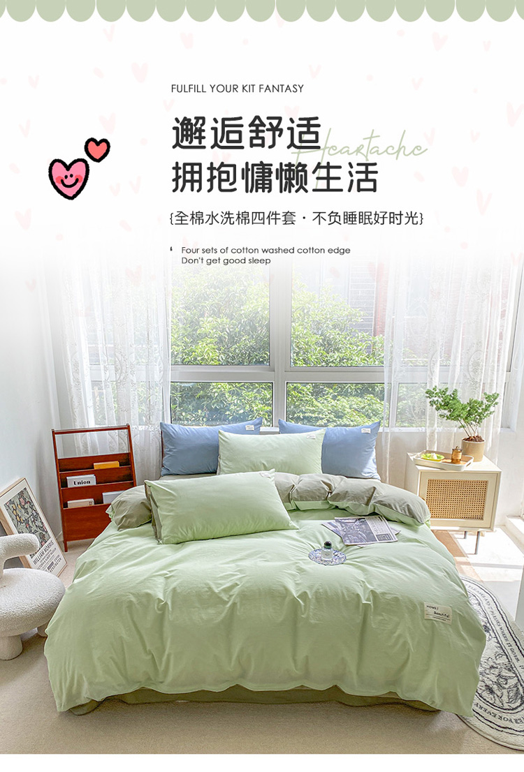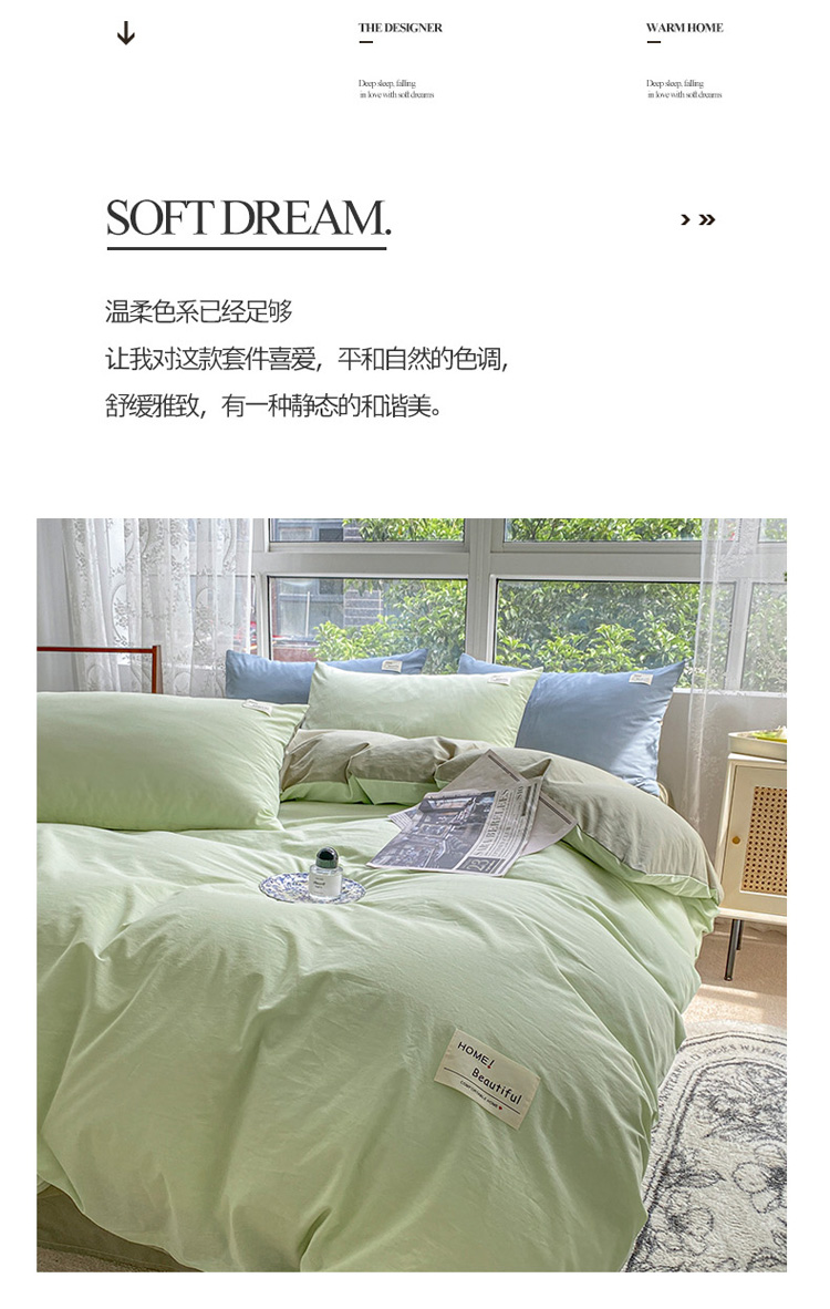 当前位置: 91家纺网 > 商品网购 > 床品套件 > 四件套 > 全棉普通四件套 > 寐居 2023新款全棉水洗棉四件套 绿+牛油果绿