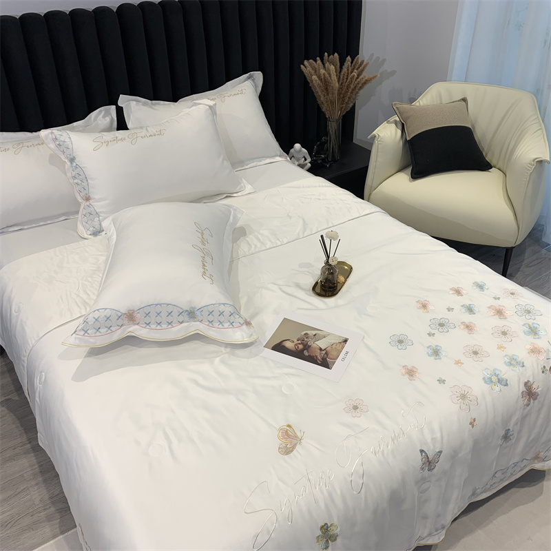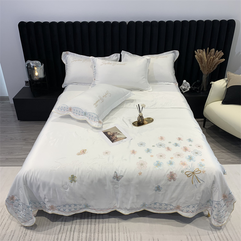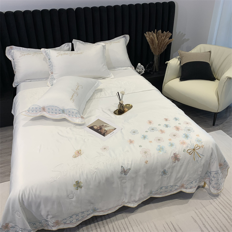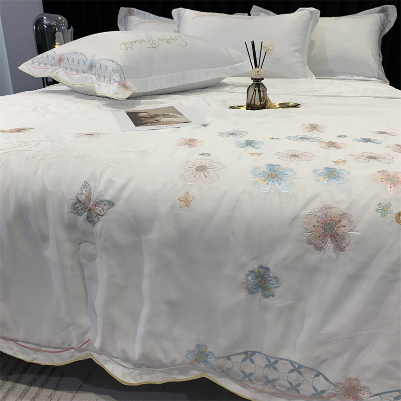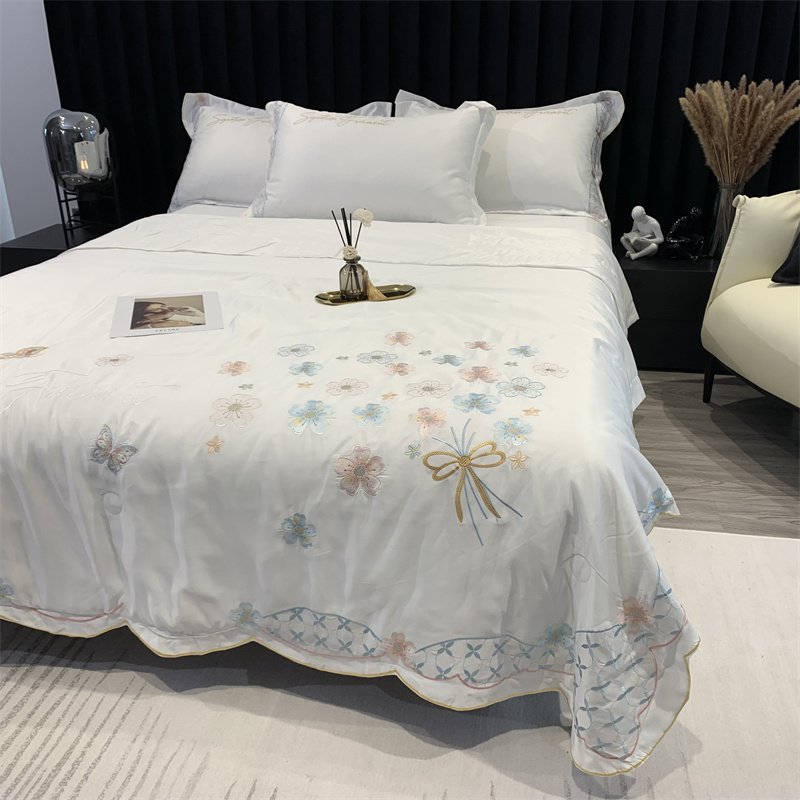 商品名称:红嘴企鹅 2025新款夏季水洗真丝大豆纤维被四件套 花海白色
