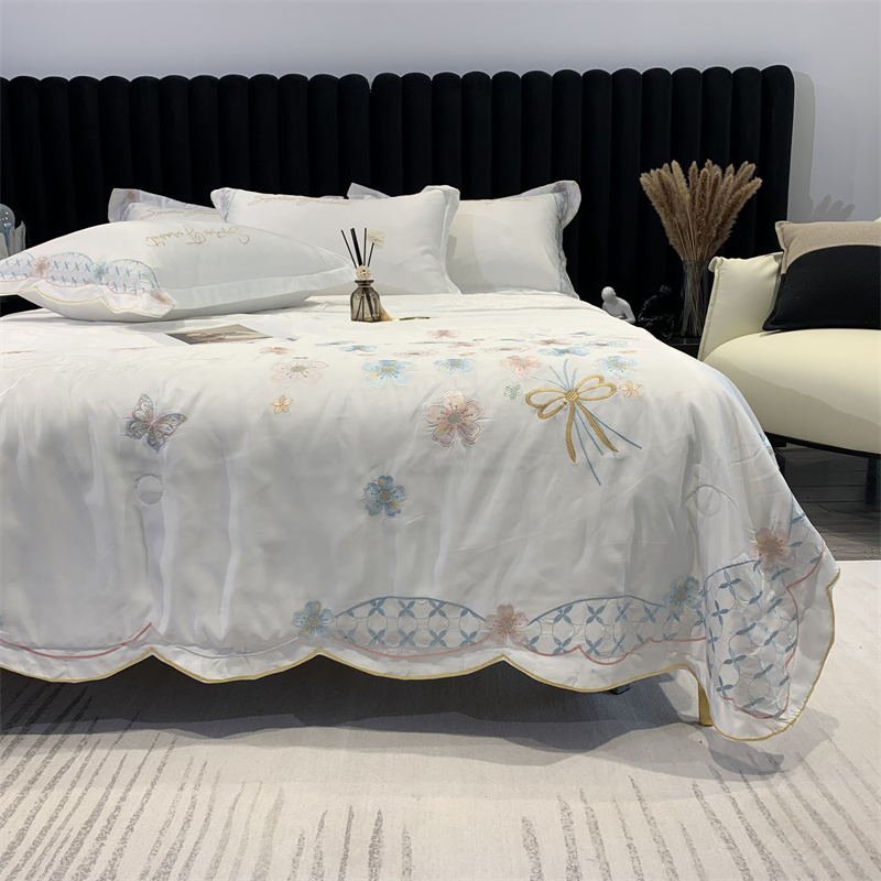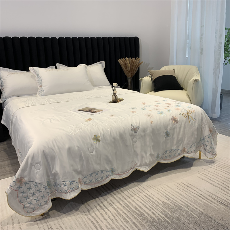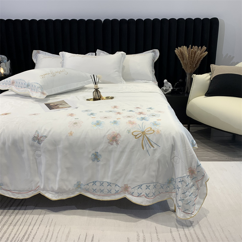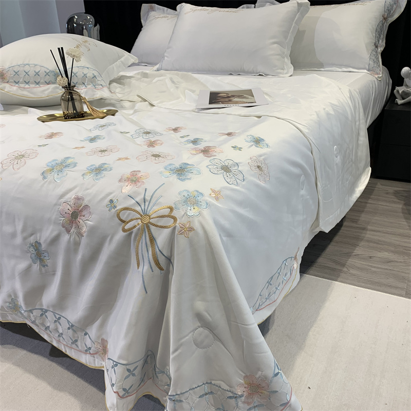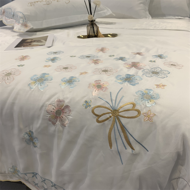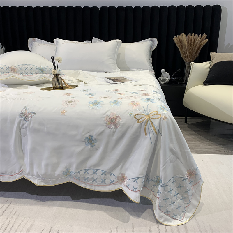 商品名称:红嘴企鹅 2025新款夏季水洗真丝大豆纤维被四件套 花海白色