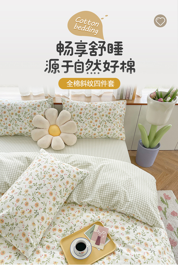 当前位置: 91家纺网 > 商品网购 > 床品套件 > 四件套 > 全棉普通四件套 > 麦伦 2022新款全棉40支13372纯棉斜纹田园碎花四件套 清芬