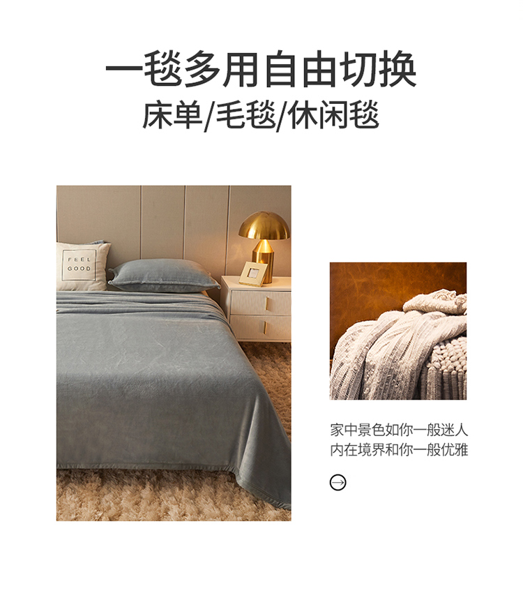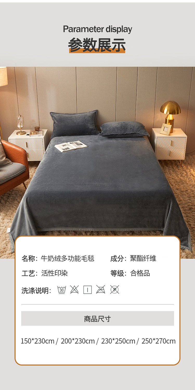 商品名称:雅萱 2022新款牛奶绒多功能毛毯 深灰