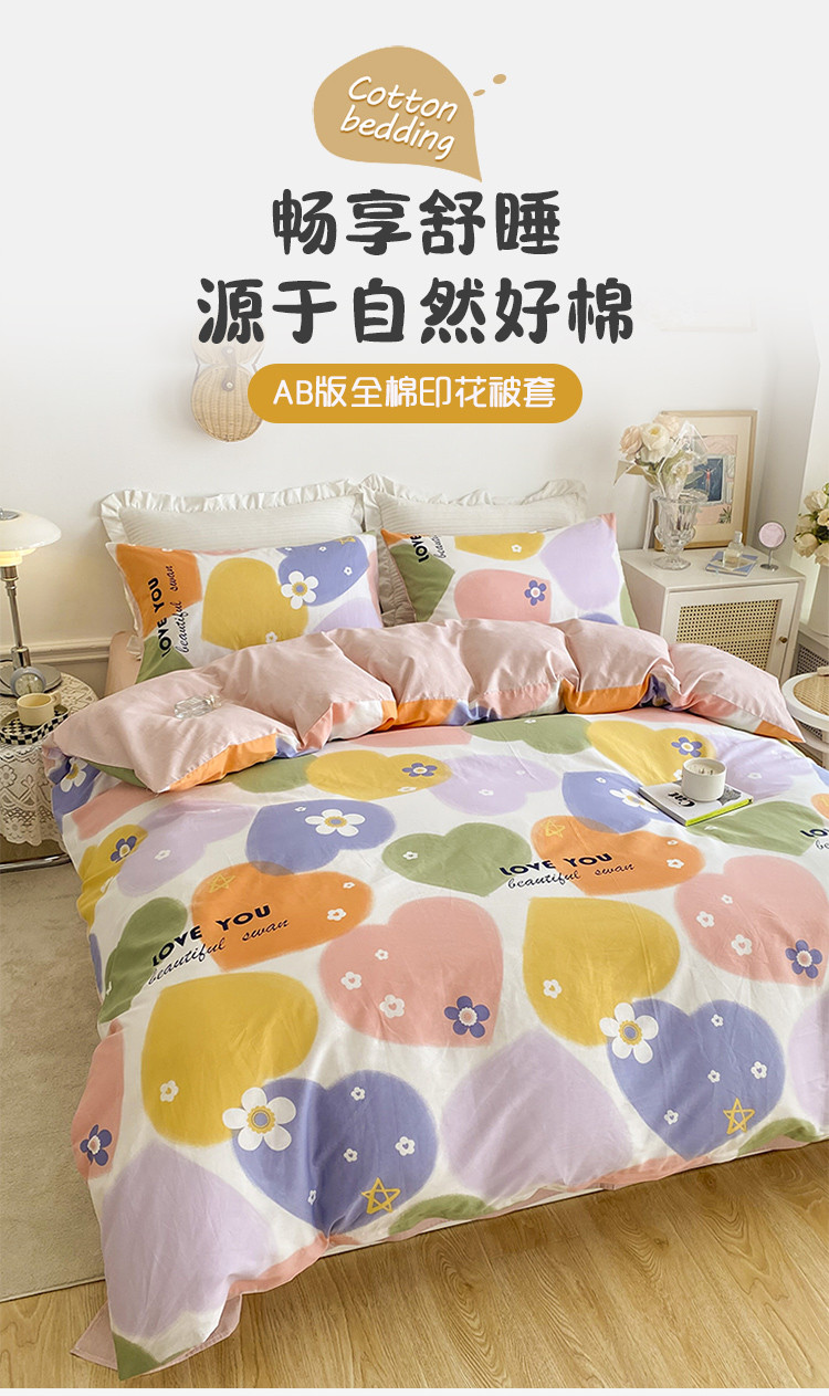 黑马家居2023新款全棉印花喷气12868套件-单被套 七色花语,七色花语