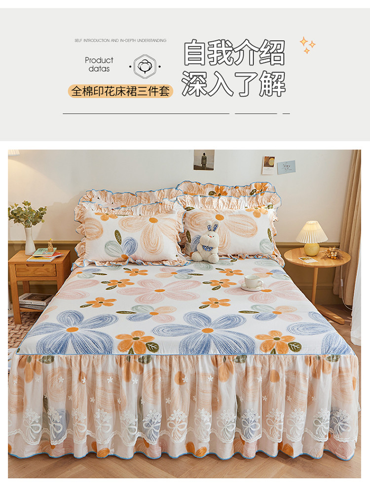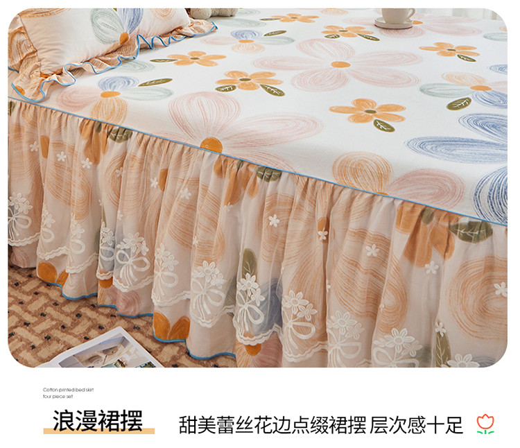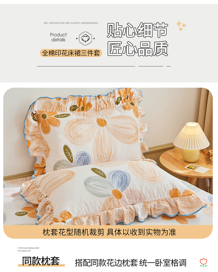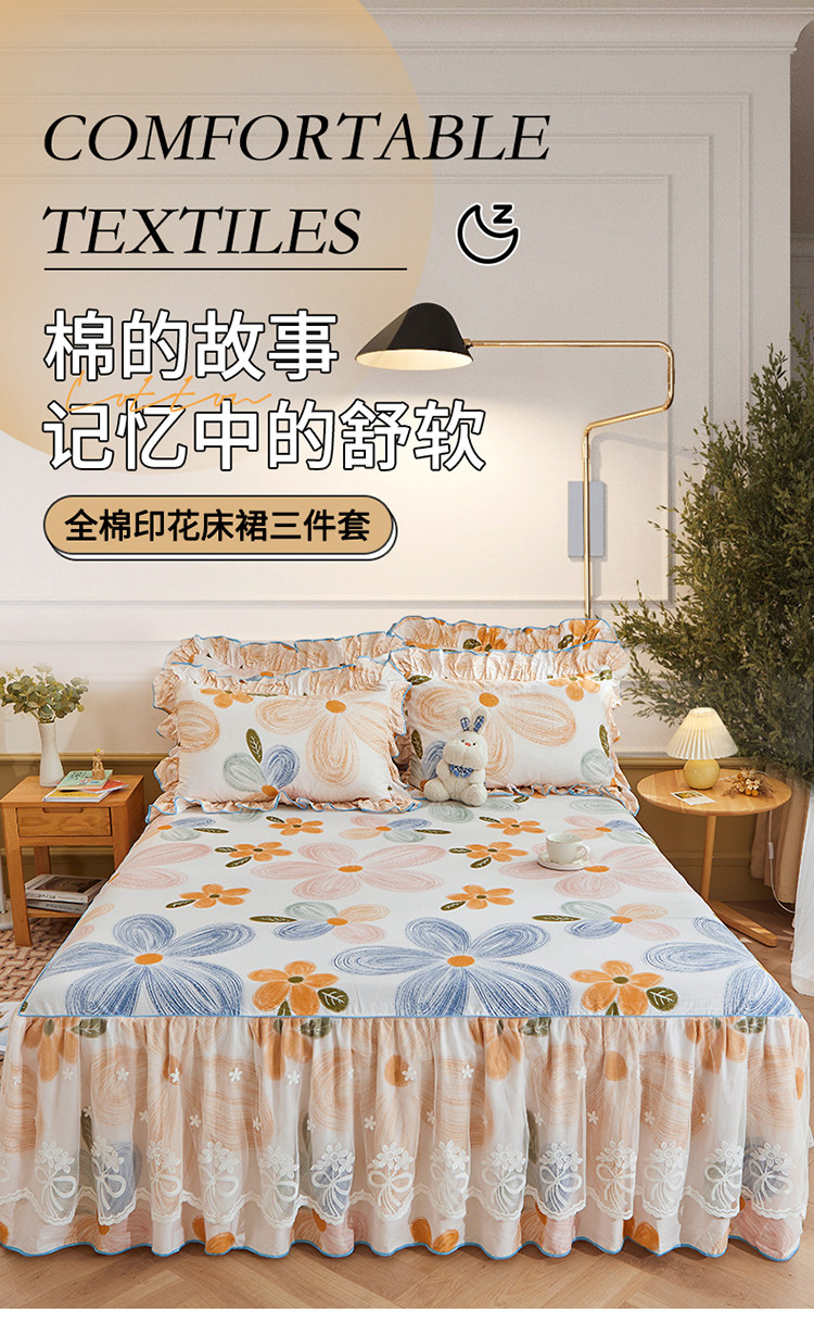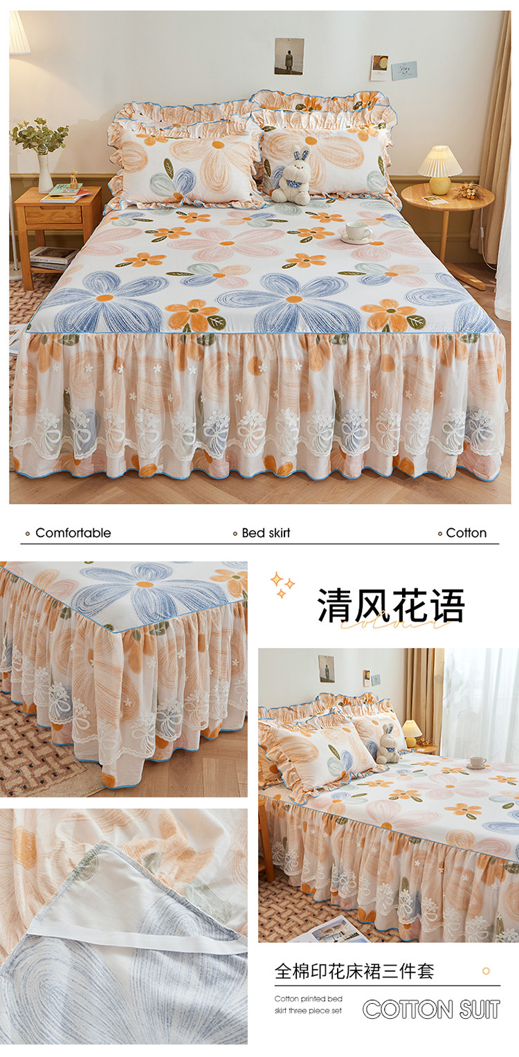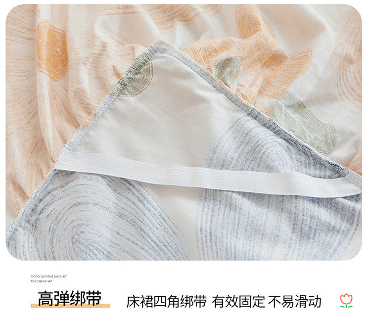 当前位置: 91家纺网 > 商品网购 > 床品套件 > 四件套 > 全棉普通四件套 > 宜凡 2023新款全棉印花单层裙边系列-床裙三件套 清风花语