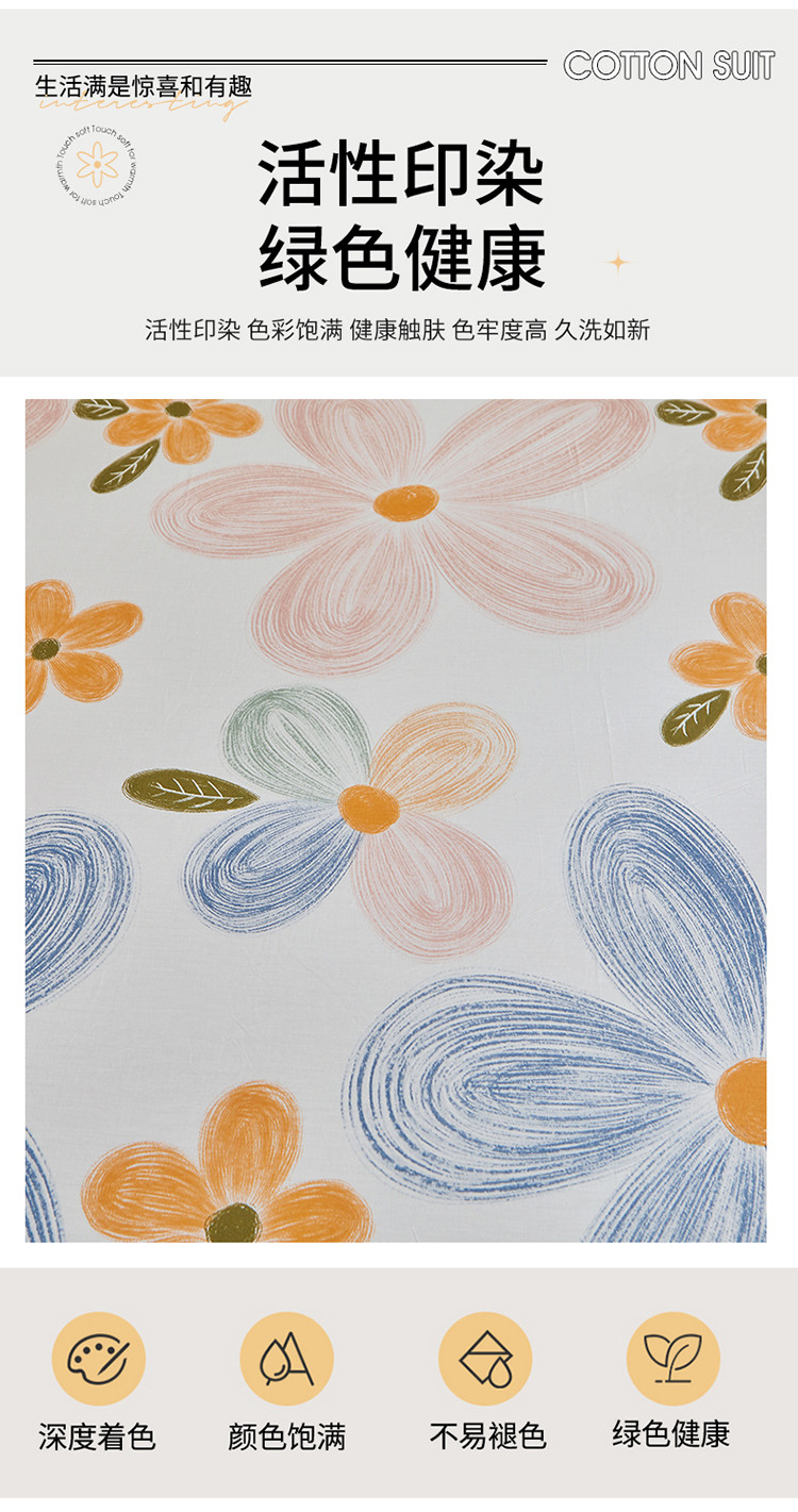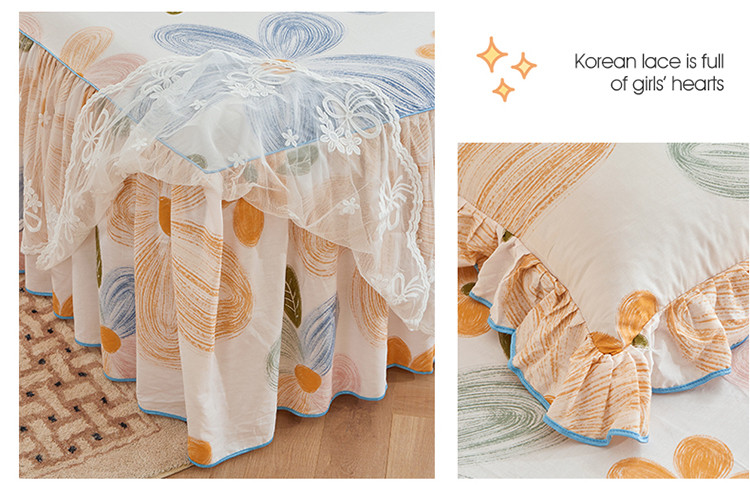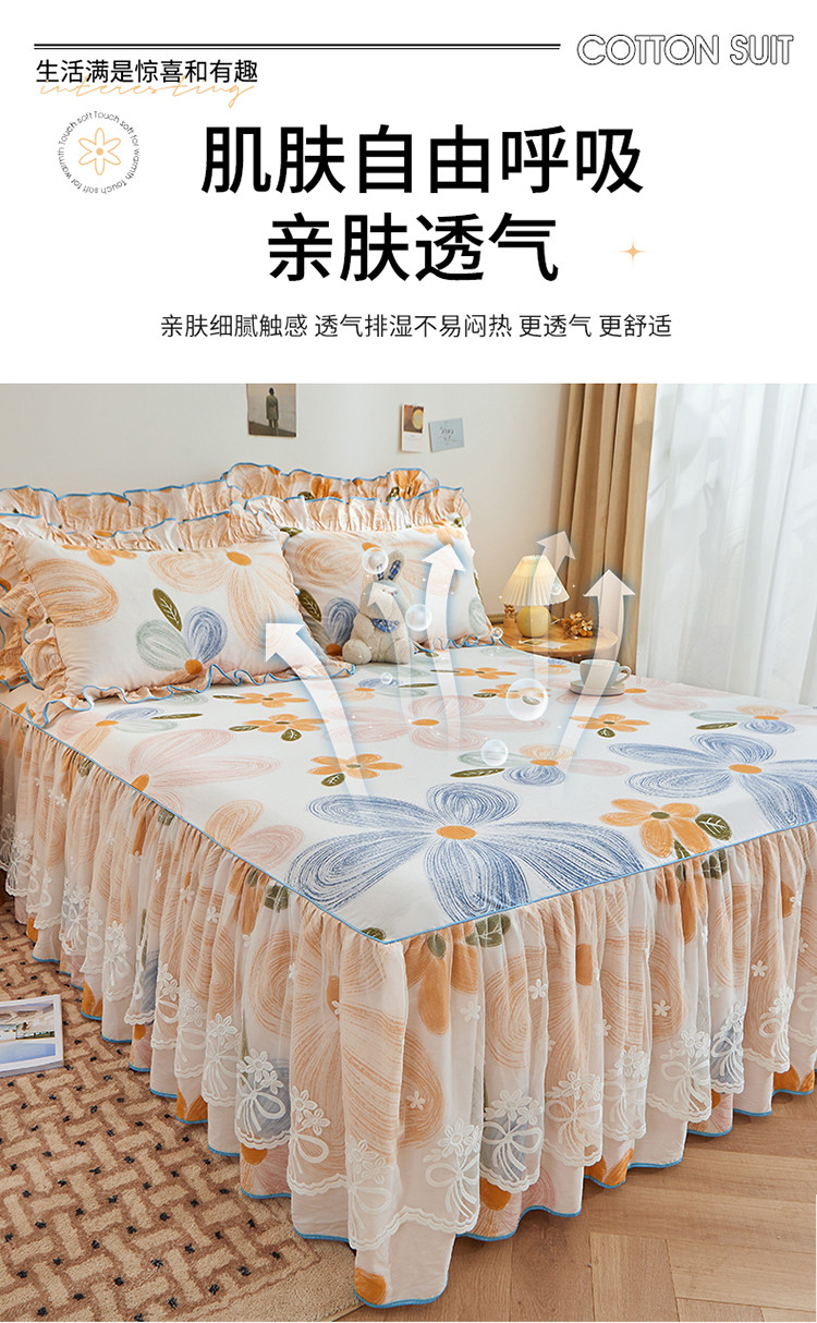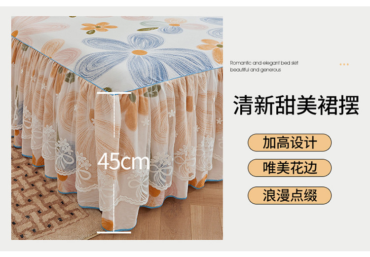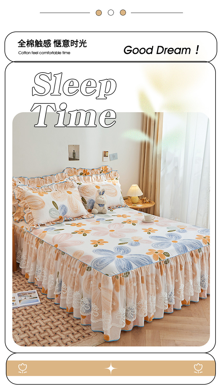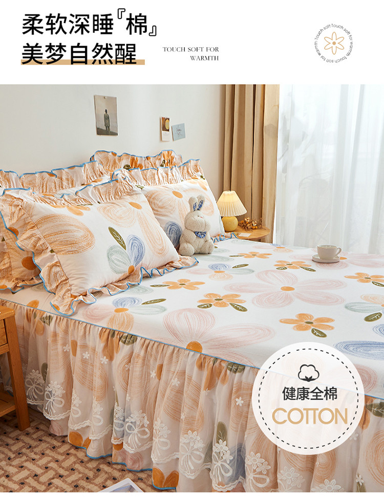 当前位置: 91家纺网 > 商品网购 > 床品套件 > 四件套 > 全棉普通四件套 > 宜凡 2023新款全棉印花单层裙边系列-床裙三件套 清风花语
