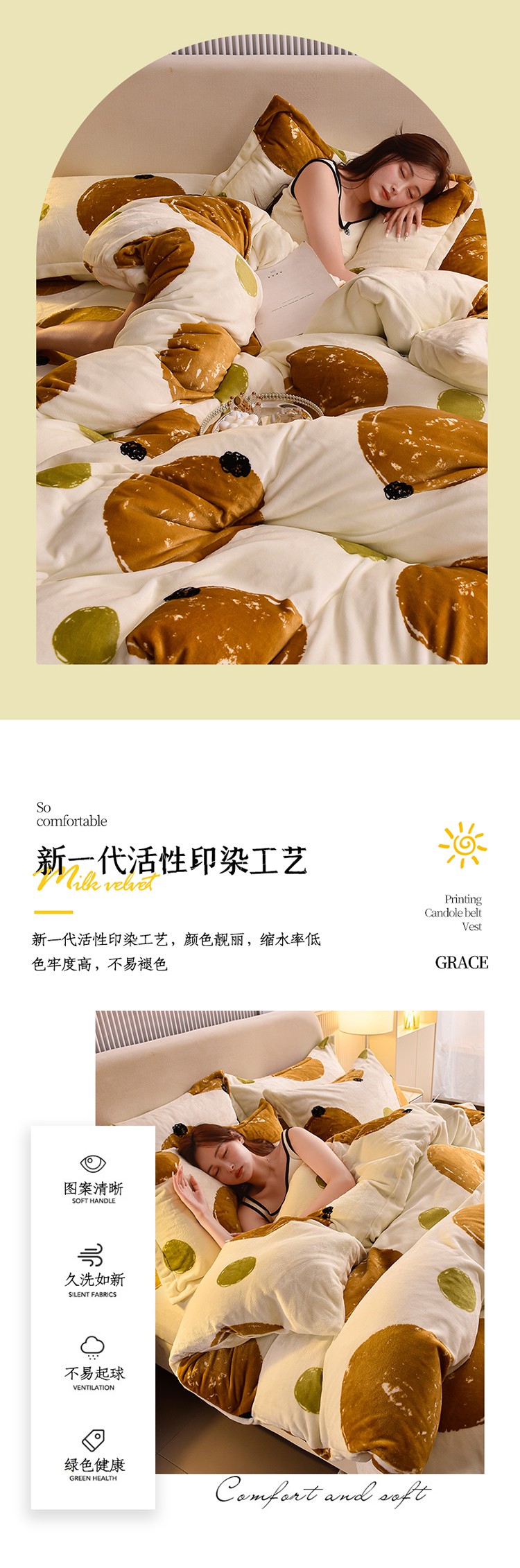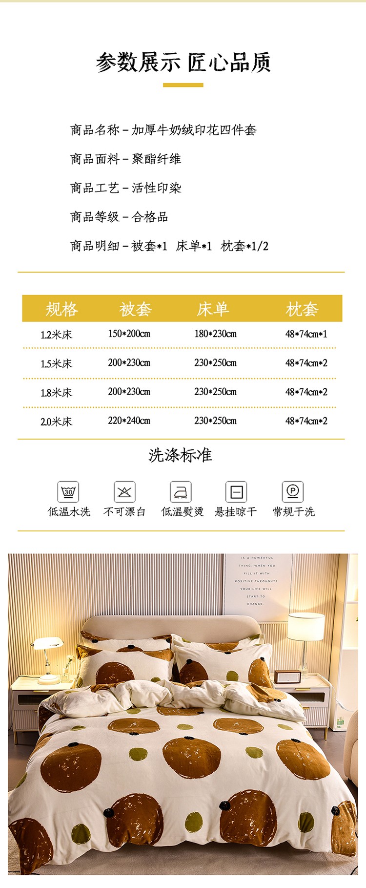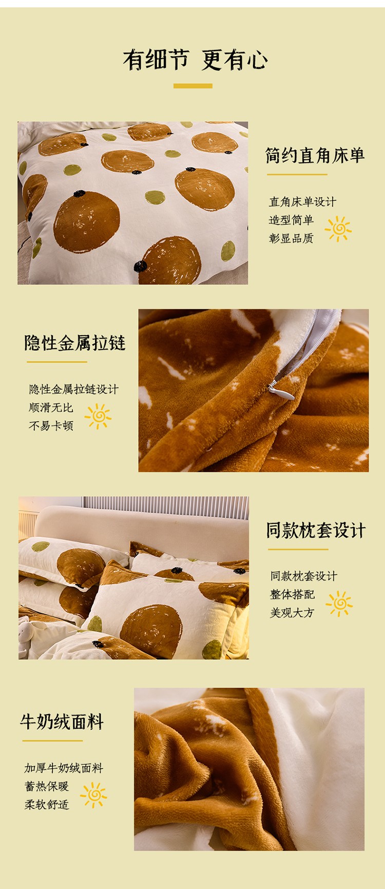 商品名称:同田 2023新款牛奶金貂绒四件套印花保暖法莱水晶绒 小香橙