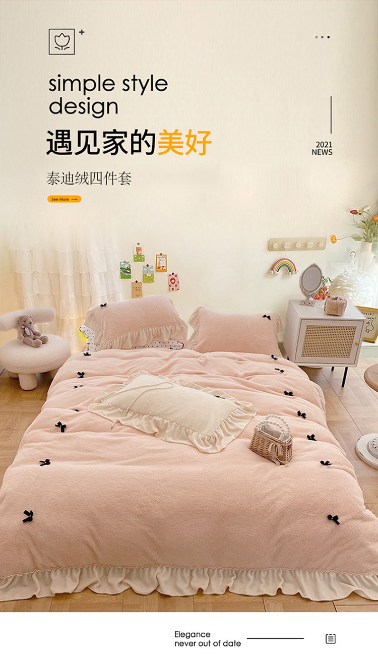 玛奇朵 2022新款高克重进口泰迪绒三件套四件套-仙朵系列 仙朵-粉