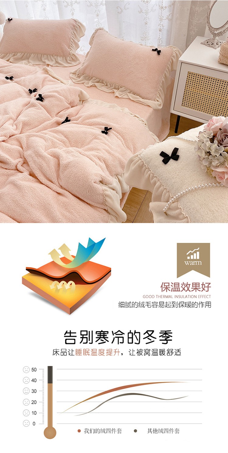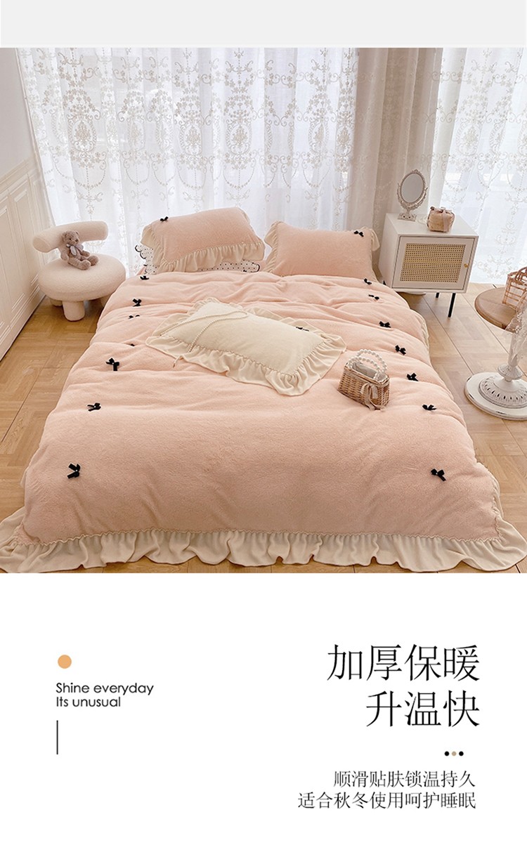 商品名称:玛奇朵 2022新款高克重进口泰迪绒三件套四件套-仙朵系列 仙朵-粉