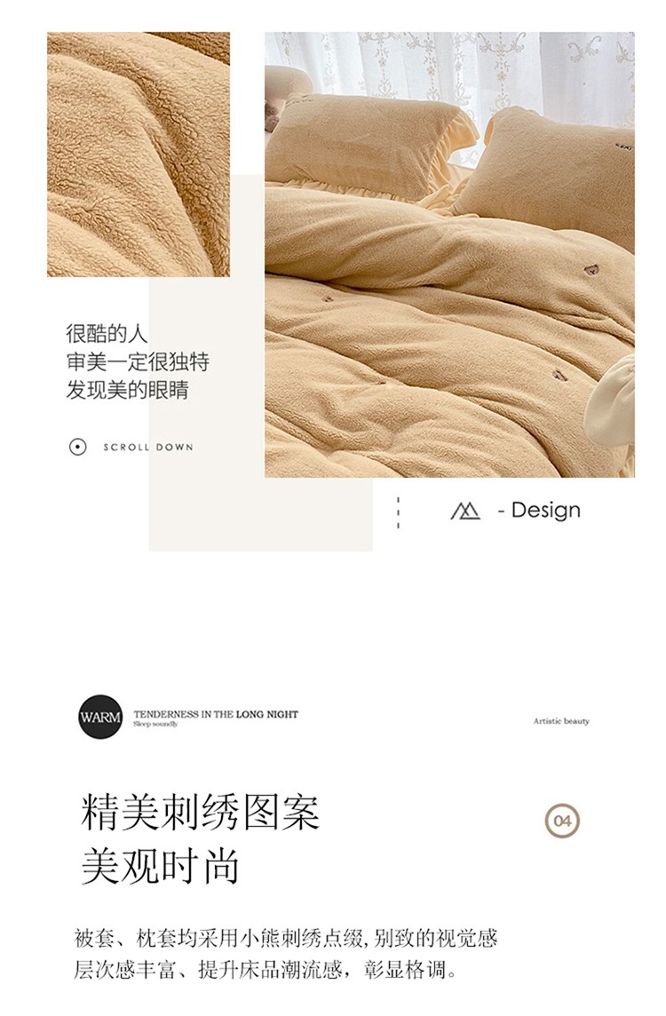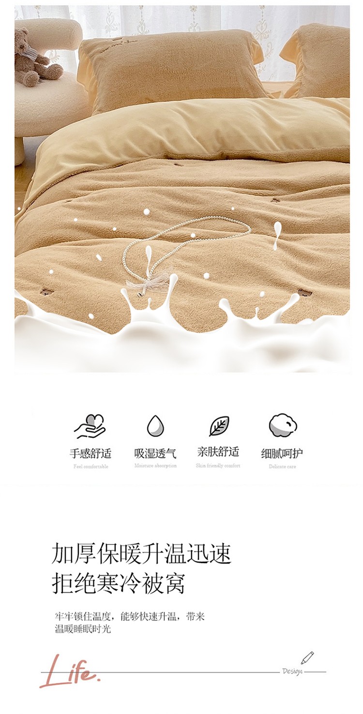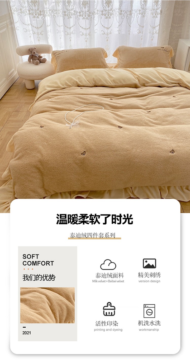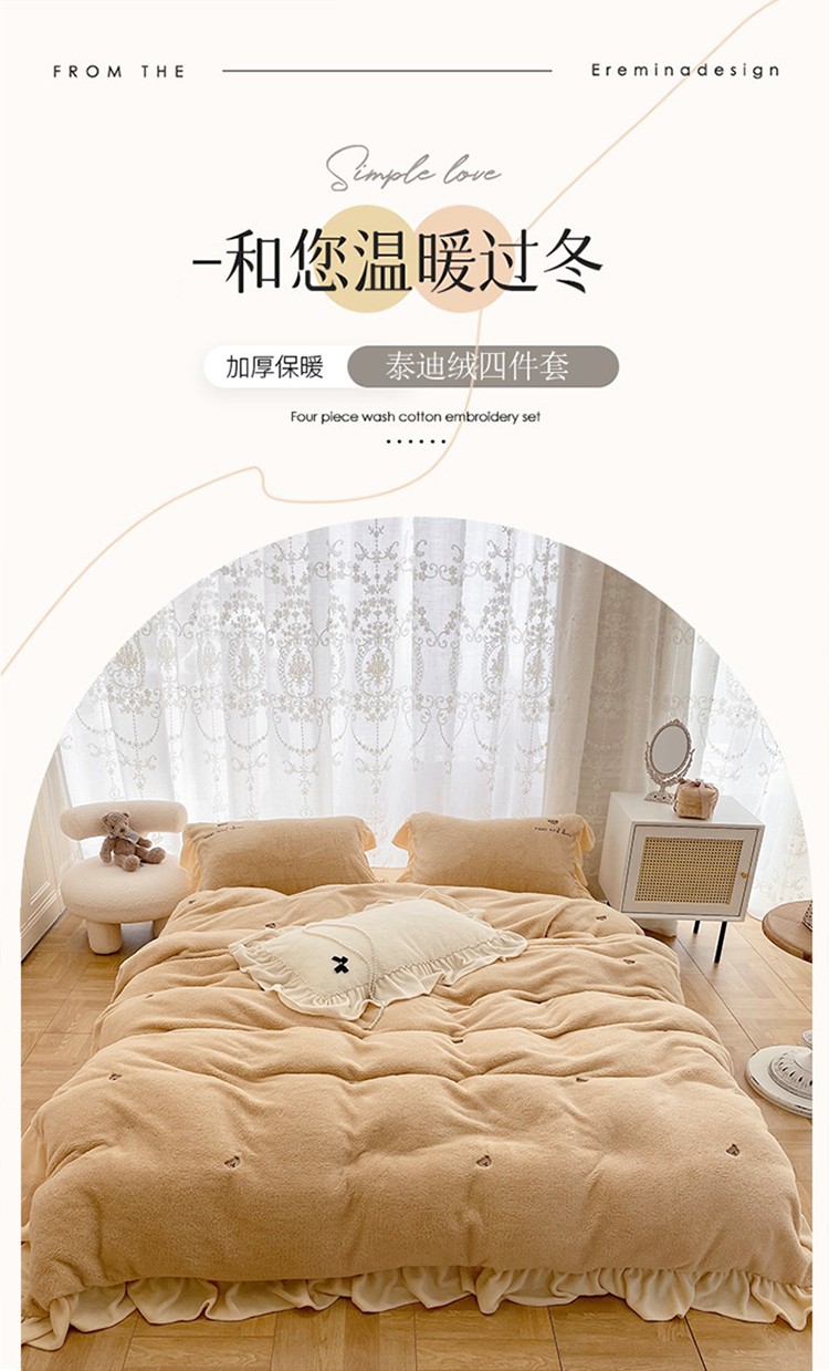 商品名称:玛奇朵 2022秋冬新款泰迪绒刺绣系列四件套 泰迪-栗色