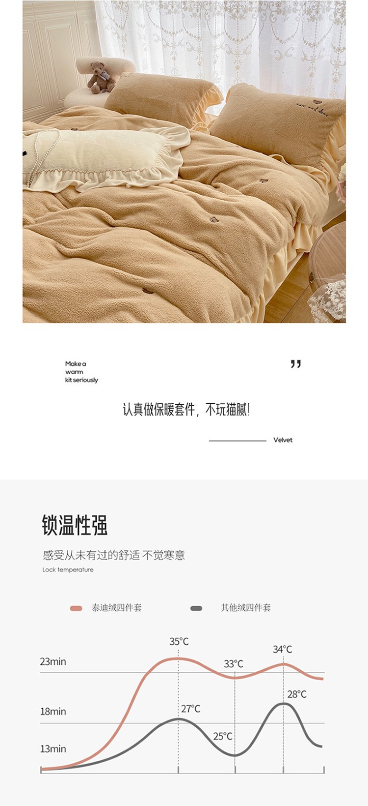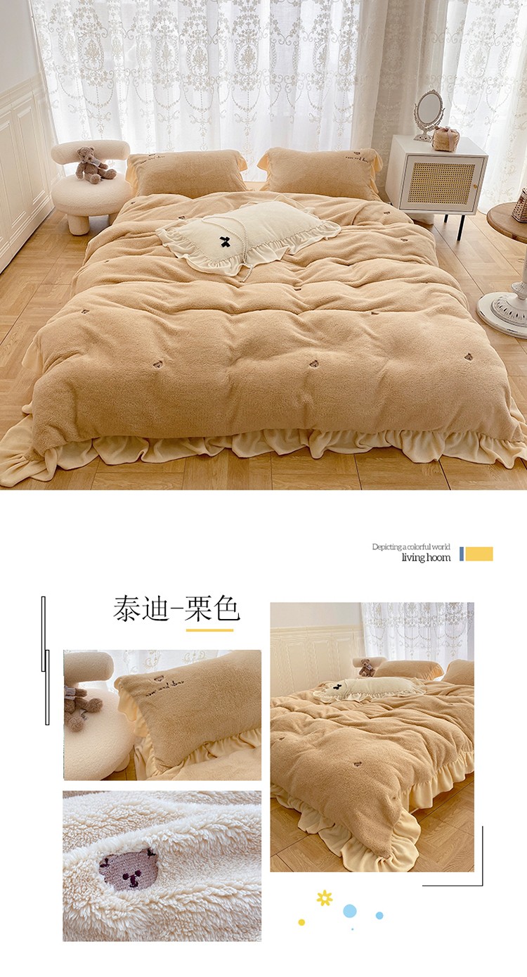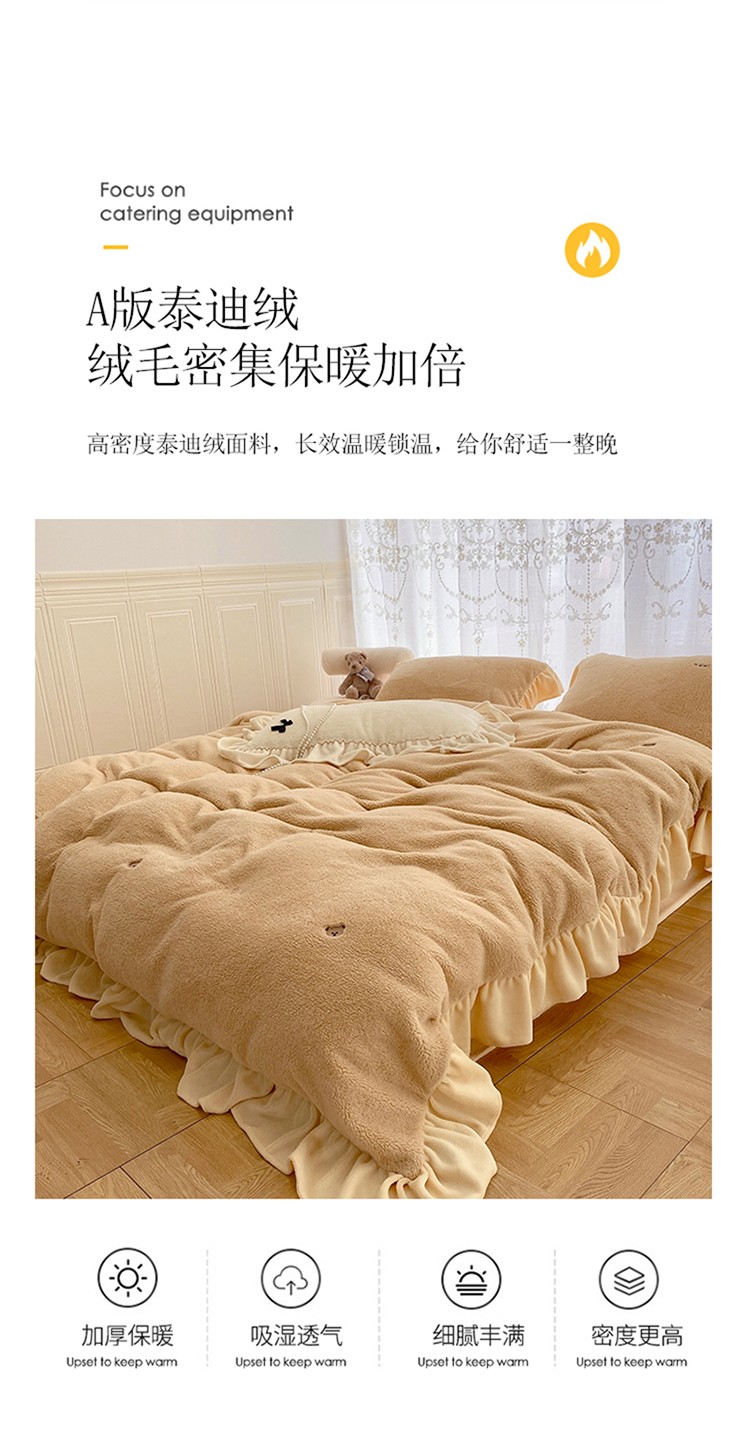 商品名称:玛奇朵 2022秋冬新款泰迪绒刺绣系列四件套 泰迪-栗色
