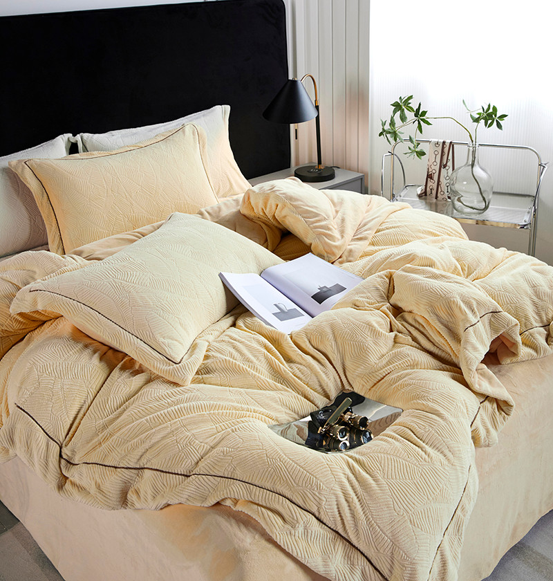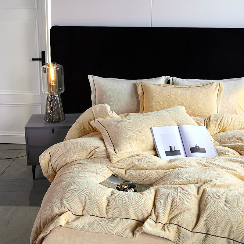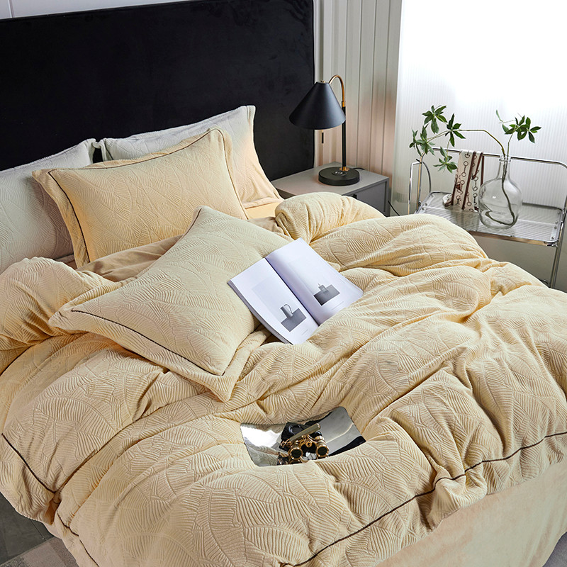 凡客家居 2022新款牛奶绒雕花系列四件套 维娜-月牙黄