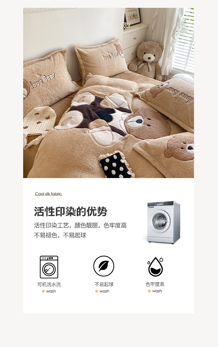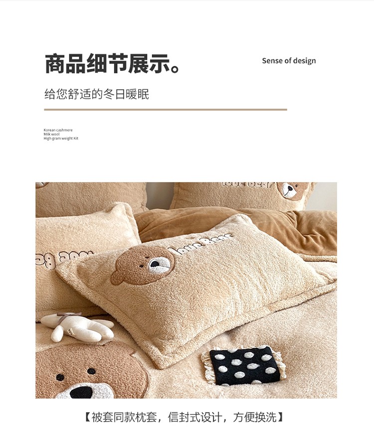 商品名称:眠屿 2022新款韩国绒绣花四件套-爱心熊 奶茶咖