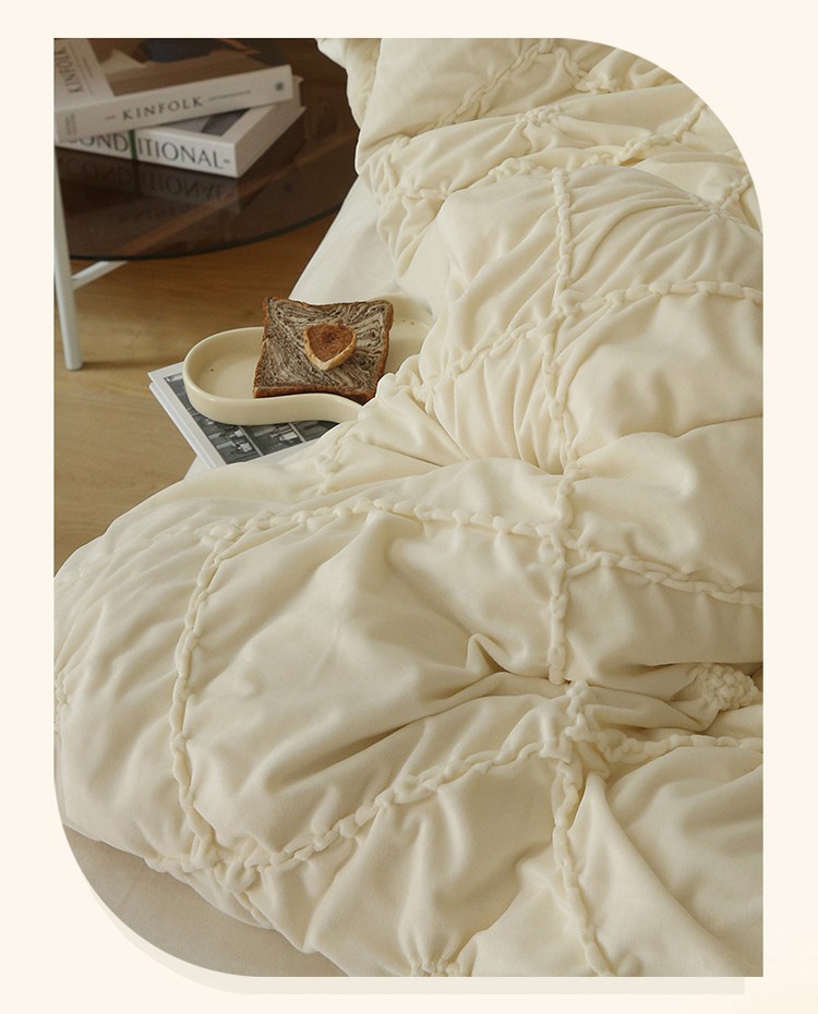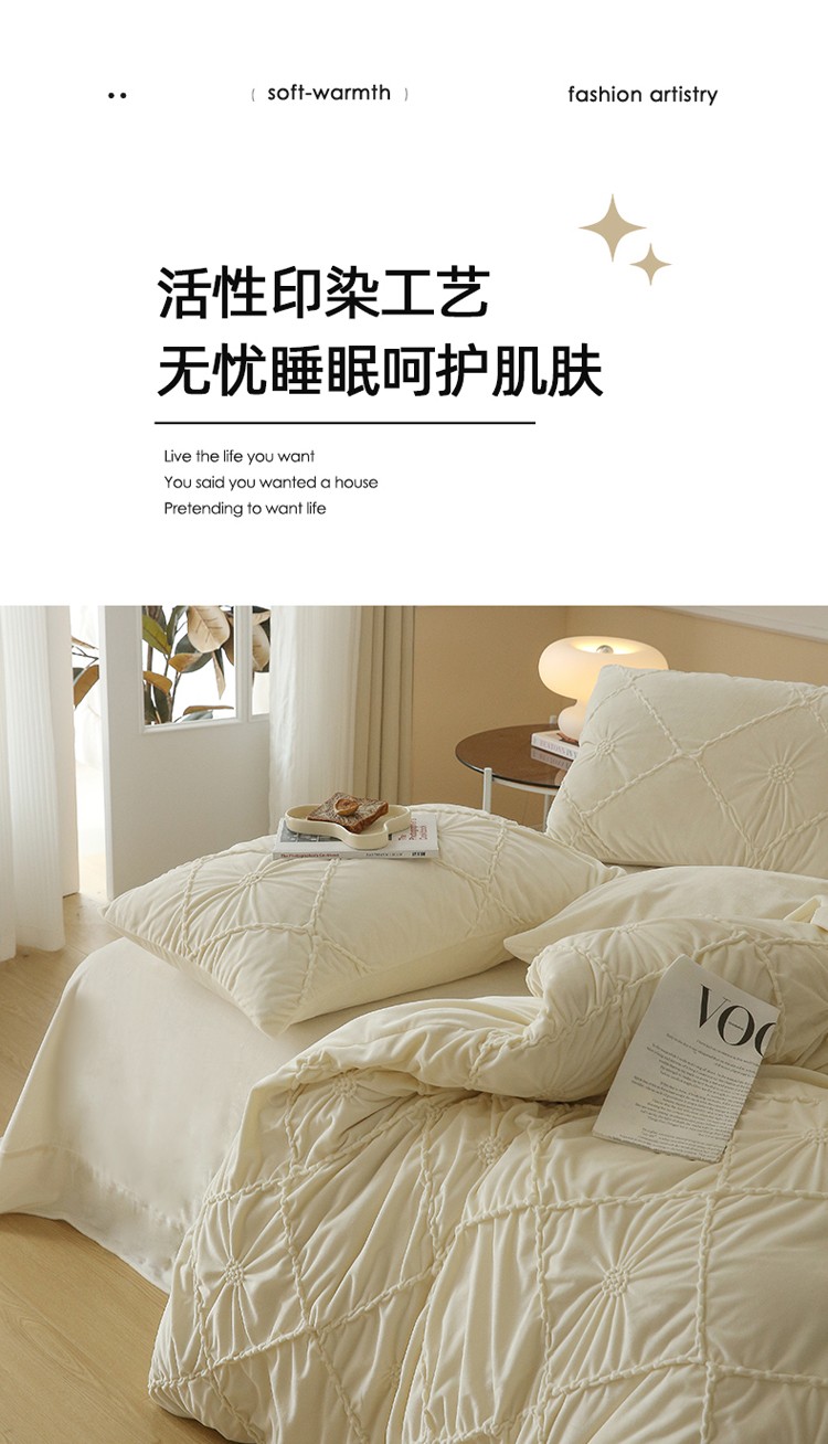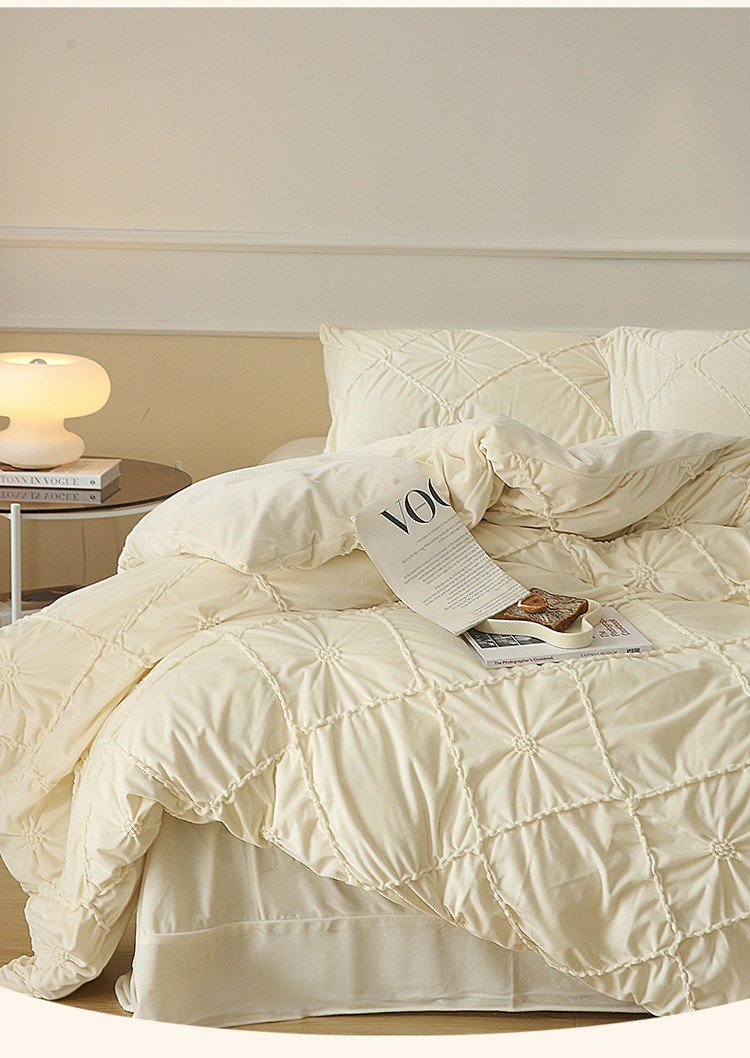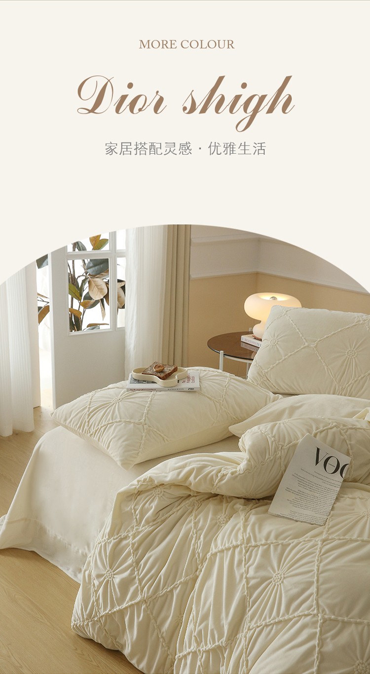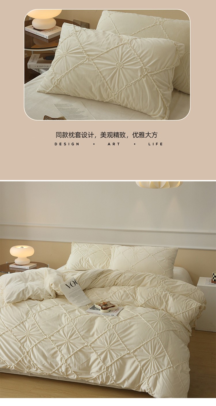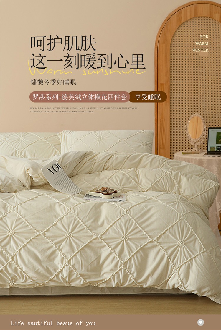 (总)玛奇朵 2025新款秋冬新品230克工艺立体雕花牛奶绒四件套 花满溪系列,花满溪-粉,花满溪-灰,花满溪-卡其