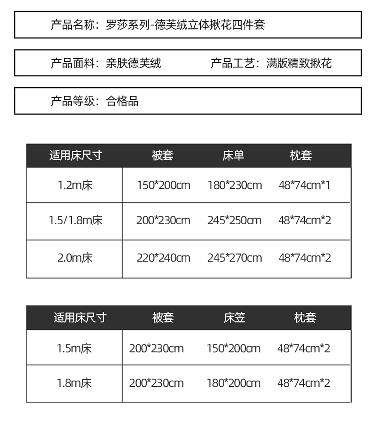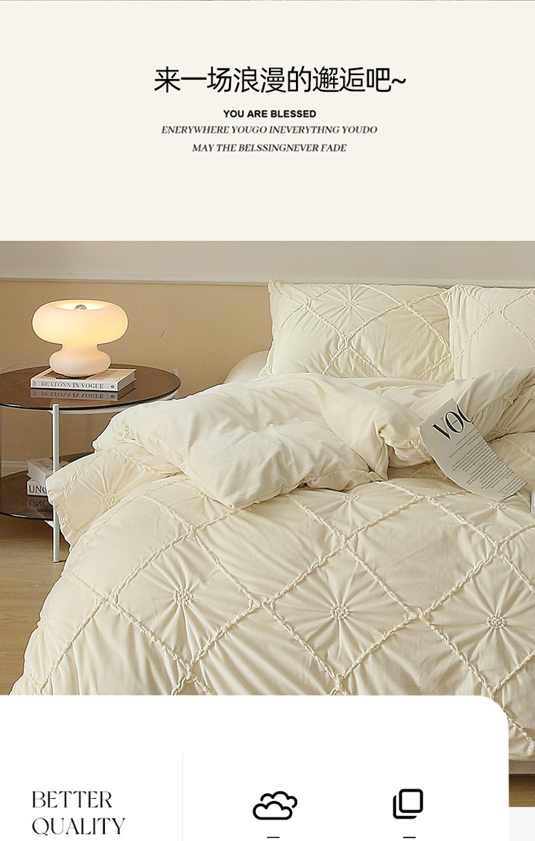玛奇朵 2022新款德芙绒立体揪花四件套--罗莎系列 罗莎-芍药白