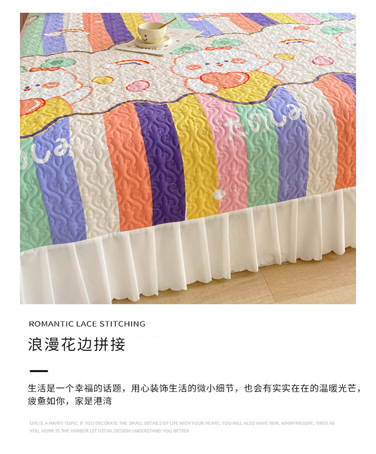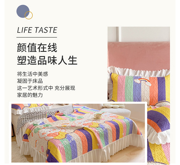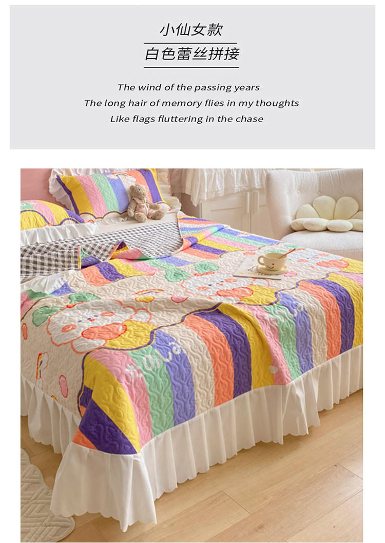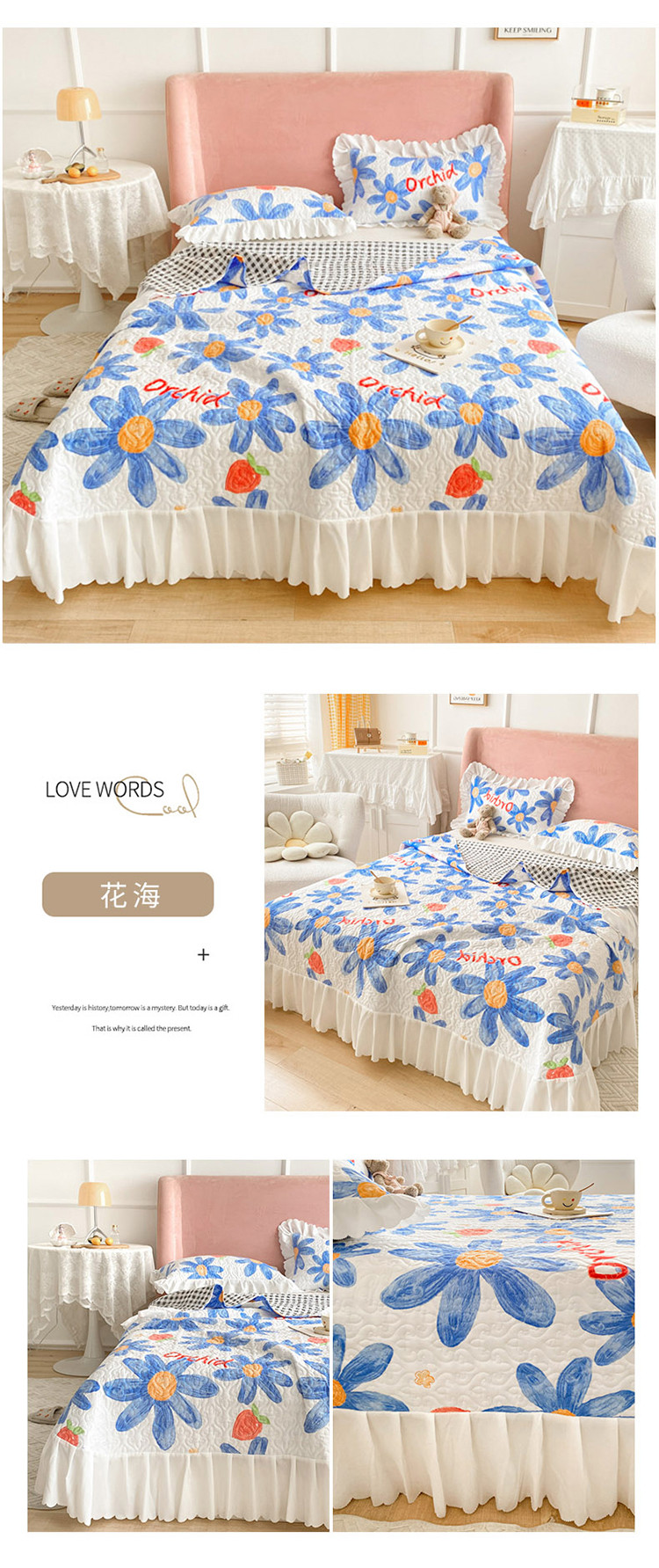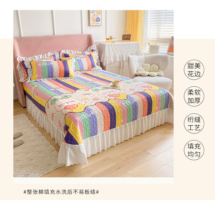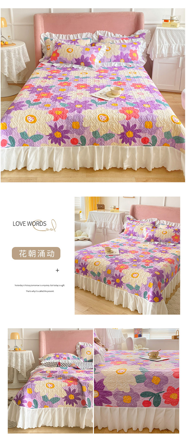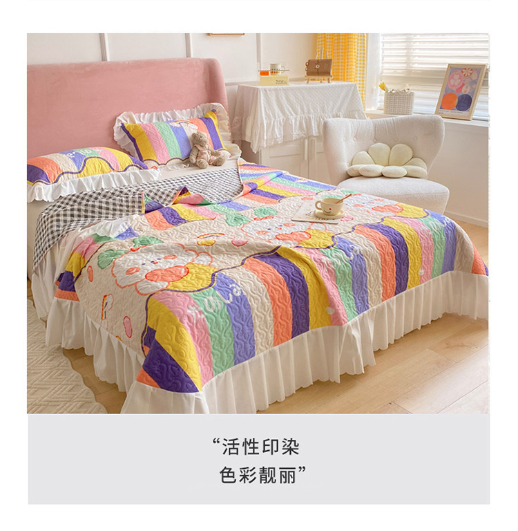 商品名称:总美莱 2022新款亲肤磨毛床盖床裙夹棉单件三件套直播四件套