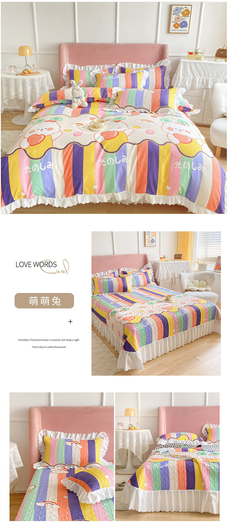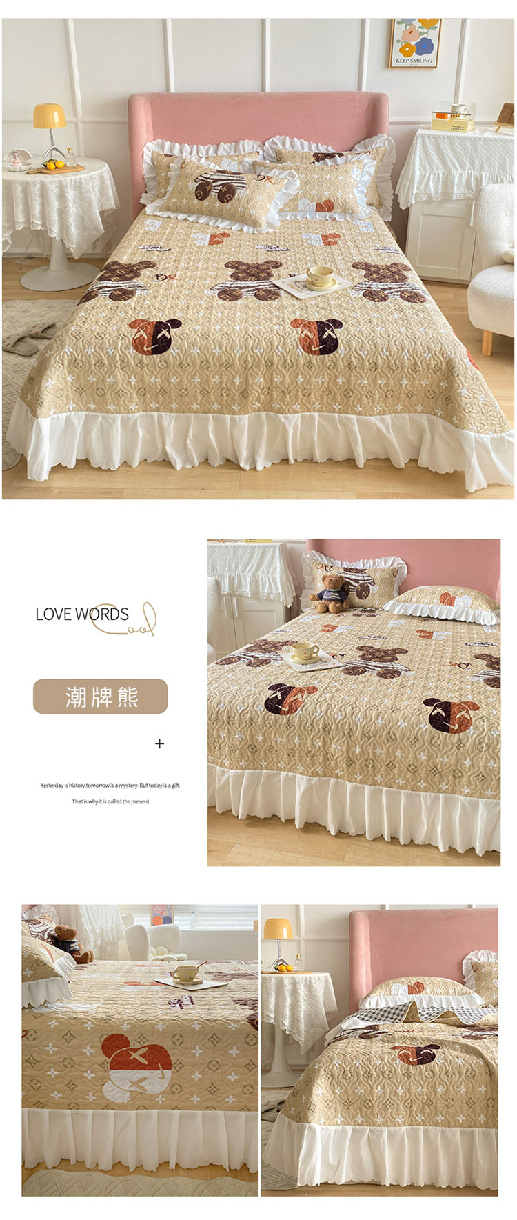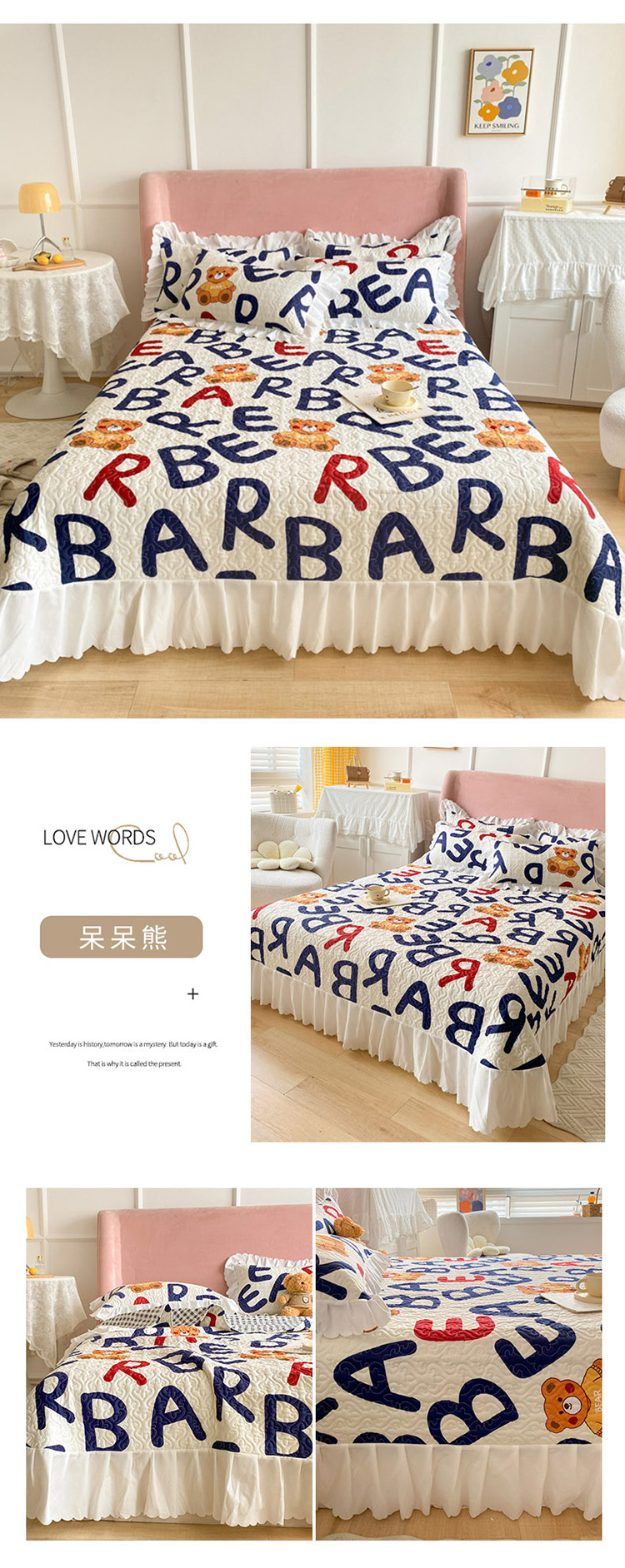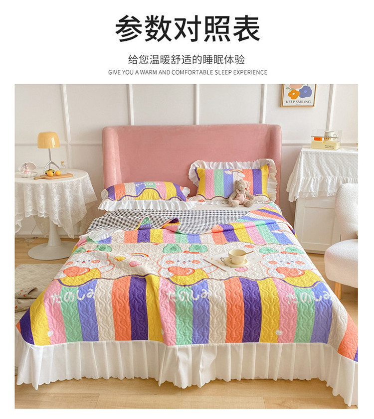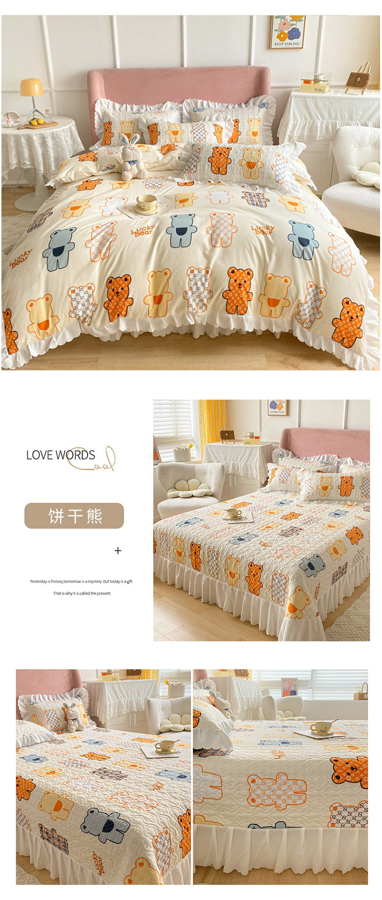 商品名称:总美莱 2022新款亲肤磨毛床盖床裙夹棉单件三件套直播四件套