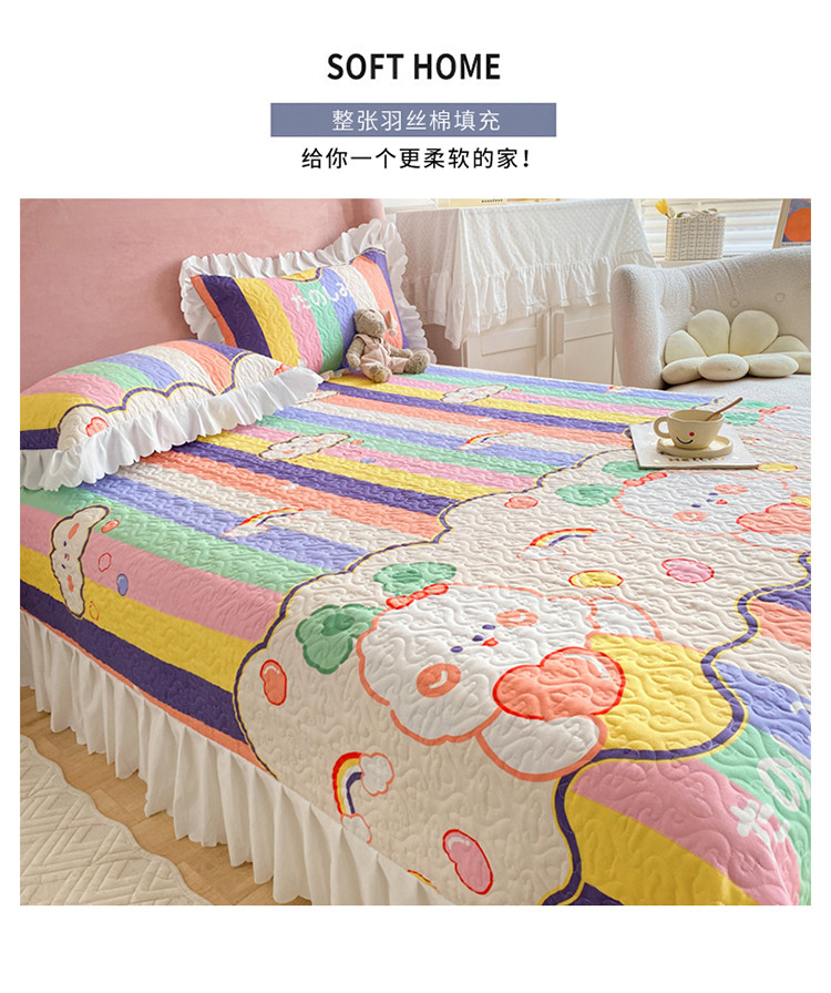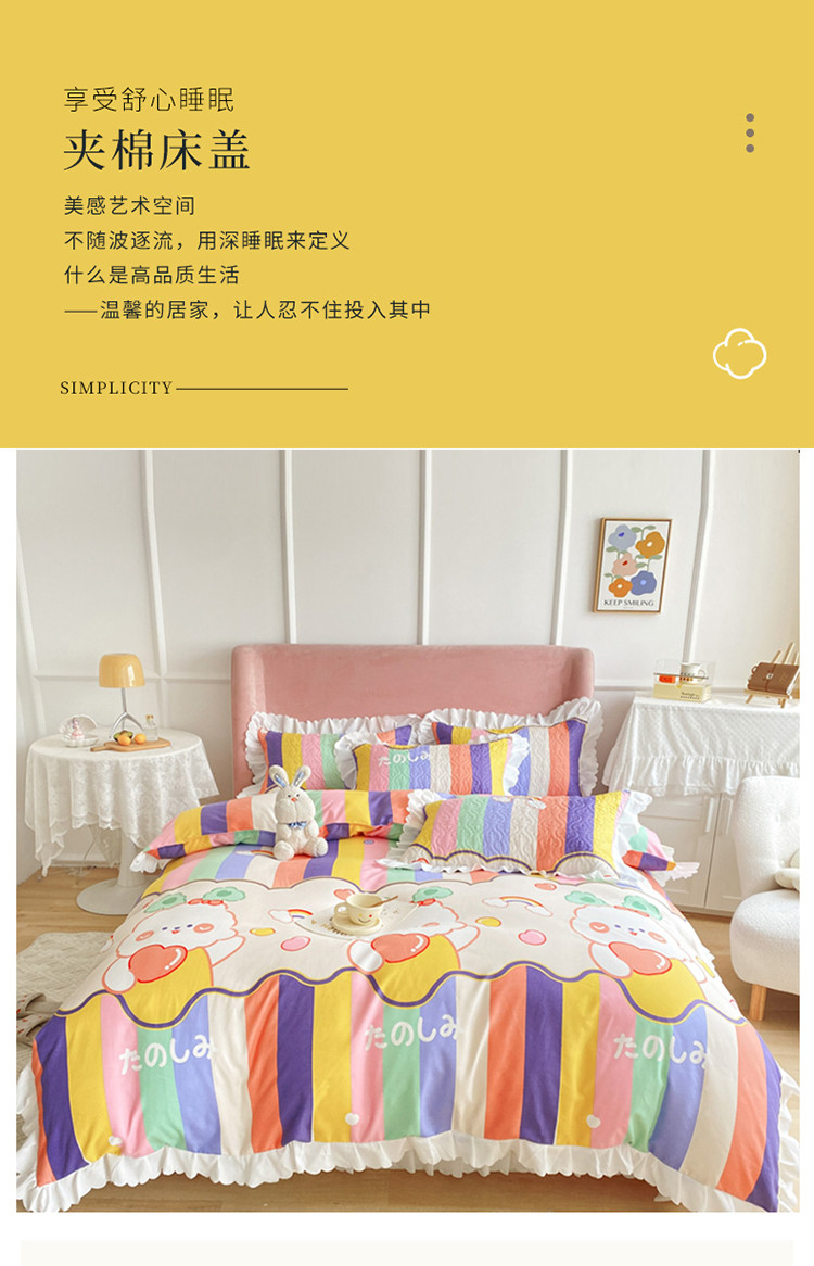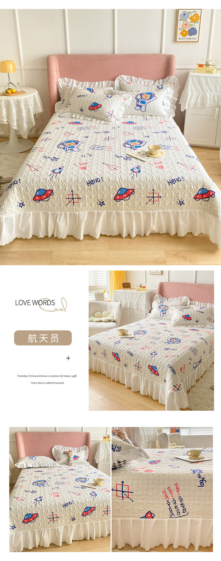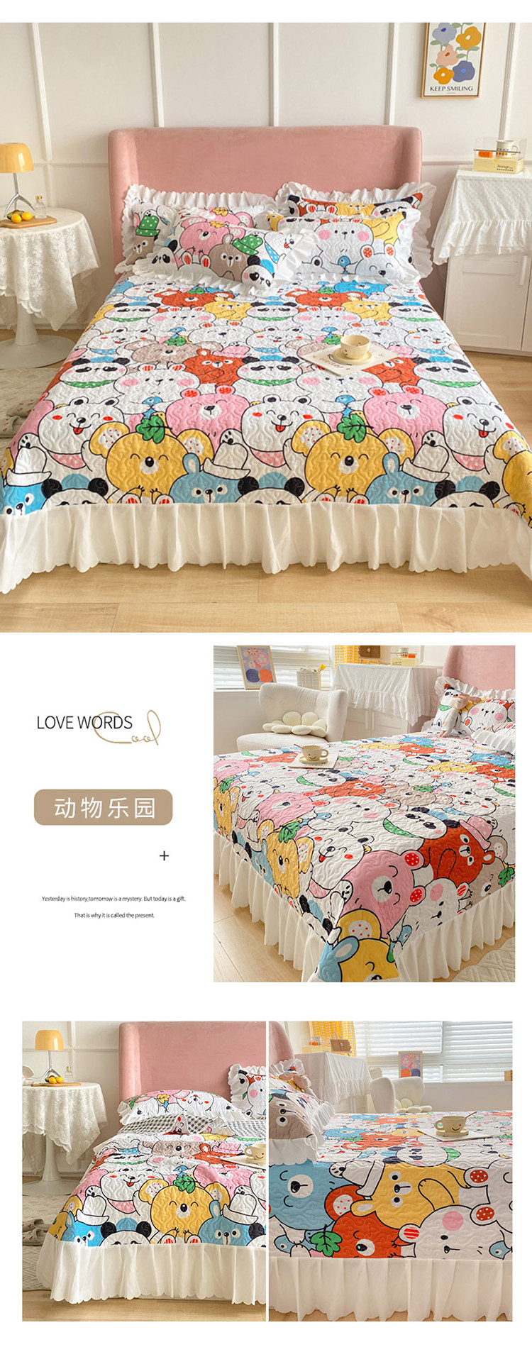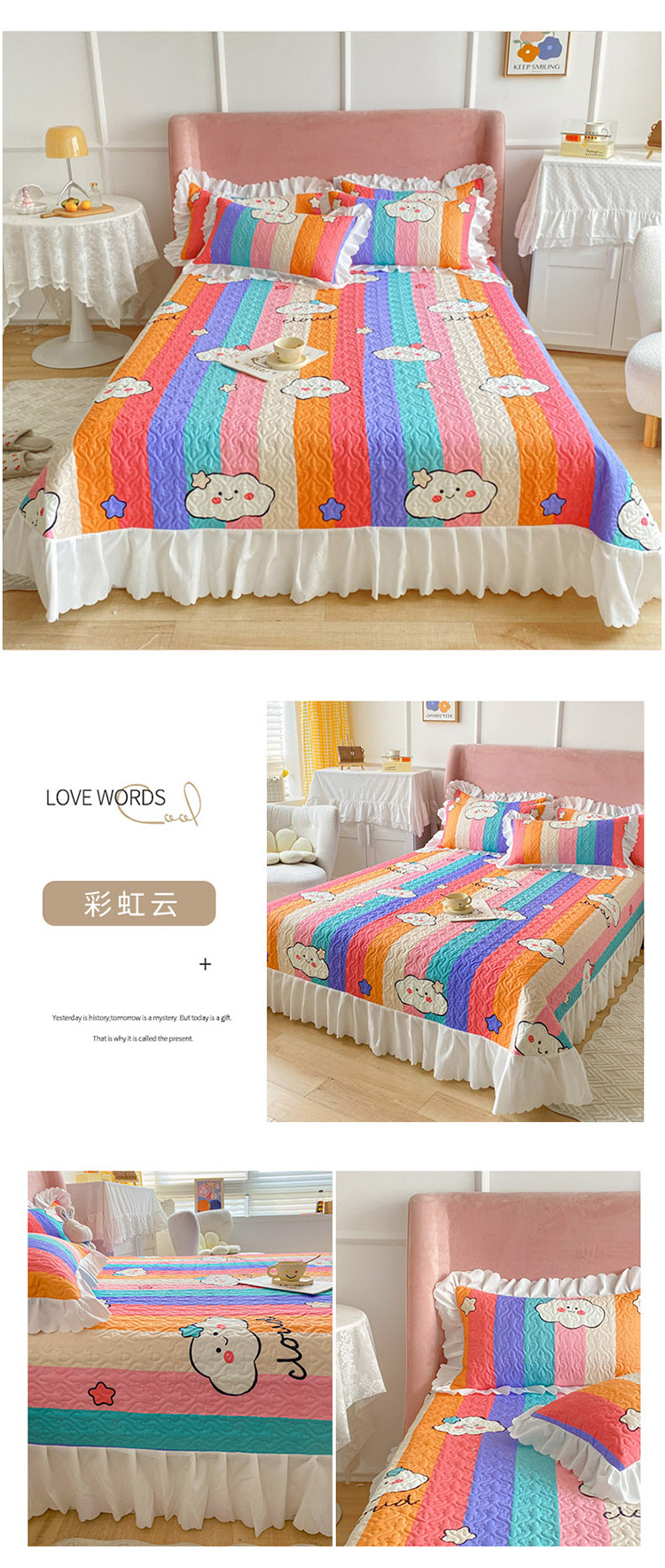 商品名称:总美莱 2022新款亲肤磨毛床盖床裙夹棉单件三件套直播四件套