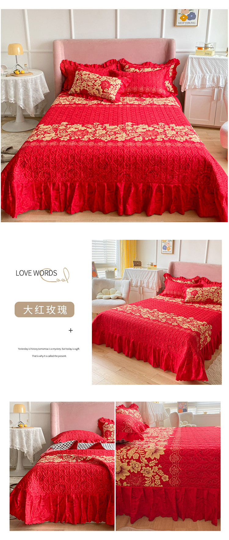 总美莱 2022新款亲肤磨毛床盖床裙夹棉单件三件套直播四件套