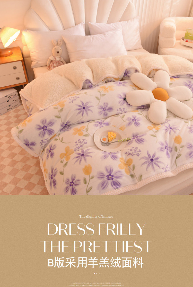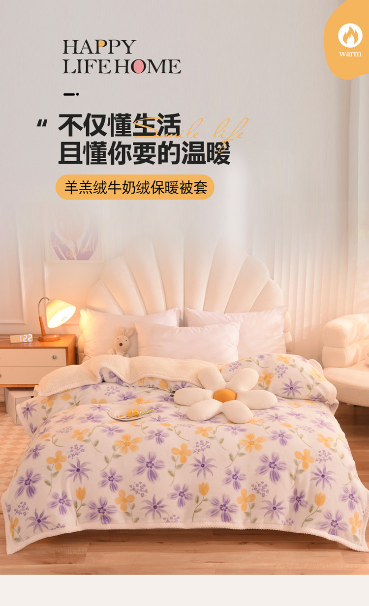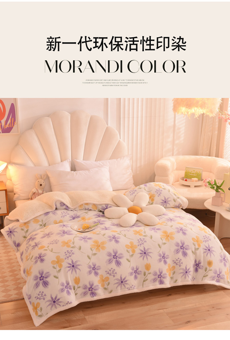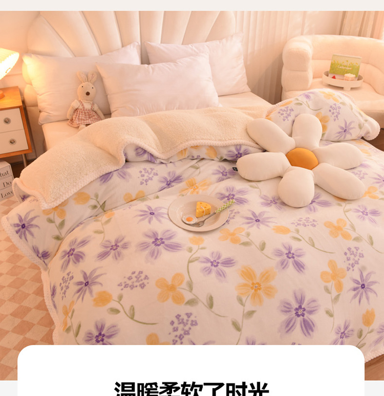 商品名称:眠博士 2021新款印花拼羊羔绒单被套 花溪紫