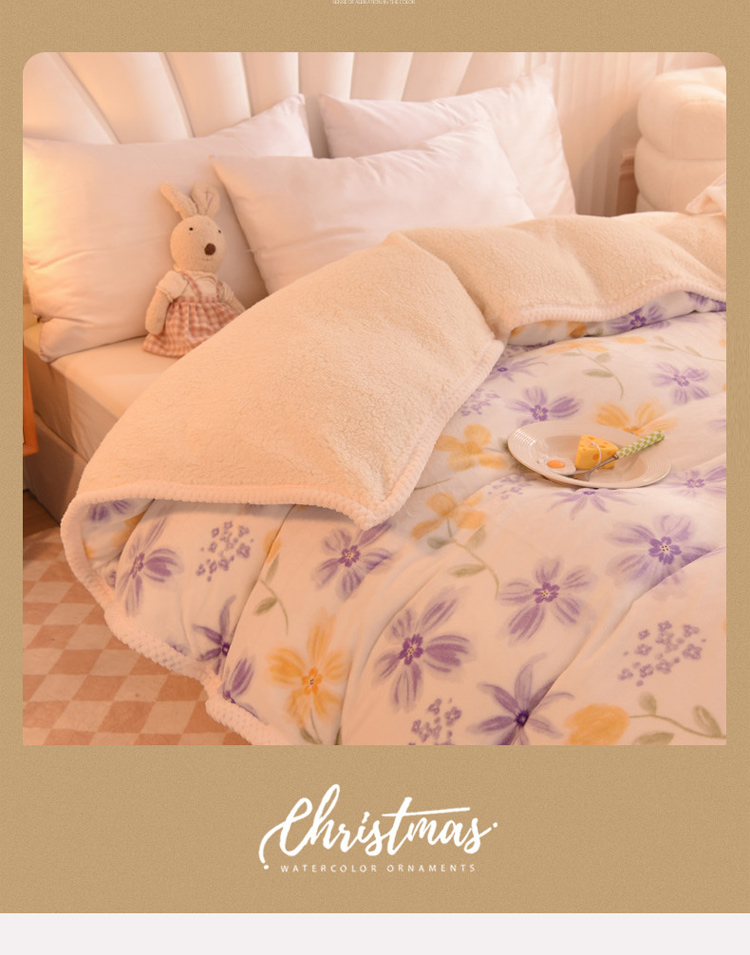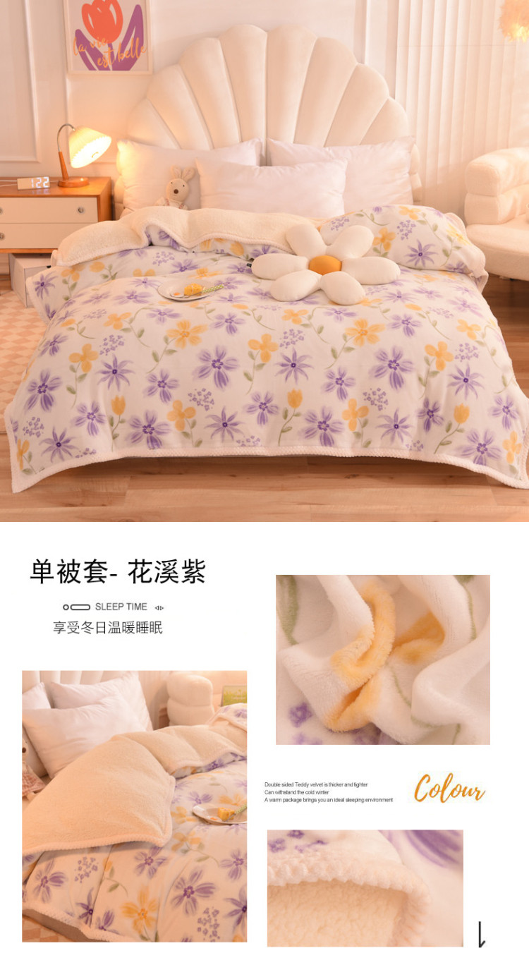 眠博士 2021新款印花拼羊羔绒单被套 花溪紫