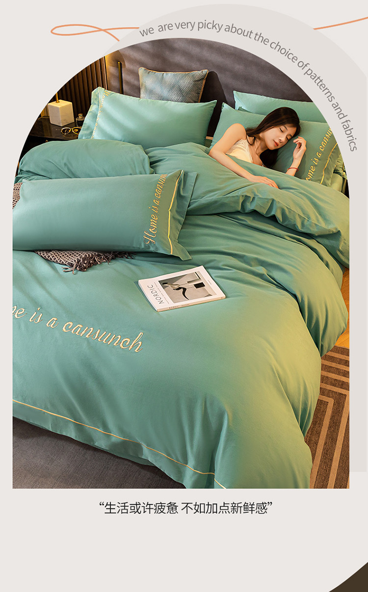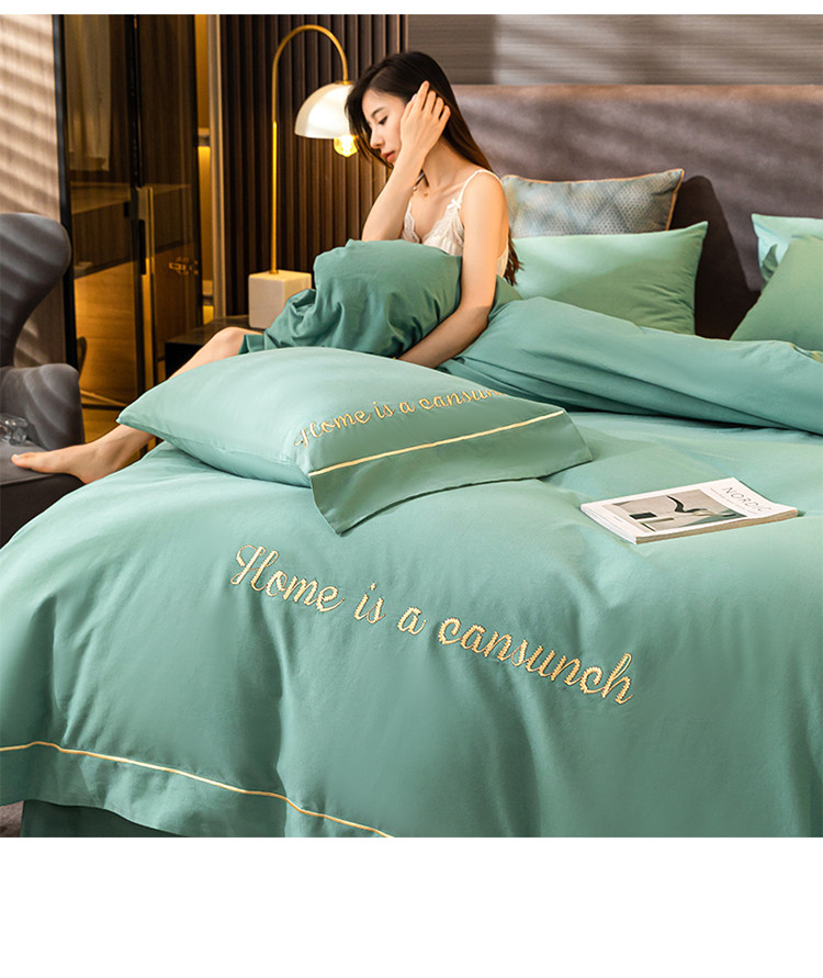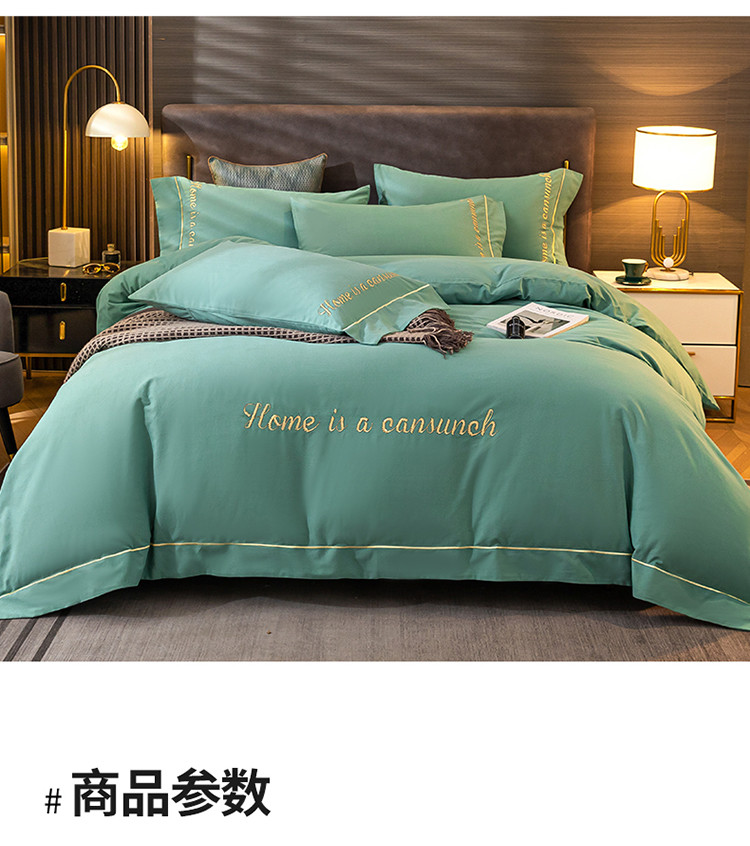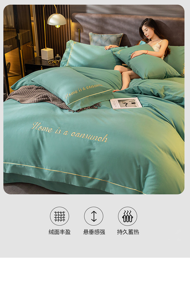 商品名称:蓝米卡夫 2024新款全棉加厚磨毛刺绣套件系列 松石绿
