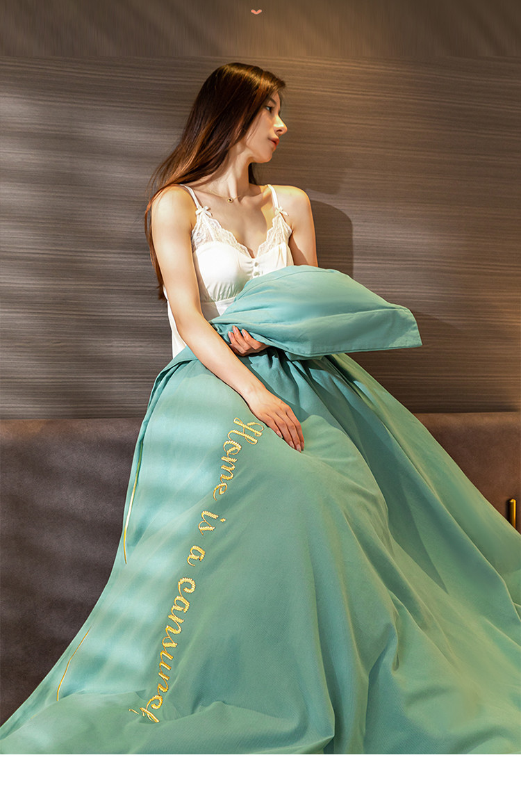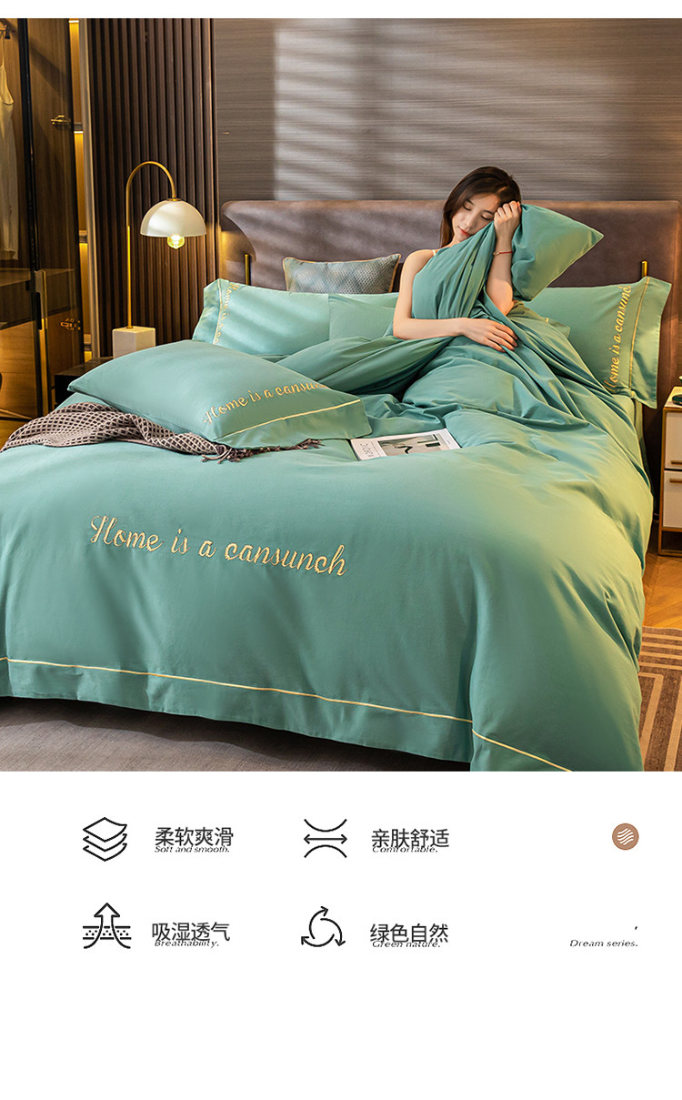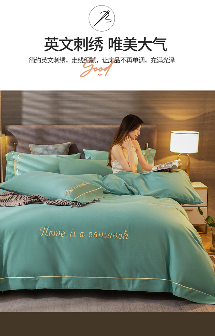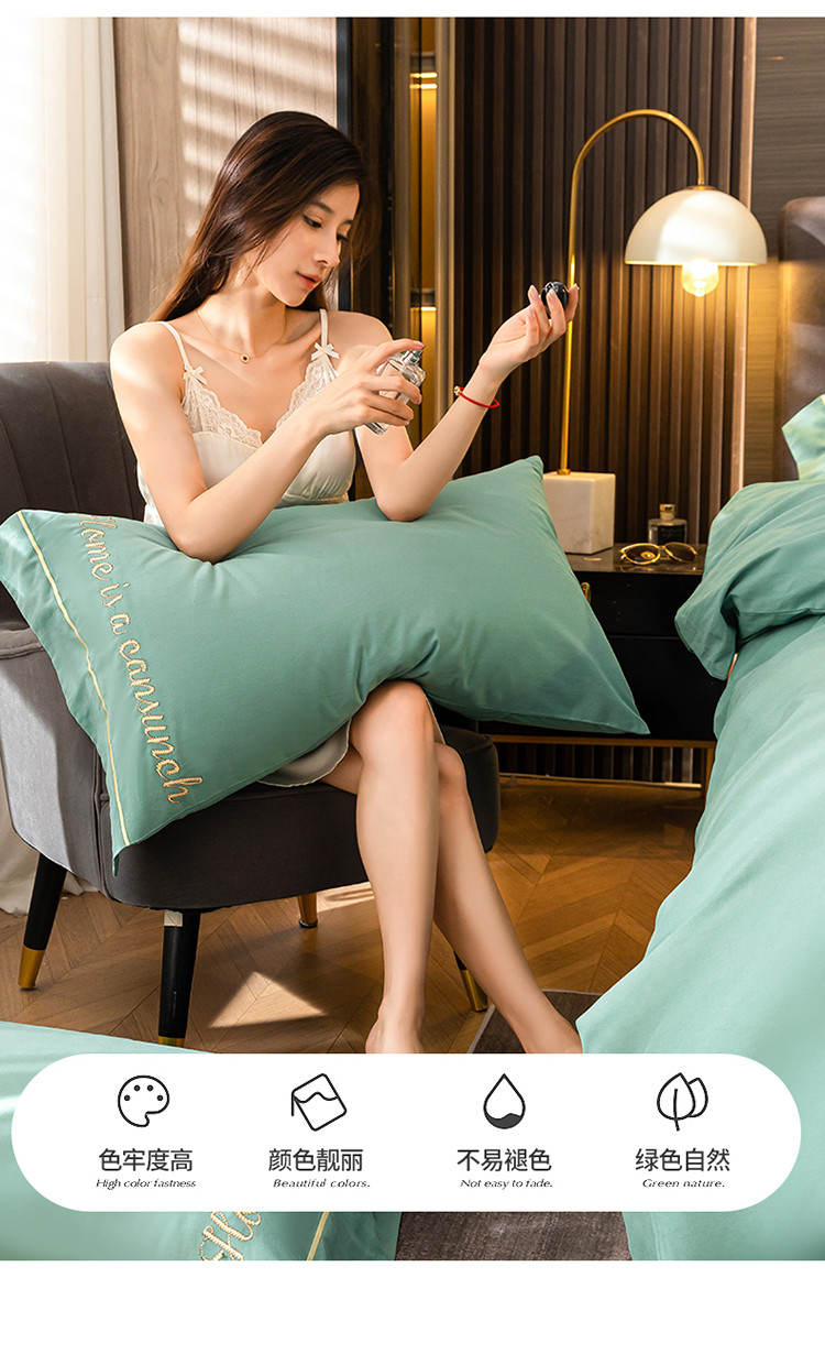 商品名称:蓝米卡夫 2024新款全棉加厚磨毛刺绣套件系列 松石绿