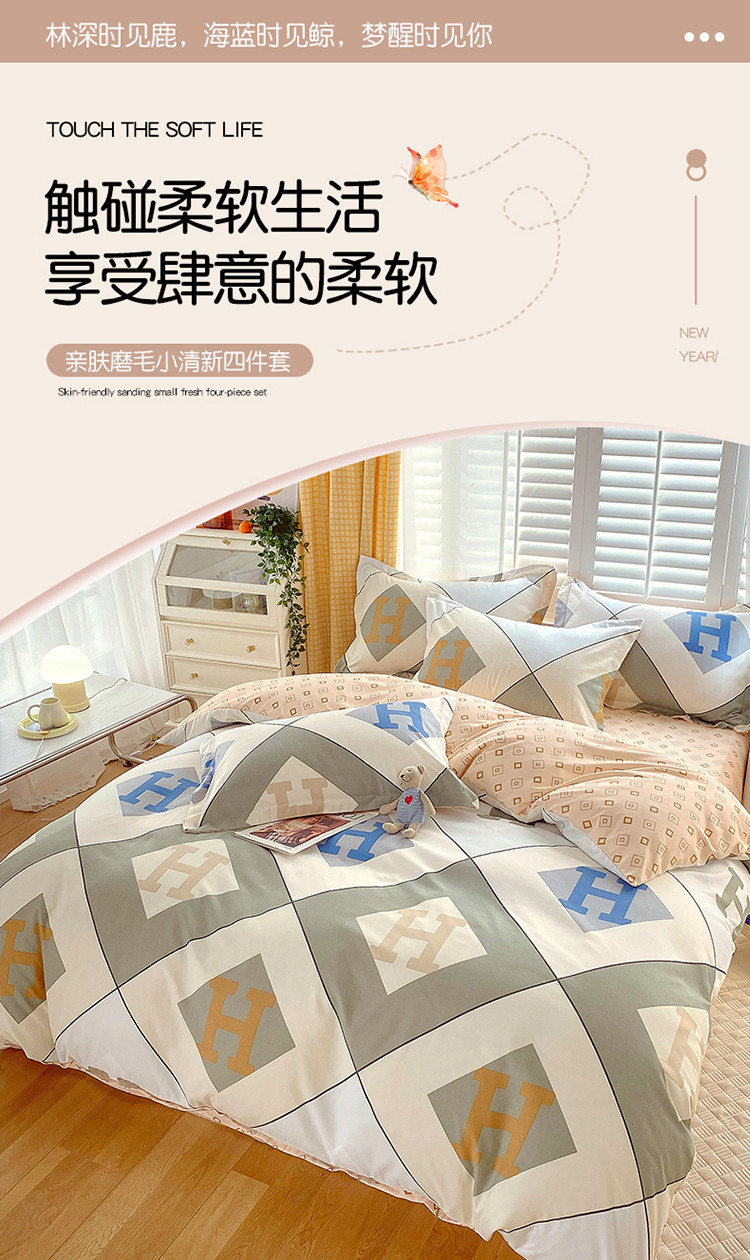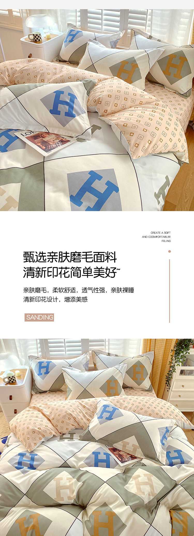 当前位置: 91家纺网 > 商品网购 > 床品套件 > 四件套 > 化纤普通四件套 > 艾橙 秋冬新款140g植物羊绒磨毛四件套系列 弗利加