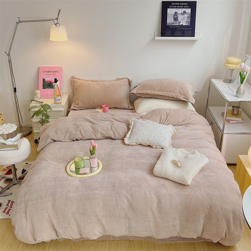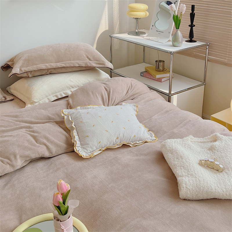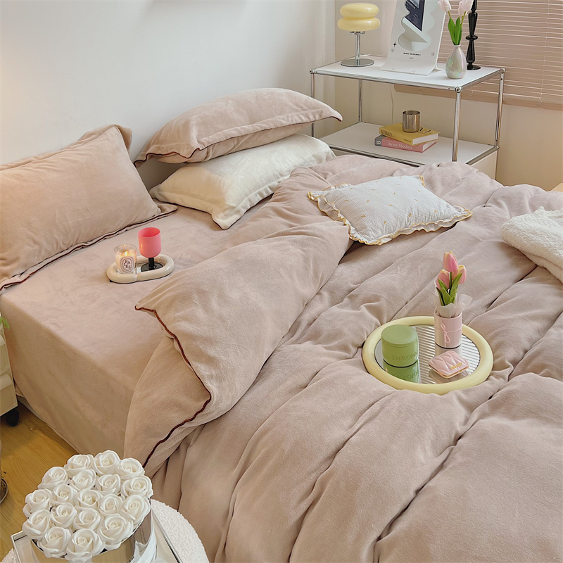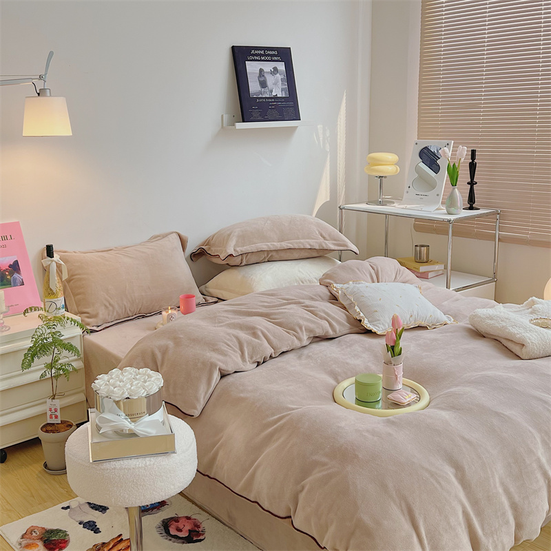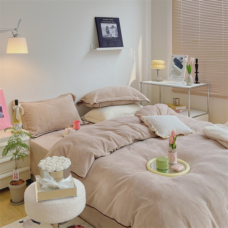 顾里家纺 新款Chic奶油嵌绳撞色牛奶绒四件套-第二组 拿铁咖