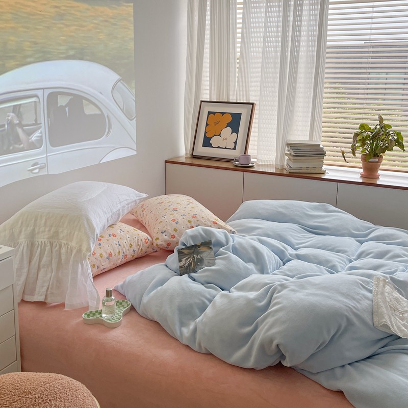 (总)柚子YOUTH 225新款全棉双层纱球球款四件套,薄荷绿条,波点霉霉,波点小丑,蓝心,芊芊结,碎花点点