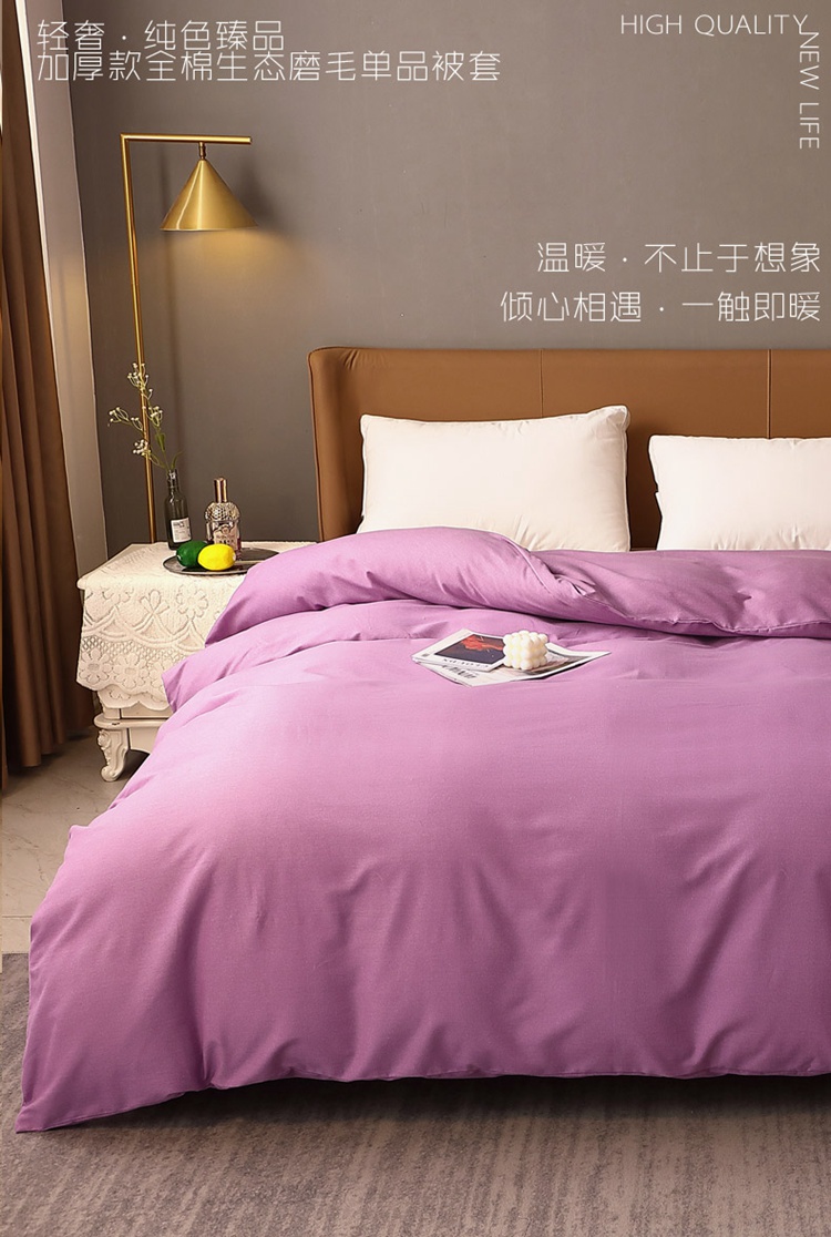 晶缦家纺 2022新款加厚全棉纯色生态磨毛多规格单被套 纯依-魅紫