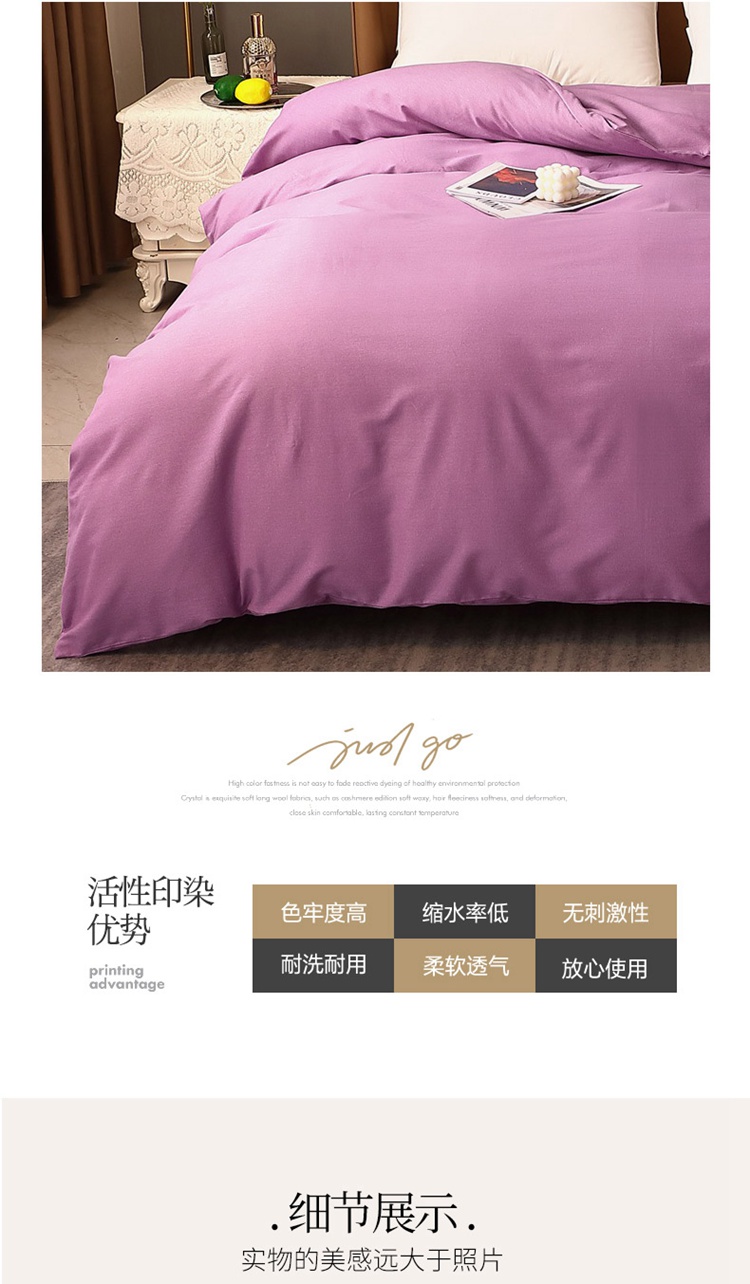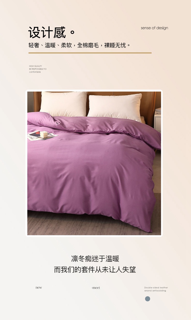 商品名称:晶缦家纺 2022新款加厚全棉纯色生态磨毛多规格单被套 纯依-魅紫