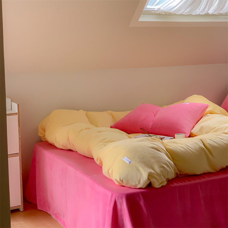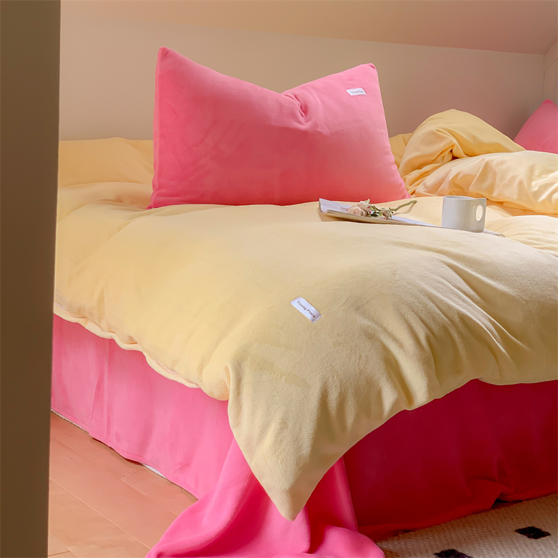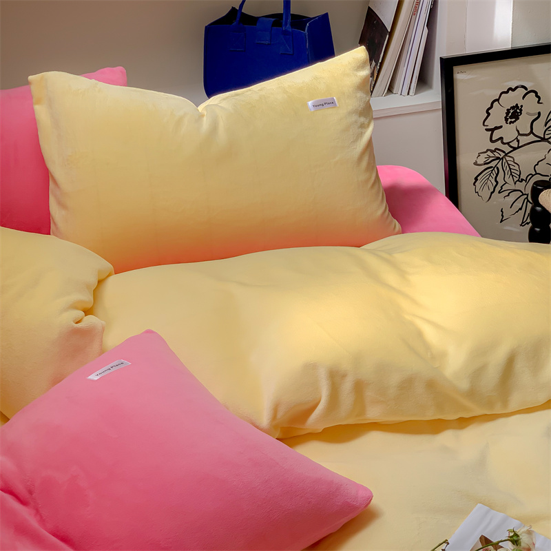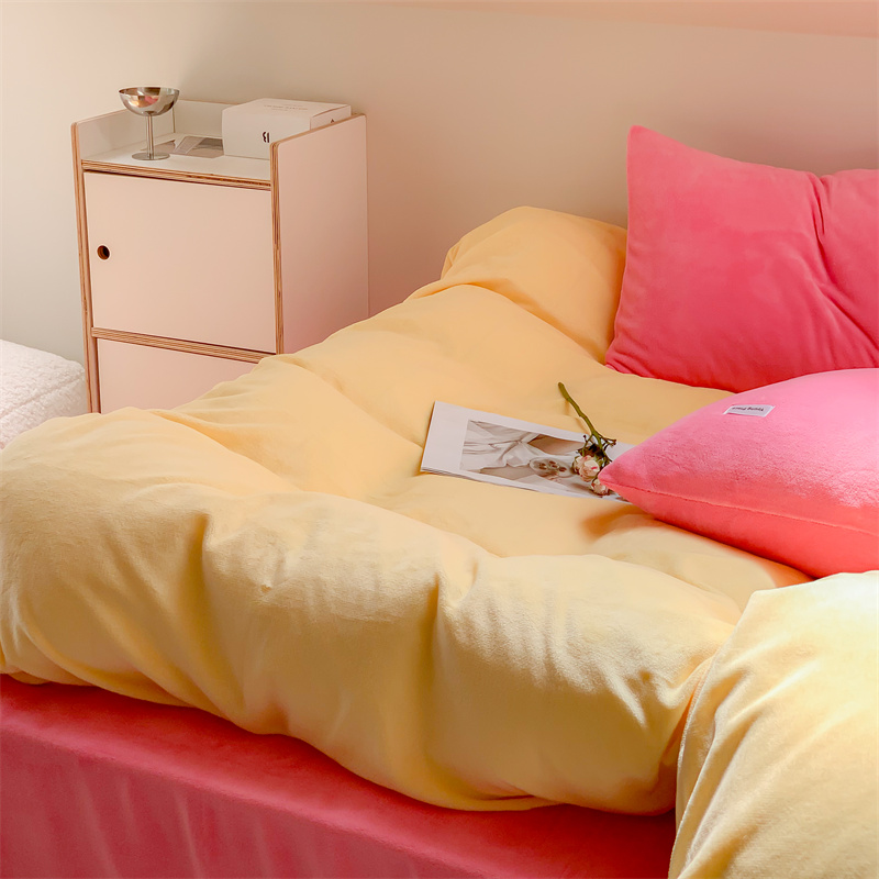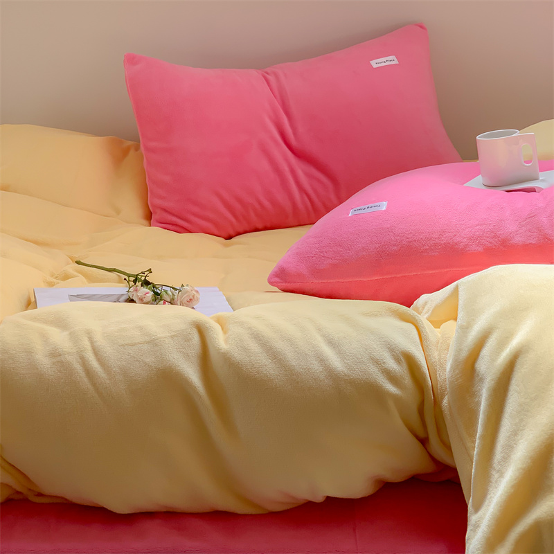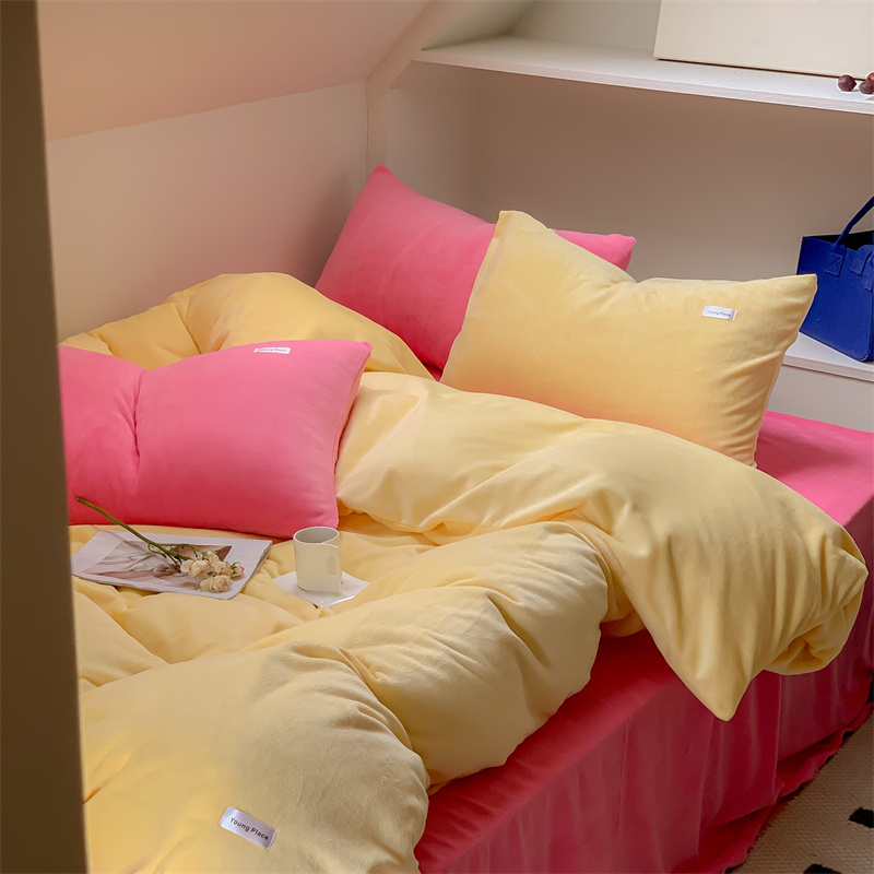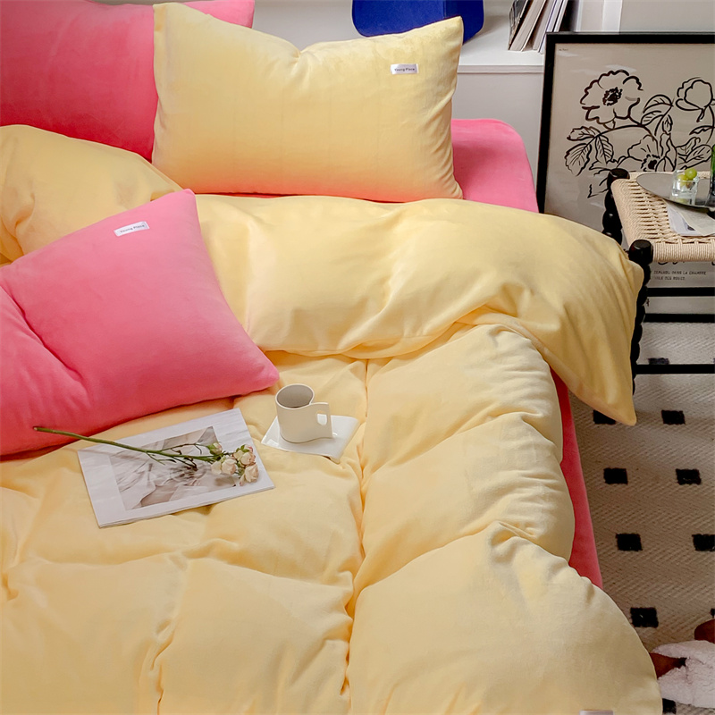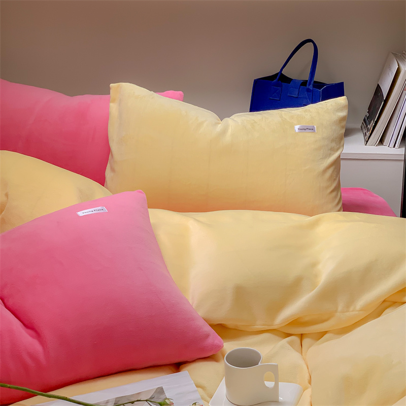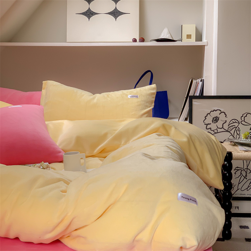 洋铭区2022新款小清新撞色系列绒四件套 黄贝贝