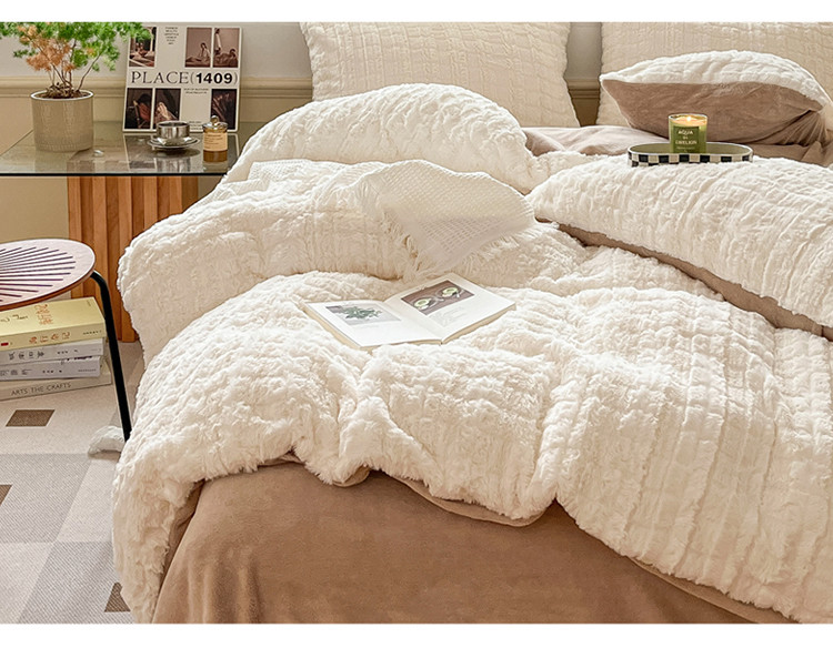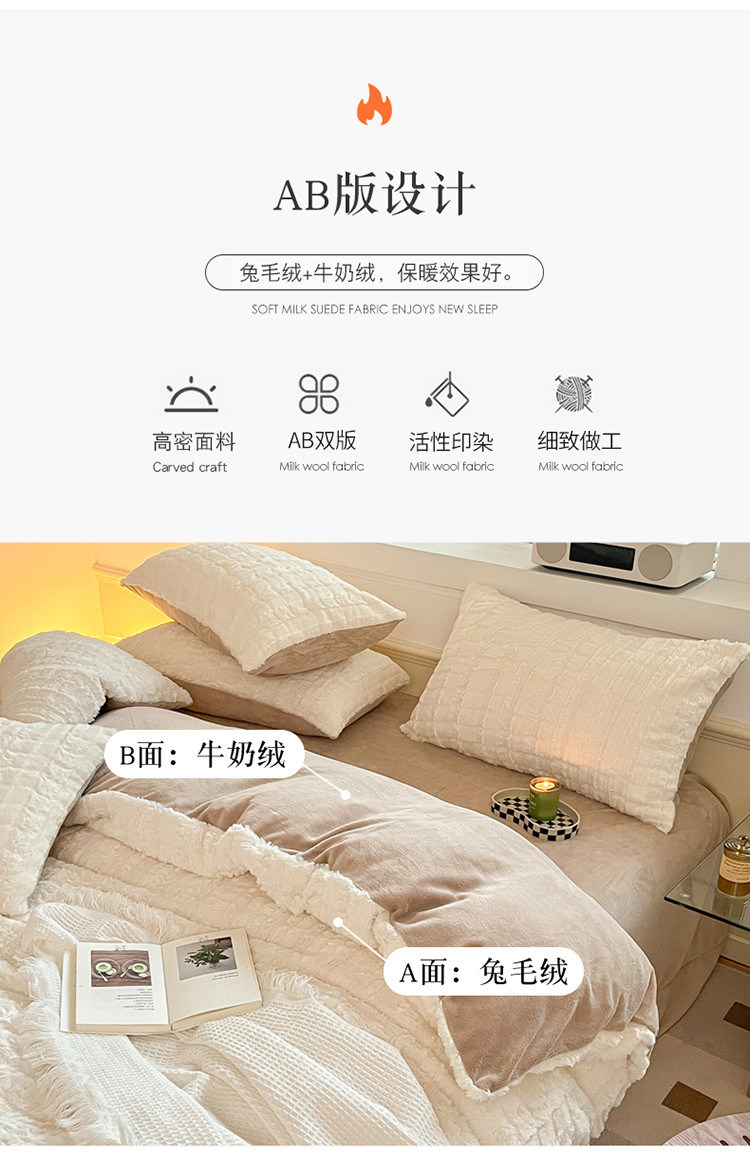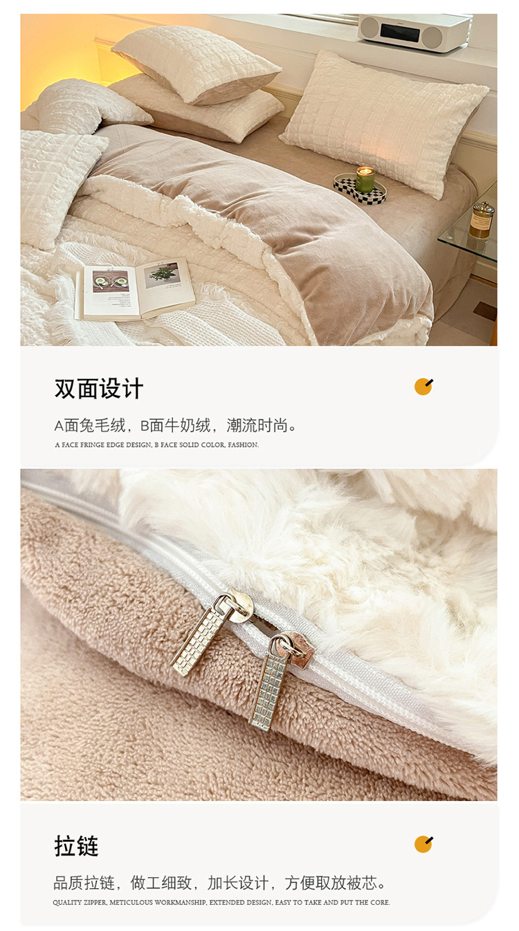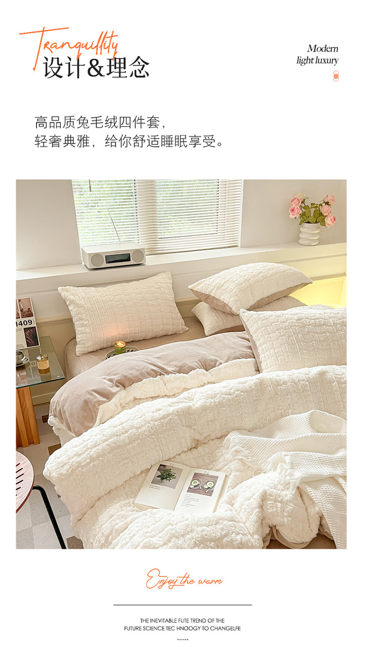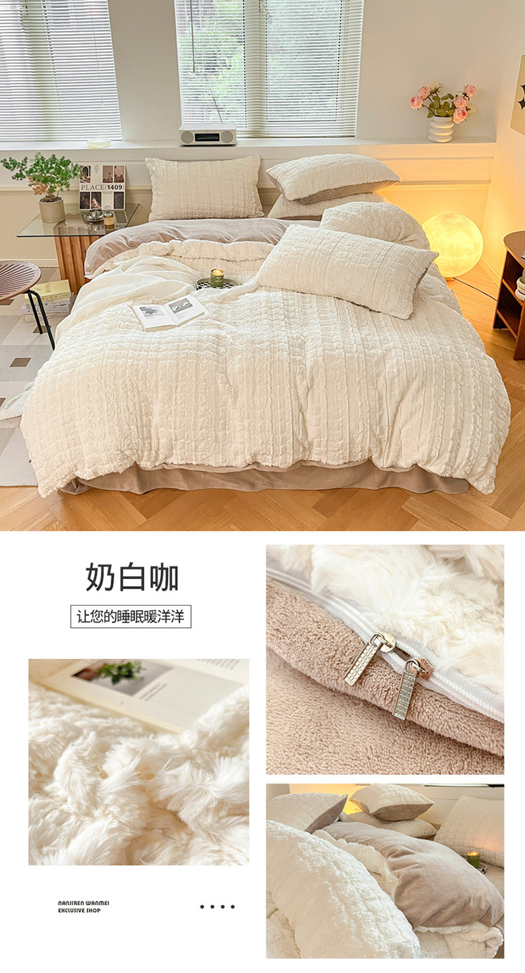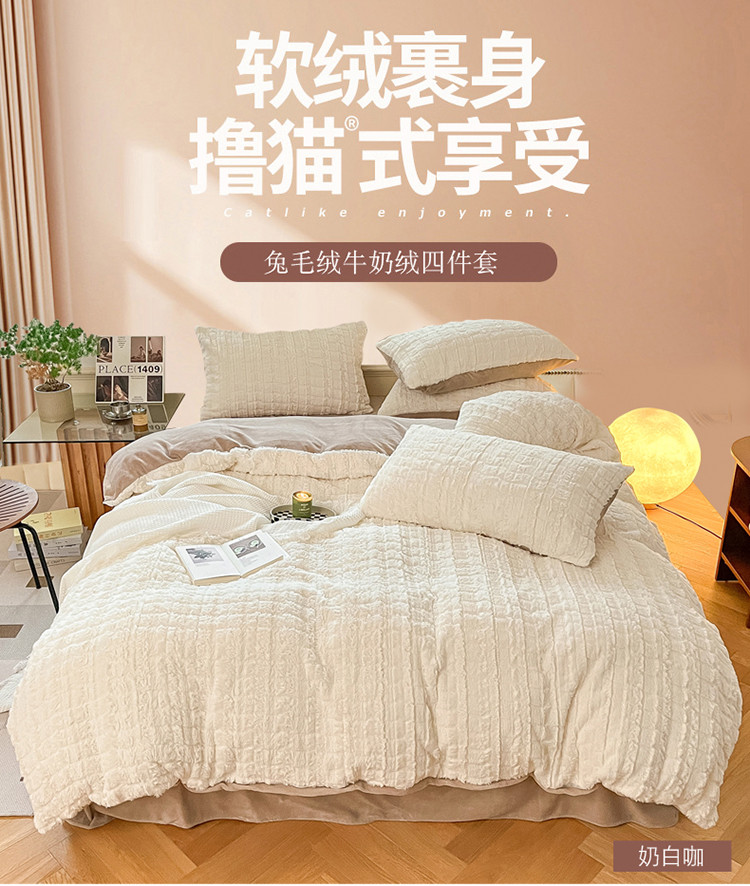 商品名称:金爱家 2023新款全消光牛奶绒獭兔毛绒四件套 兔毛绒-奶白咖