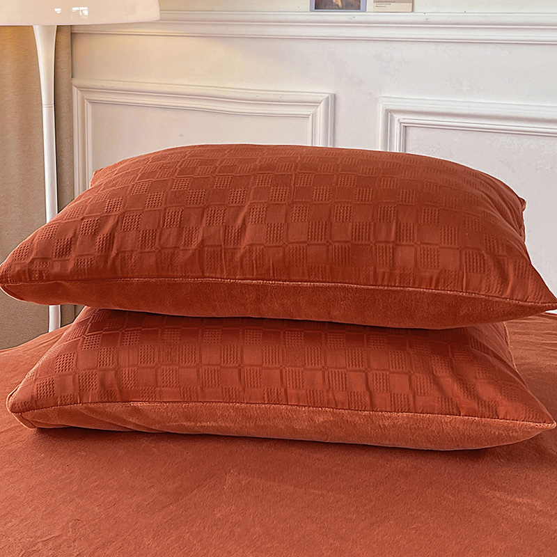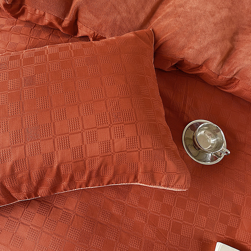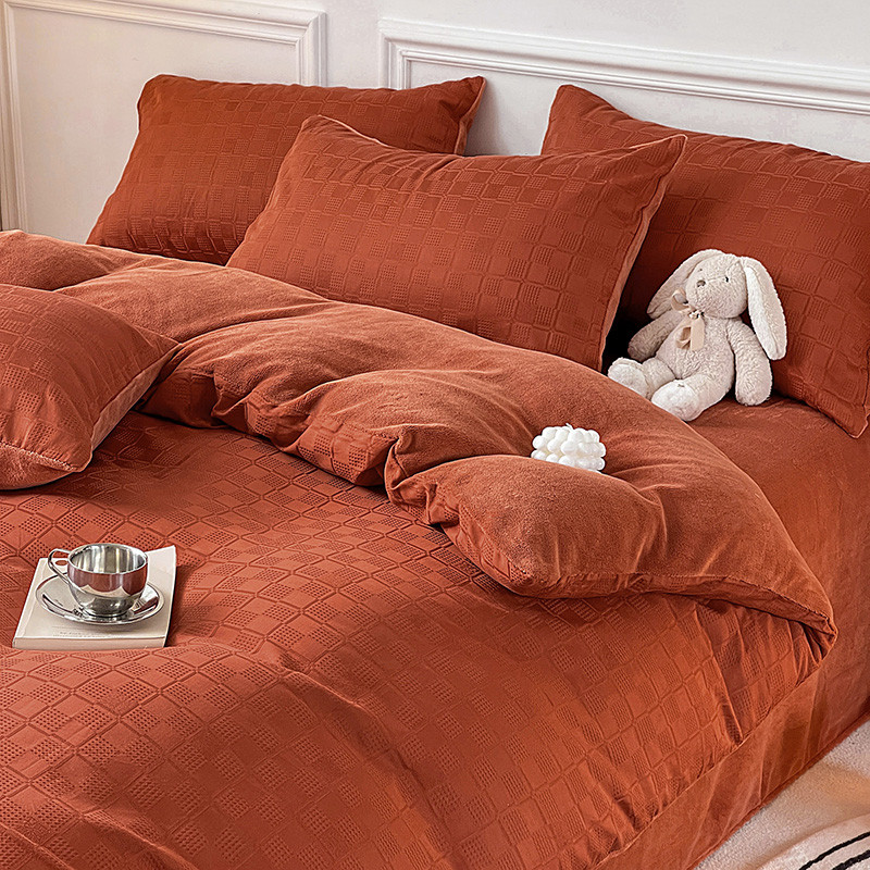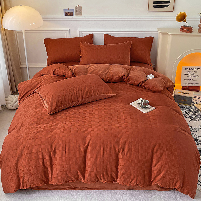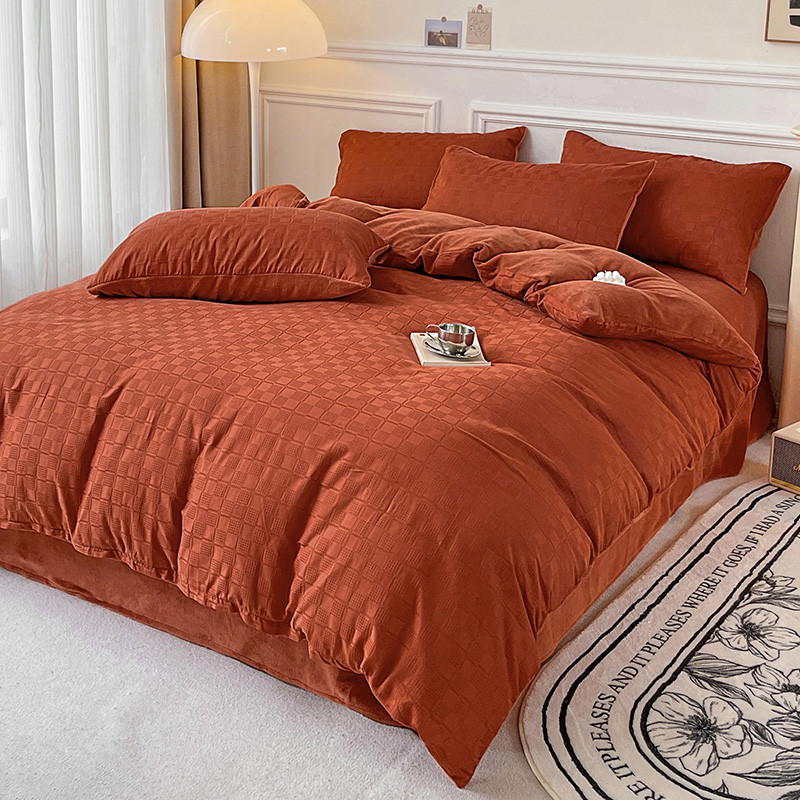 商品名称:金丝鸟 2022全棉华夫格提花加牛奶绒四件套 苏珊格红