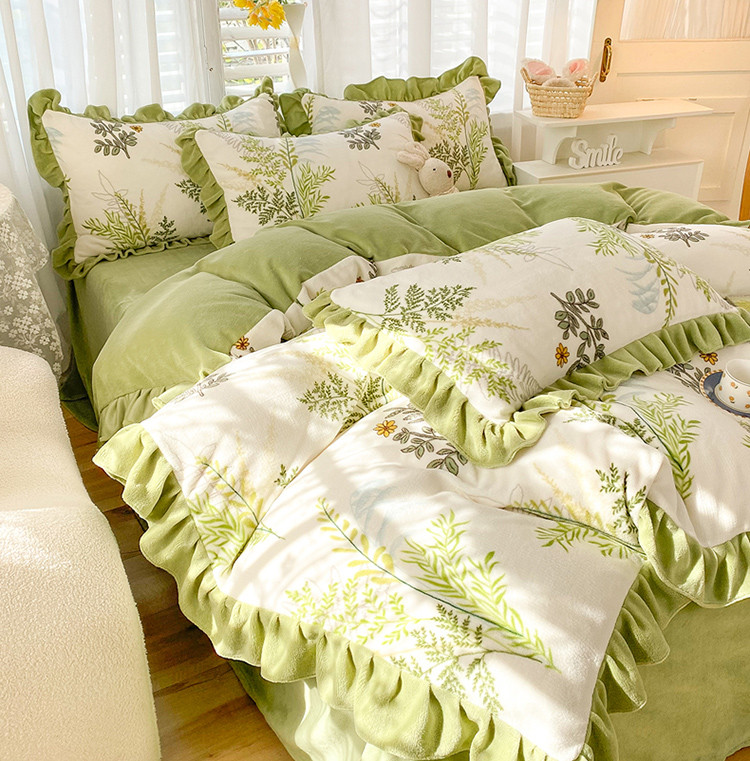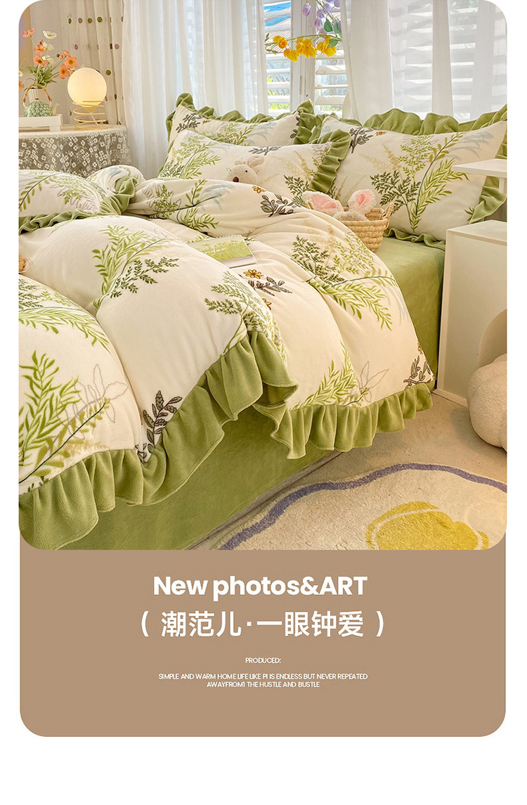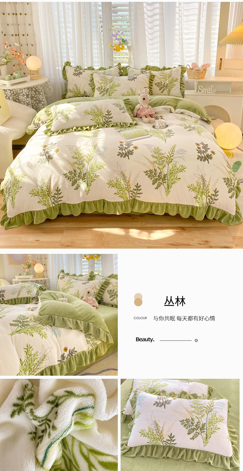 当前位置: 91家纺网 > 商品网购 > 床品套件 > 四件套 > 牛奶绒四件套 > 小主驾到 2023新款高克重韩版牛奶绒花边四件套丛林
