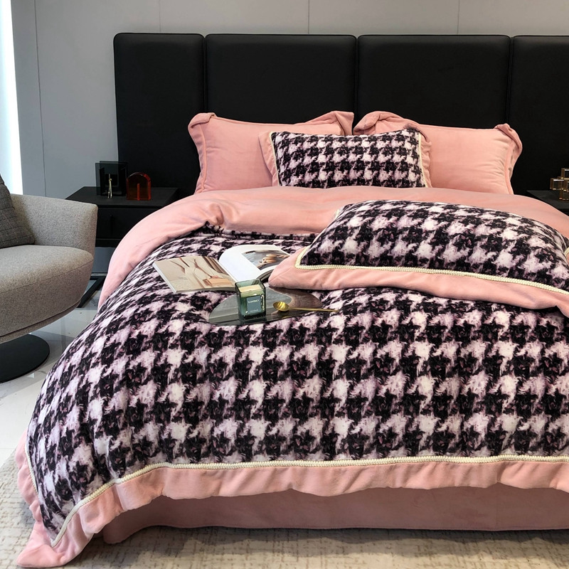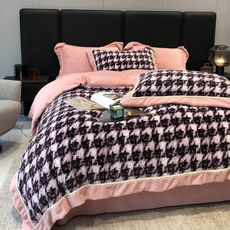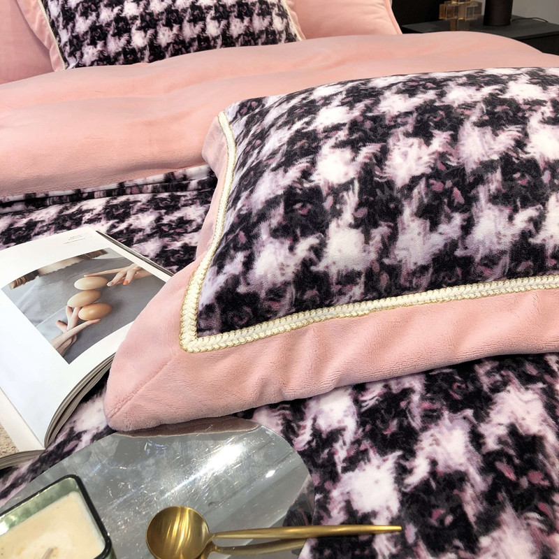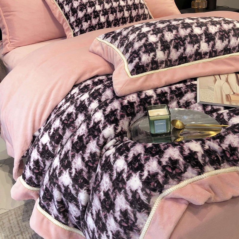 商品名称:太古汇 2022新款牛奶绒印花四件套-托特系列 托特-粉2