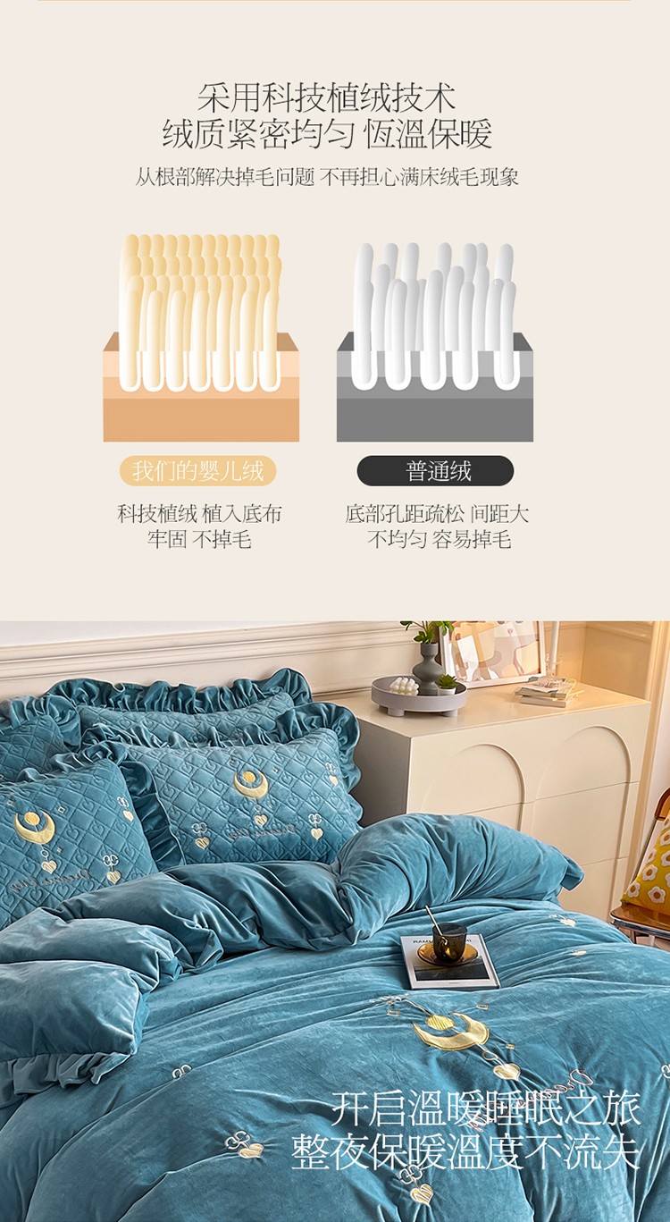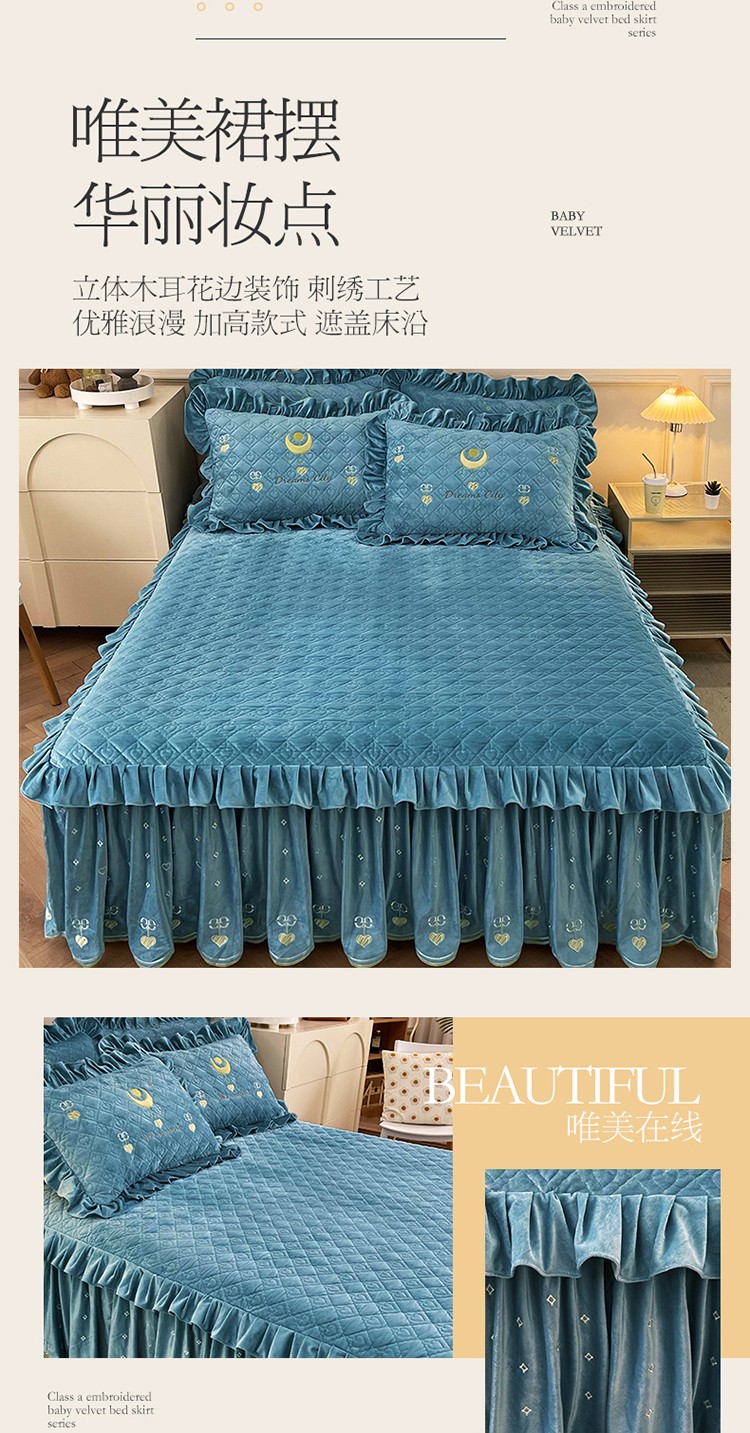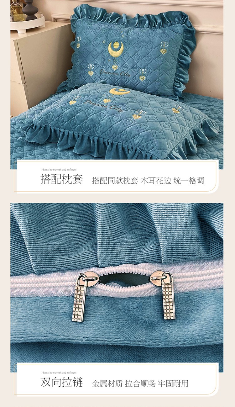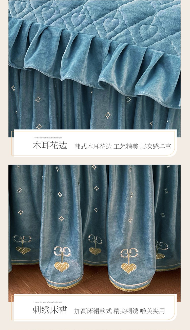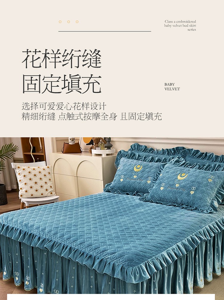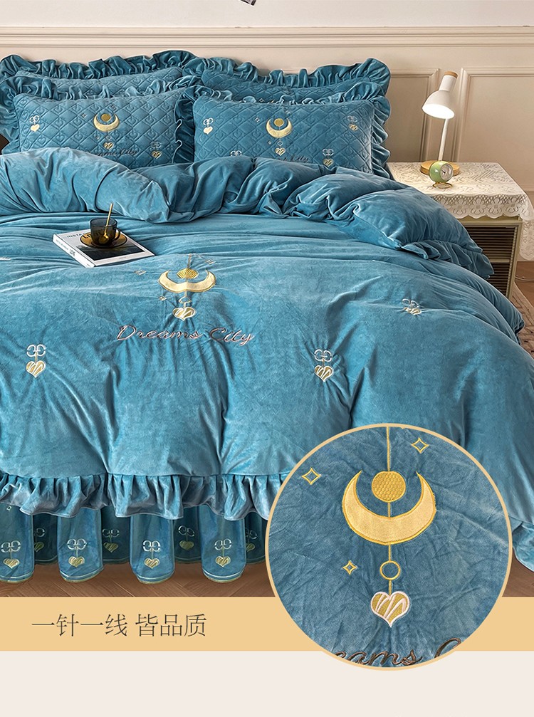 当前位置: 91家纺网 > 商品网购 > 床品套件 > 四件套 > 宝宝绒四件套 > 宜凡家纺 2022新款A类婴儿绒床裙星悦系列四件套 星悦-海盐蓝