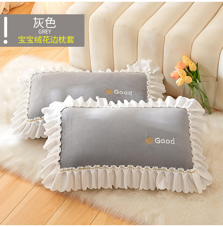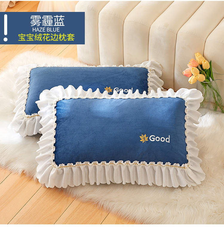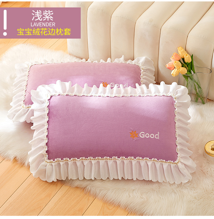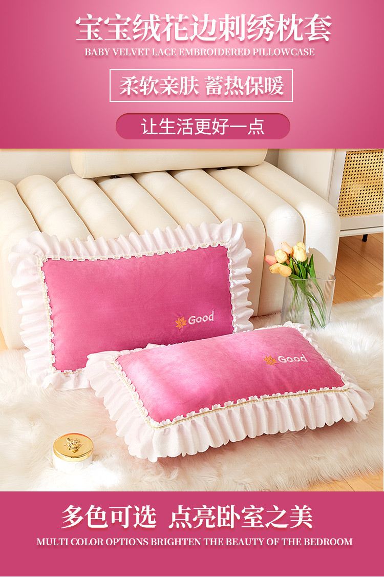 (总)丰淘 2022新款宝宝绒花边刺绣枕套一对装