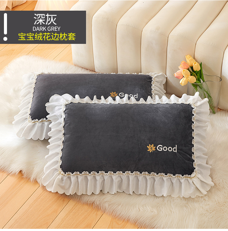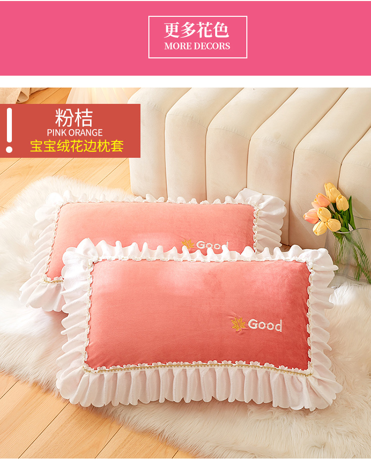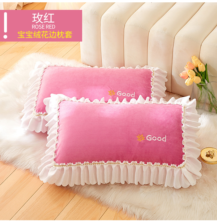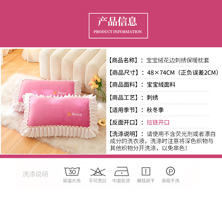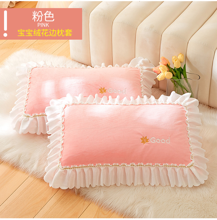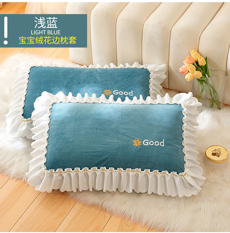 商品名称:(总)丰淘 2022新款宝宝绒花边刺绣枕套一对装