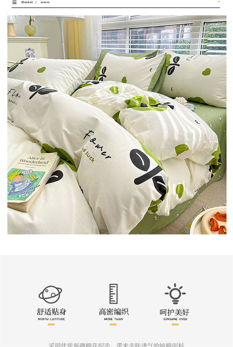当前位置: 91家纺网 > 商品网购 > 床品套件 > 四件套 > 全棉普通四件套 > 麦伦家居 2023新款全棉简约个性北欧系列四件套-第 一组 绿色心情