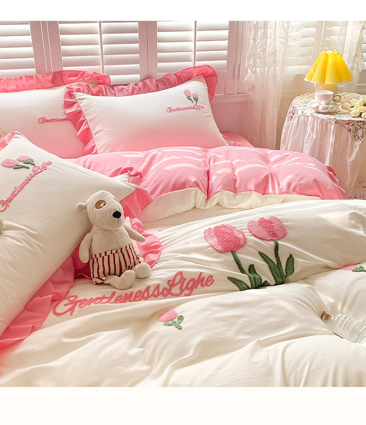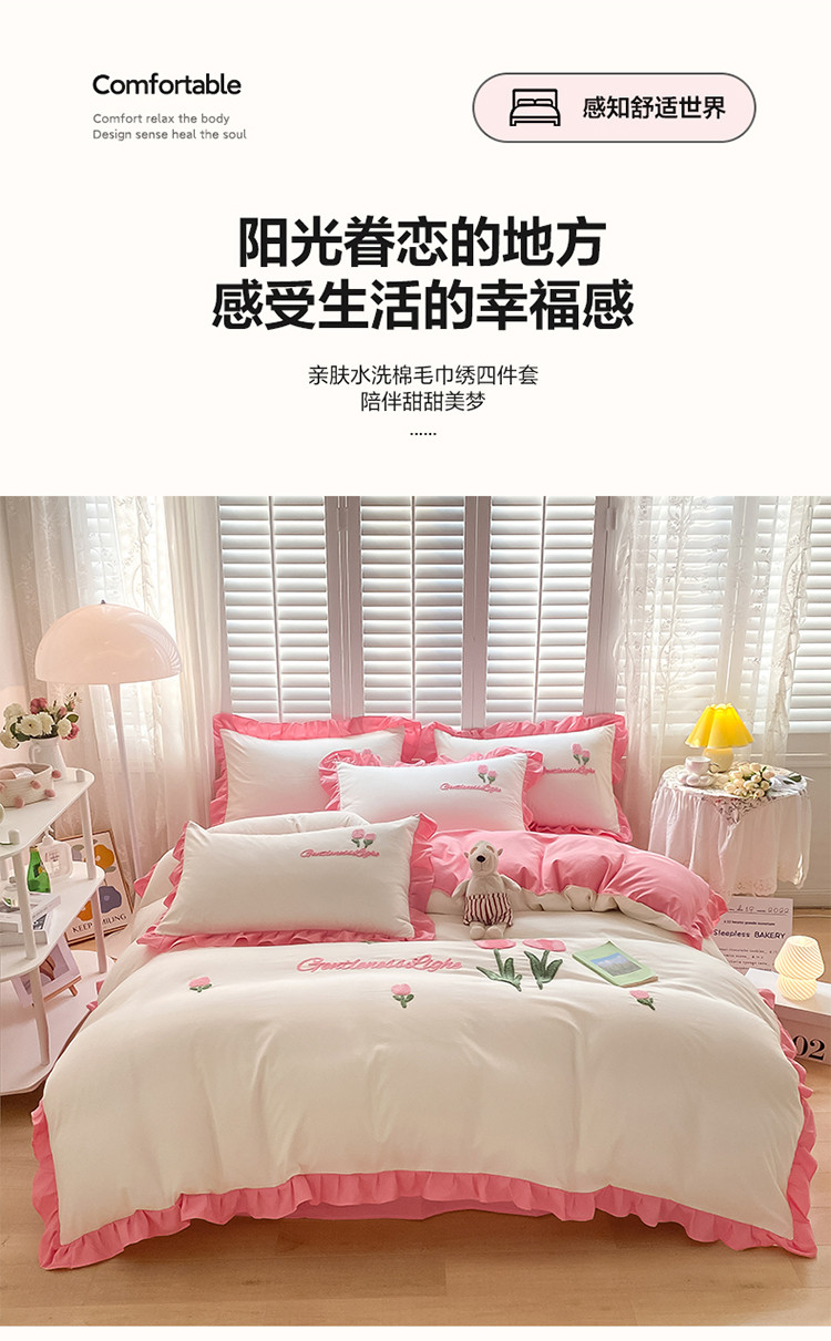 当前位置: 91家纺网 > 商品网购 > 床品套件 > 四件套 > 毛巾绣四件套 > 易禾家纺 2024新款水洗亲肤棉毛巾绣四件套 郁金香-玫粉