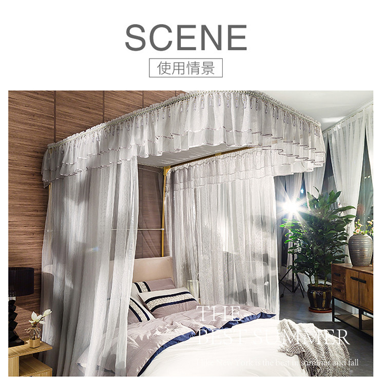 (总)飞轮海蚊帐 2023新款U型三开门遮光坐床蚊帐-Z-75,黛蓝,奶油黄,香槟