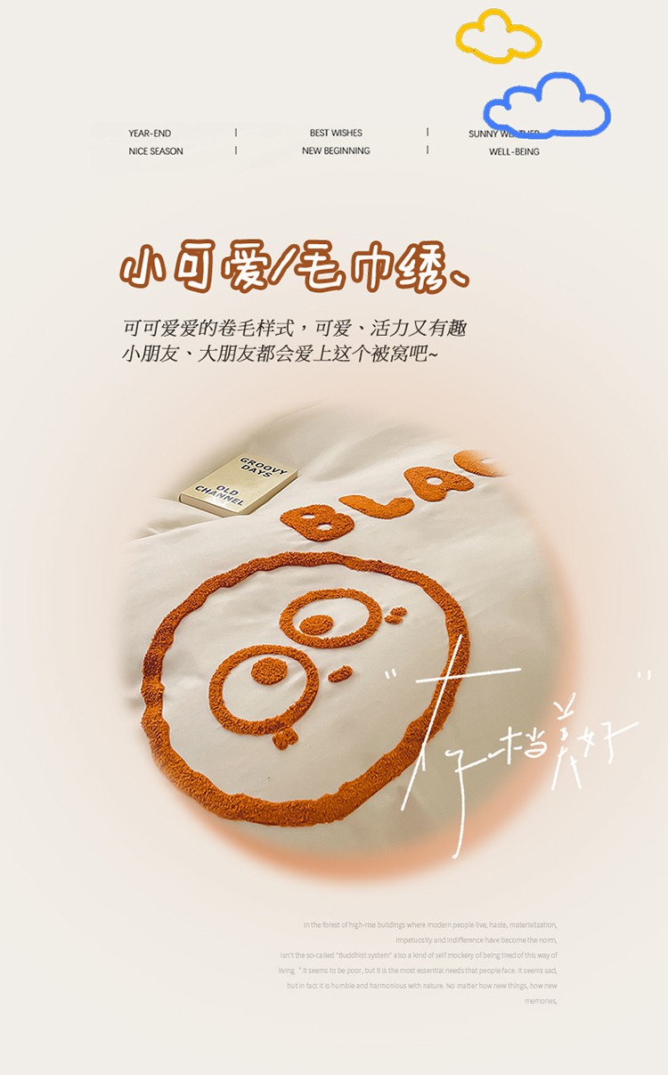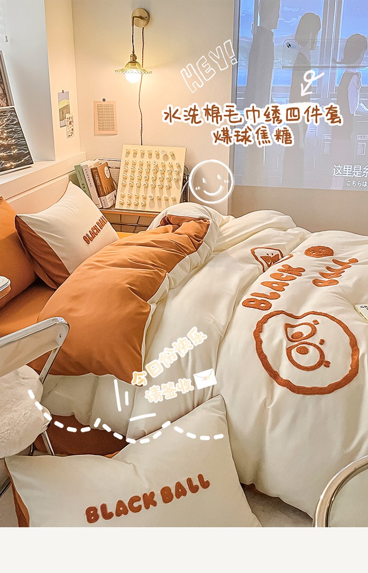 当前位置: 91家纺网 > 商品网购 > 床品套件 > 四件套 > 水洗棉四件套 > 眠帛家纺 2023新款水洗棉毛巾绣四件套煤球系列 煤球焦糖
