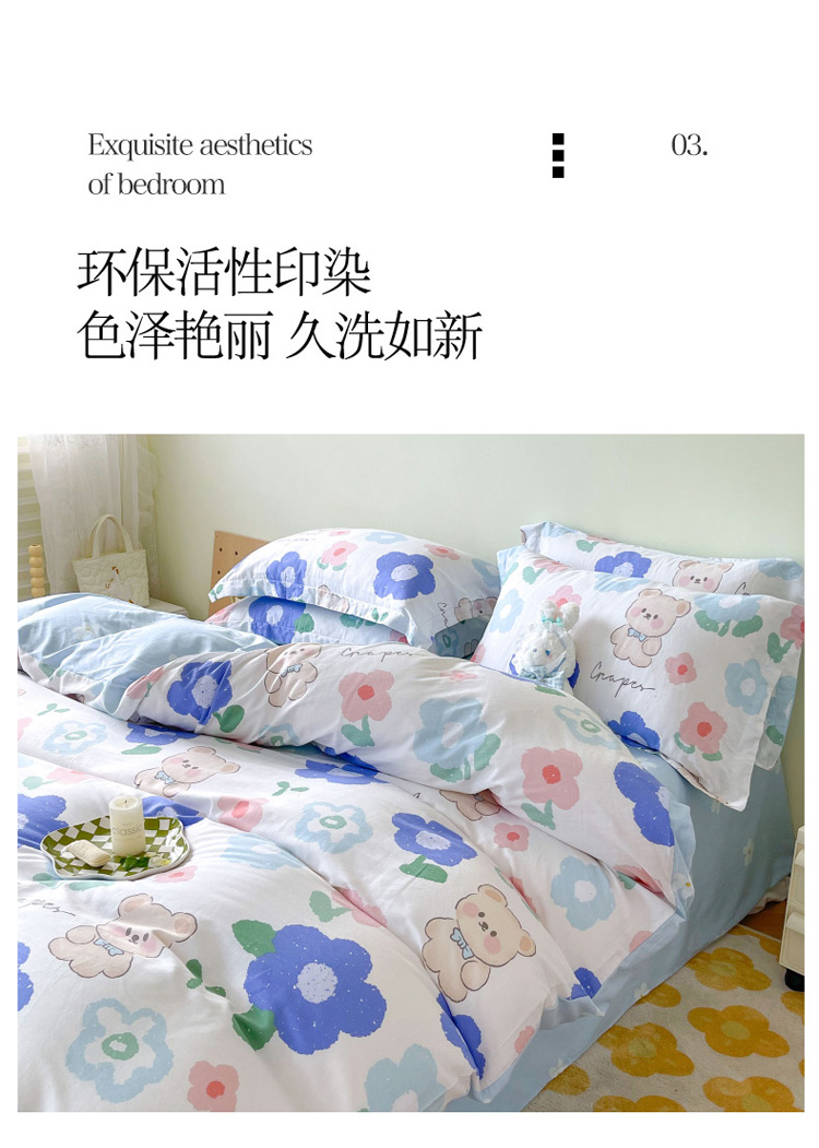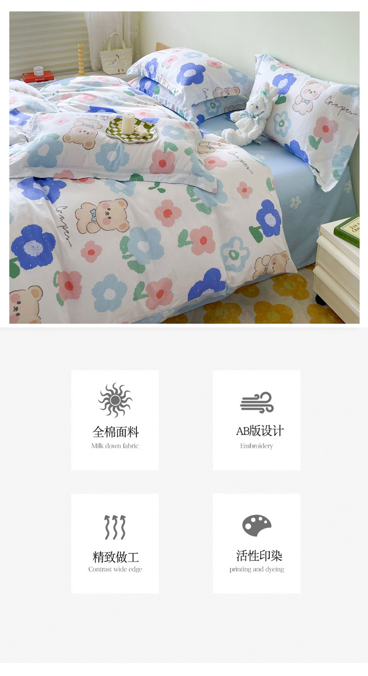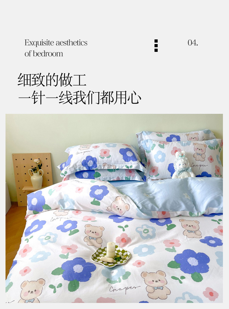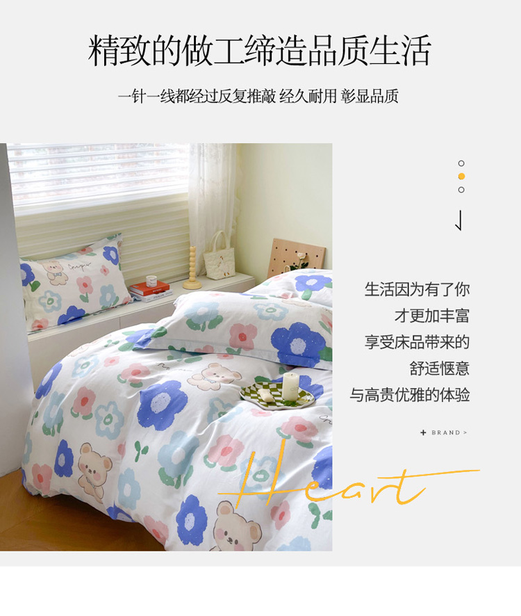 商品名称:盛馨家纺 全棉ins北欧风高支高密全棉喷气小清新纯棉四件套 花花小熊