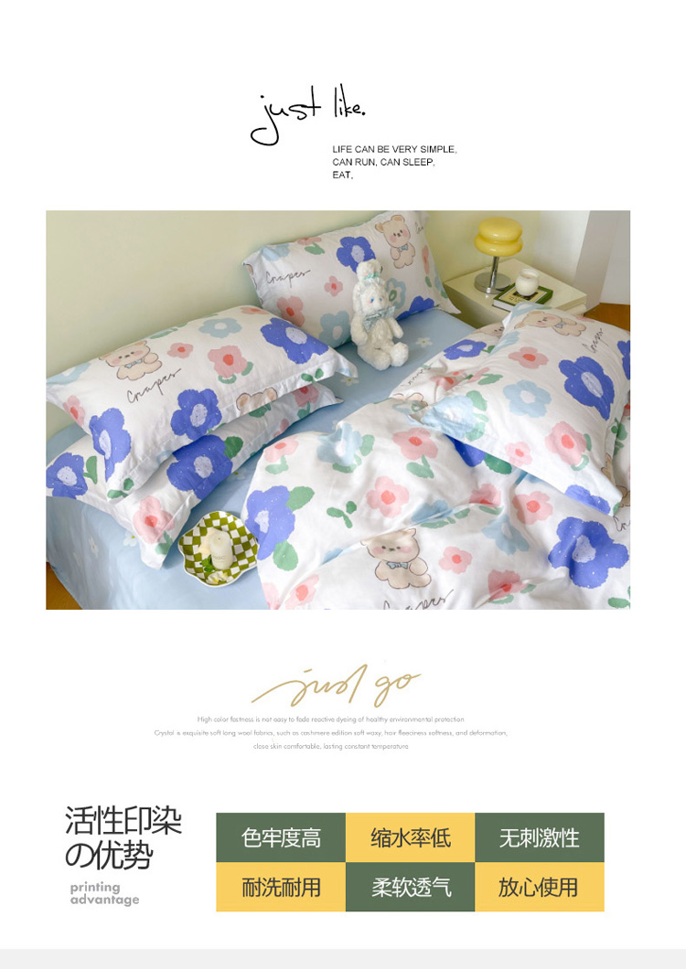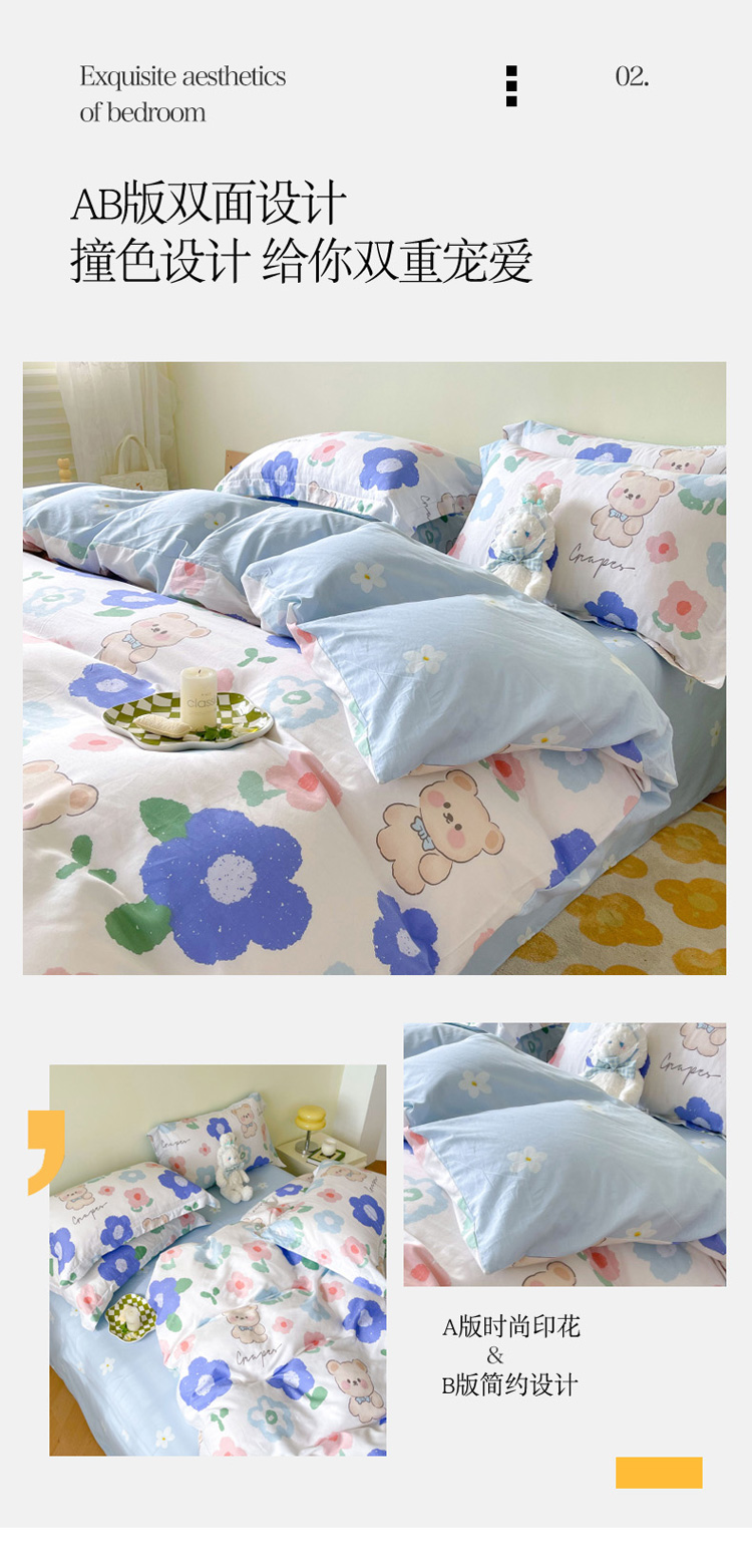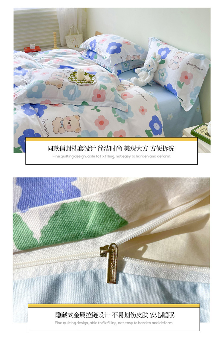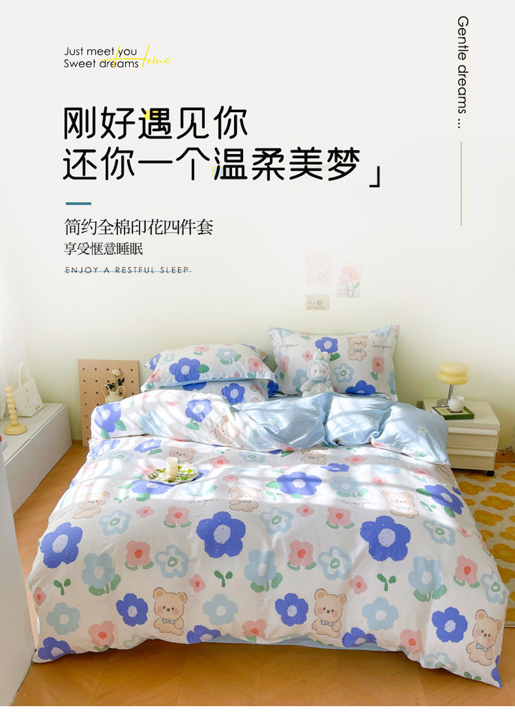商品名称:盛馨家纺 全棉ins北欧风高支高密全棉喷气小清新纯棉四件套 花花小熊