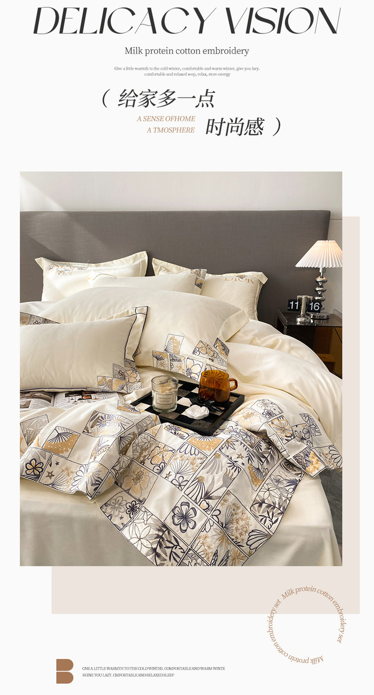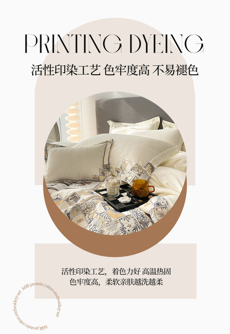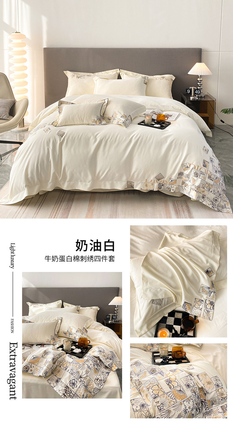 棉生活家纺 2023新款水洗牛奶蛋白棉四件套 奶油白