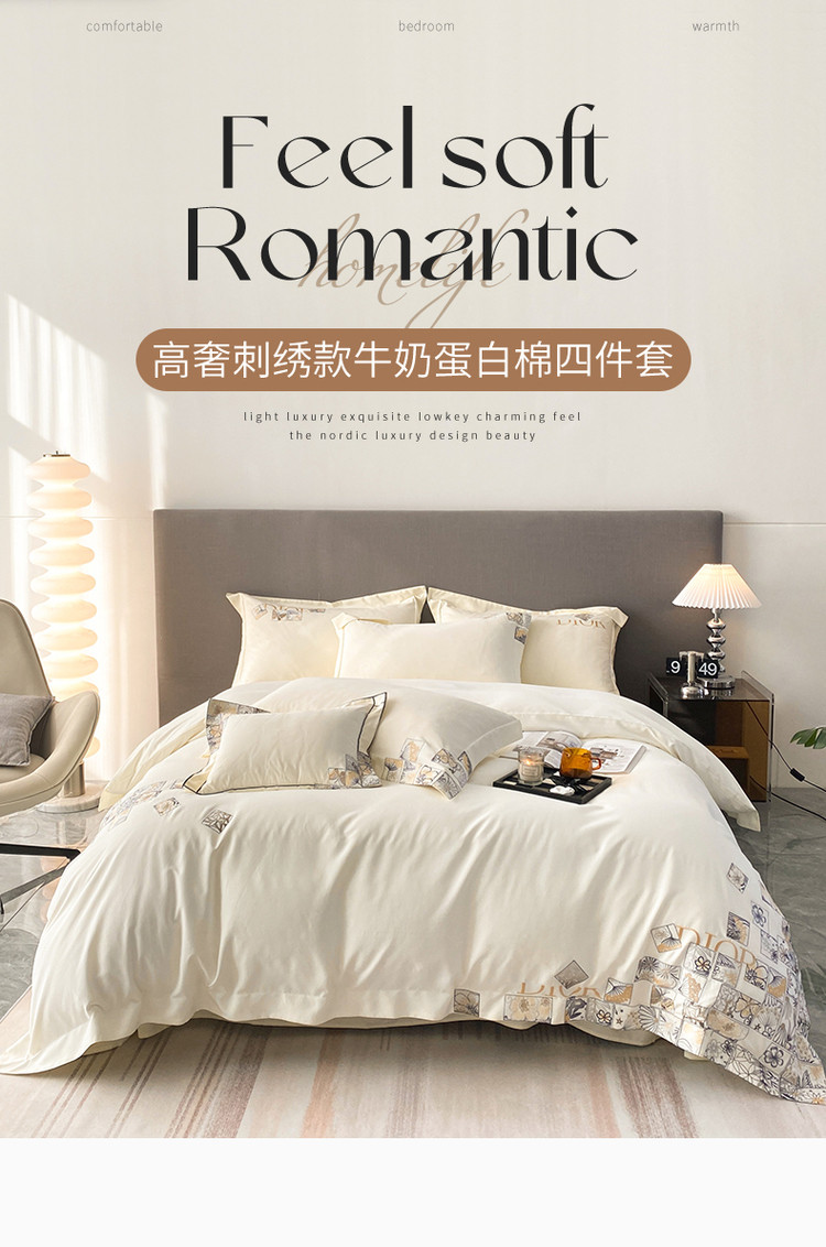 商品名称:棉生活家纺 2023新款水洗牛奶蛋白棉四件套 奶油白