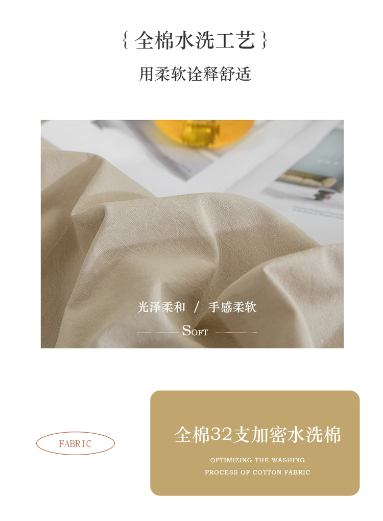 商品名称:柠萌家居 2023新款全棉双拼水洗棉单品单被套 双拼-卡其浅灰