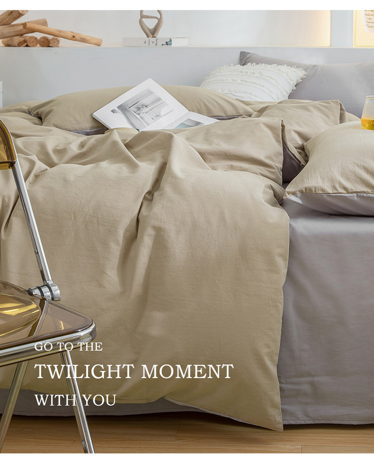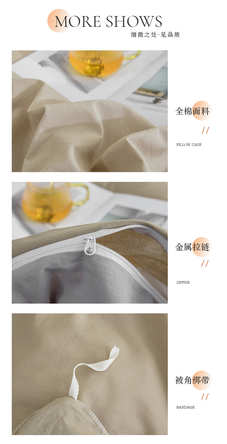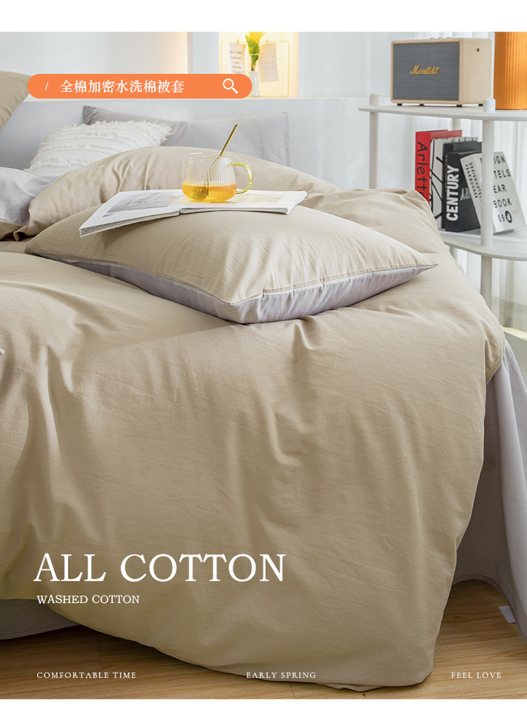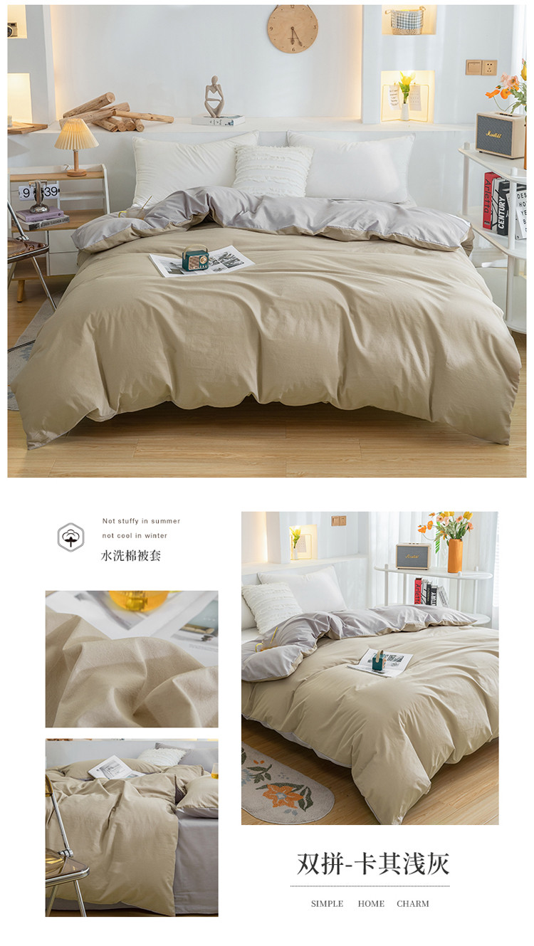 柠萌家居 2023新款全棉双拼水洗棉单品单被套 双拼-卡其浅灰