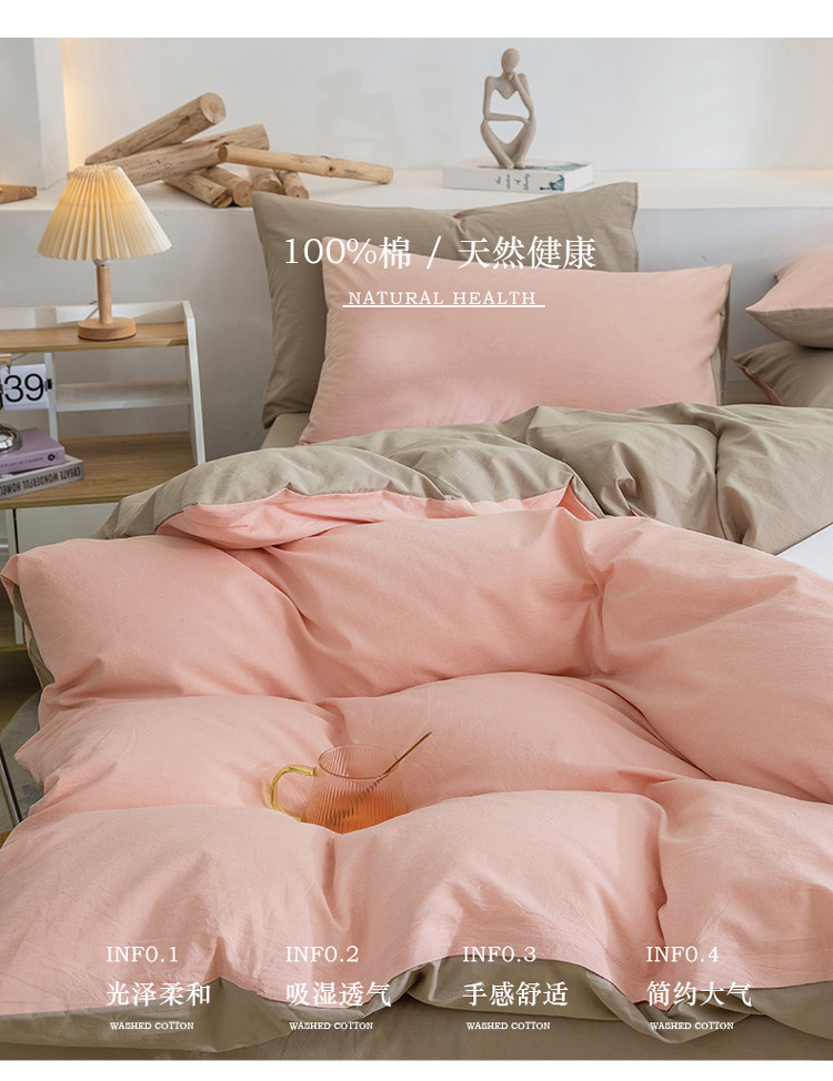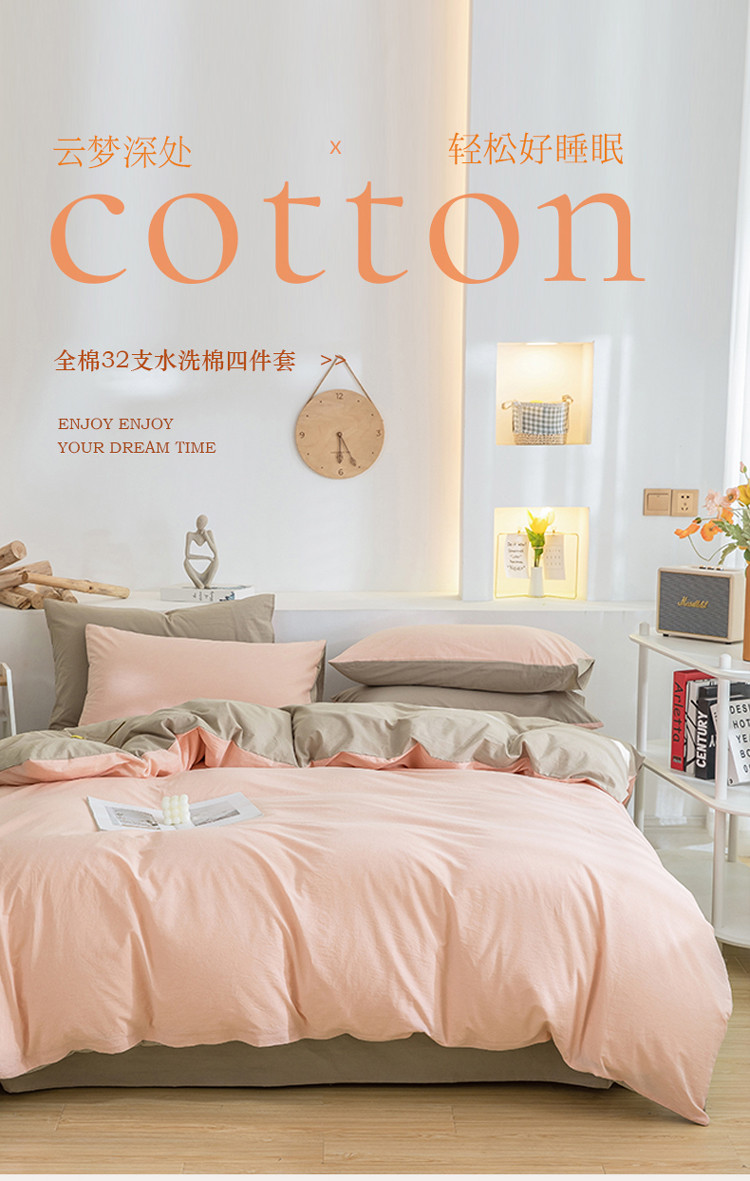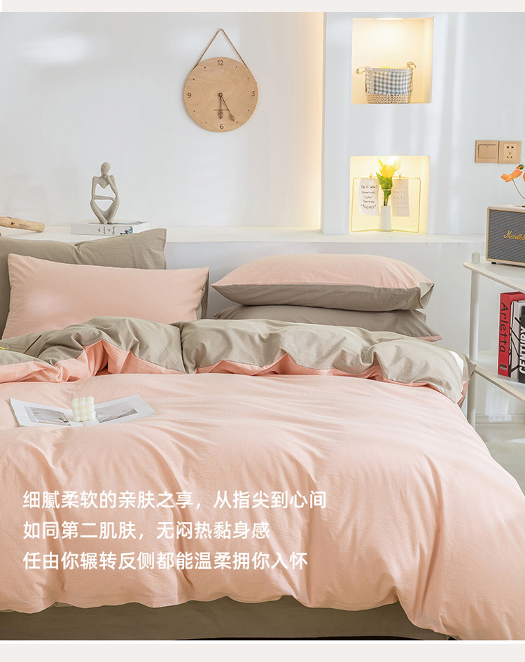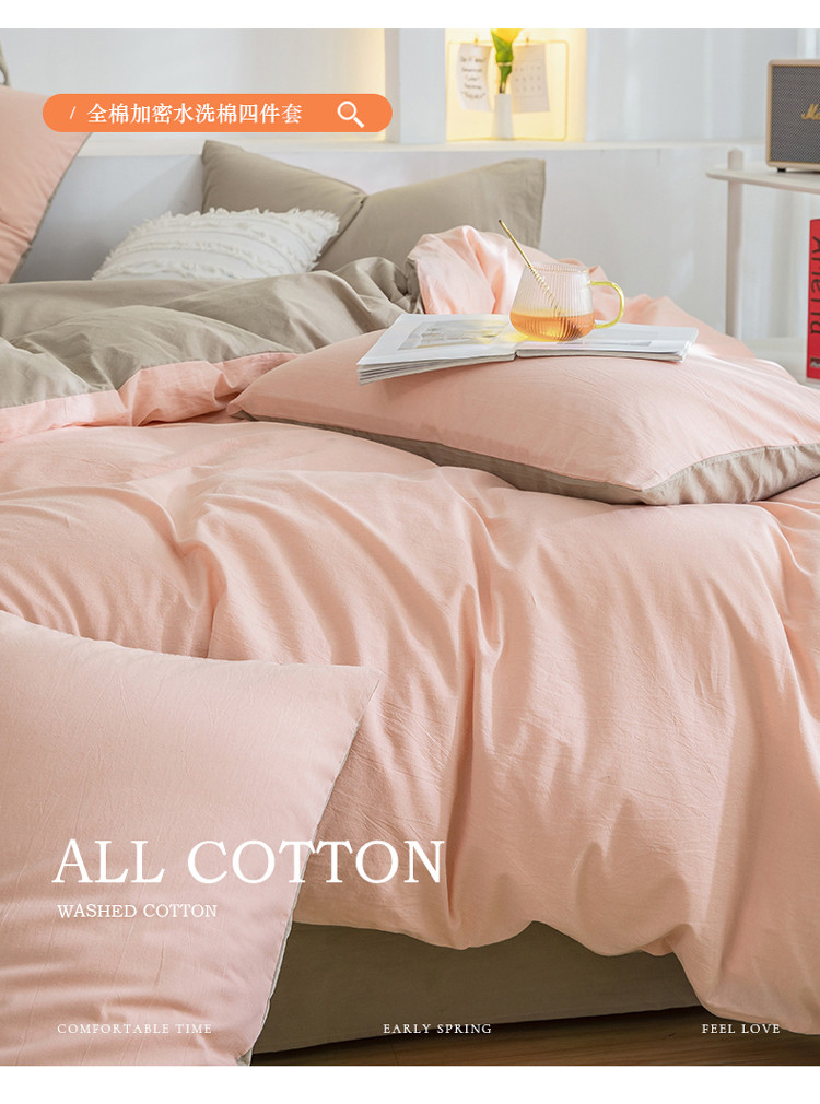 当前位置: 91家纺网 > 商品网购 > 床品套件 > 四件套 > 水洗棉四件套 > 柠萌家居 2024新款全棉双拼水洗棉四件套 双拼-粉卡其