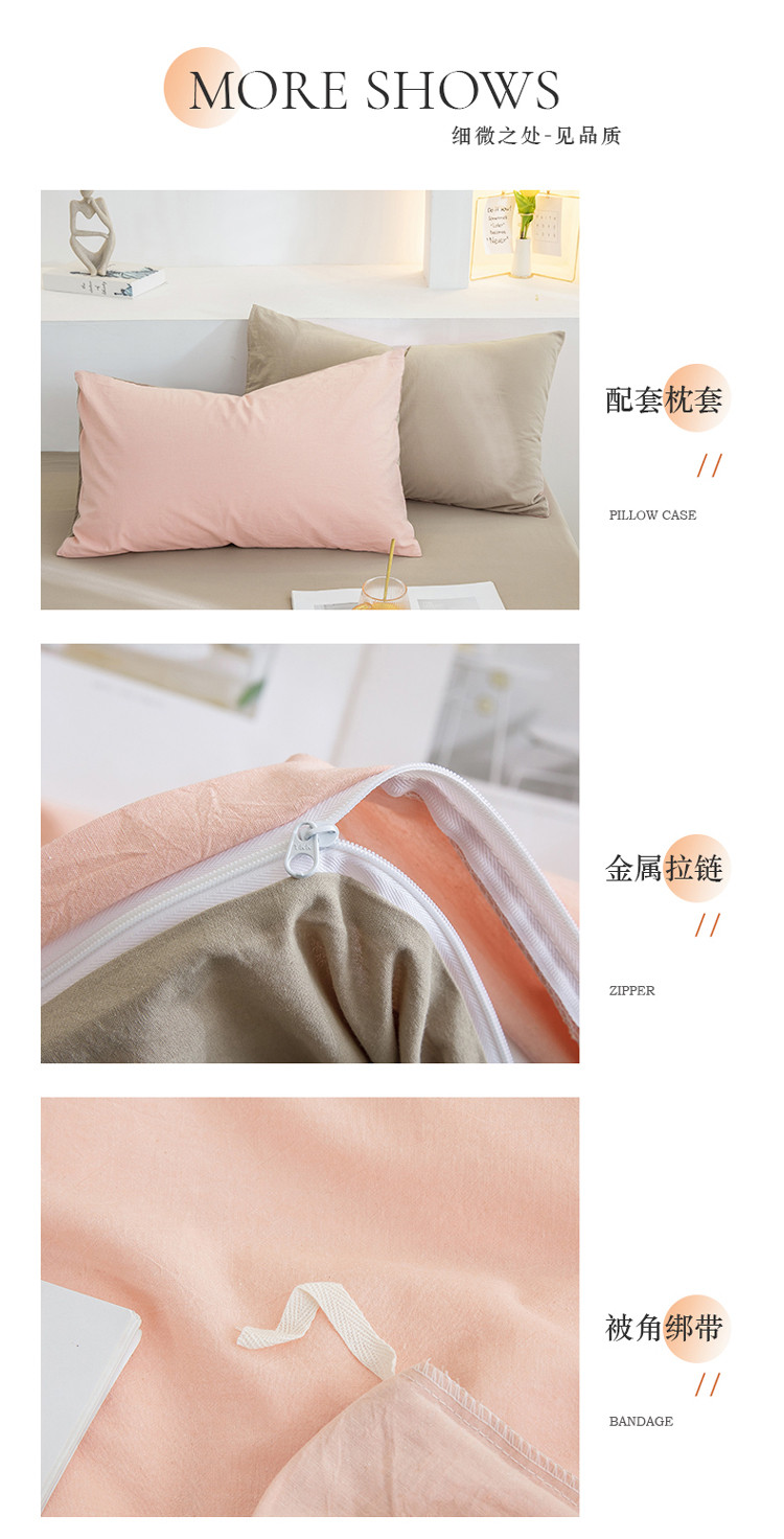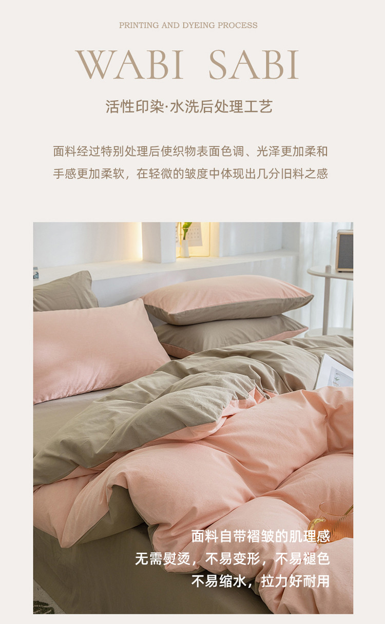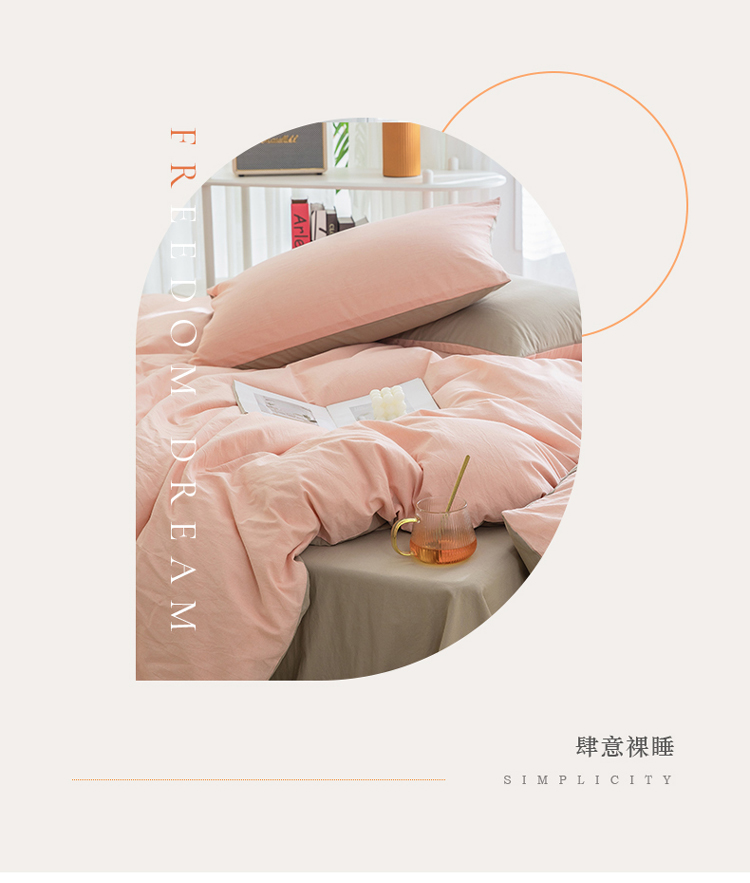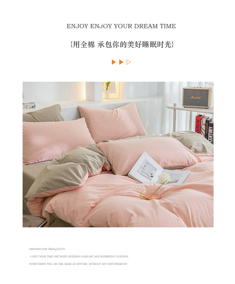 当前位置: 91家纺网 > 商品网购 > 床品套件 > 四件套 > 水洗棉四件套 > 柠萌家居 2024新款全棉双拼水洗棉四件套 双拼-粉卡其